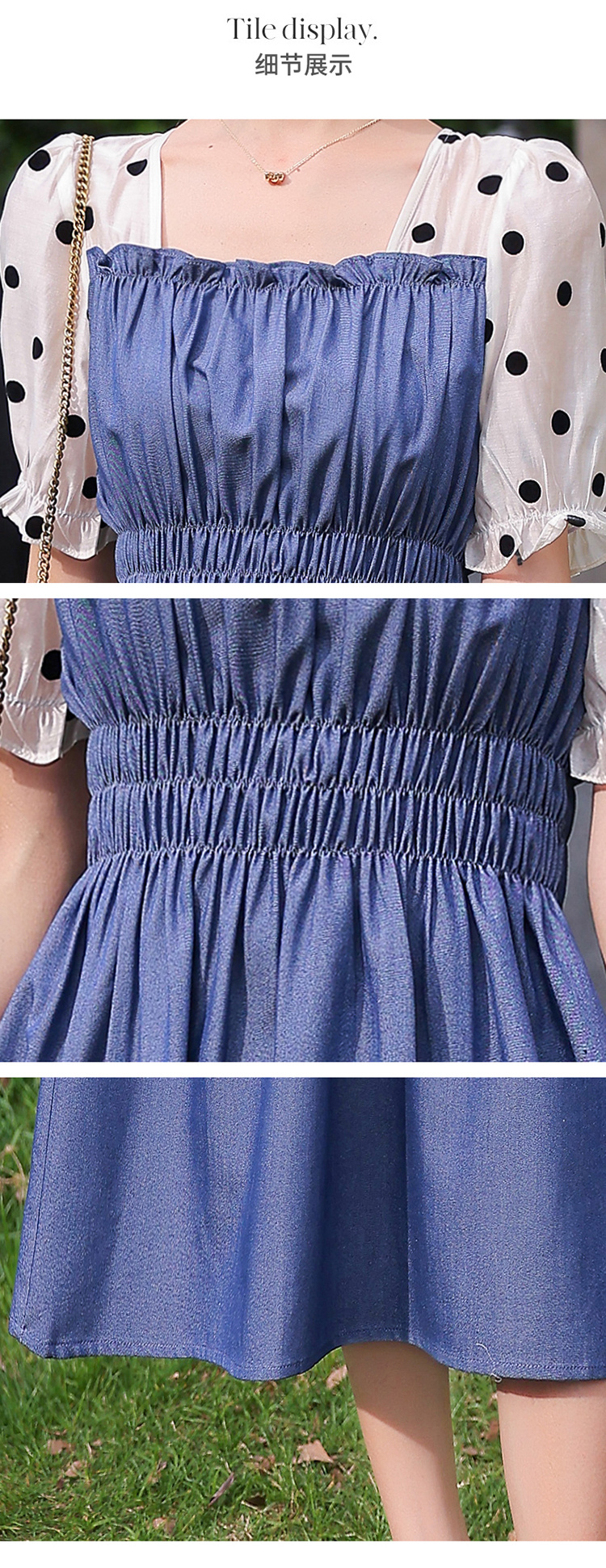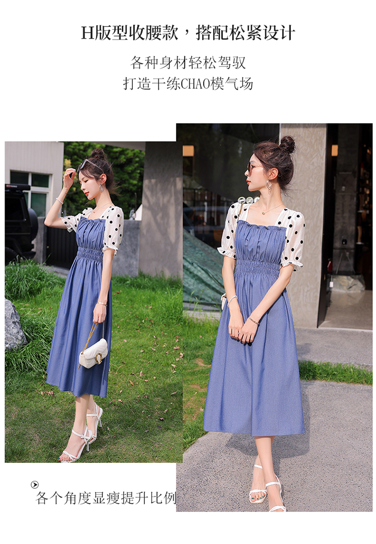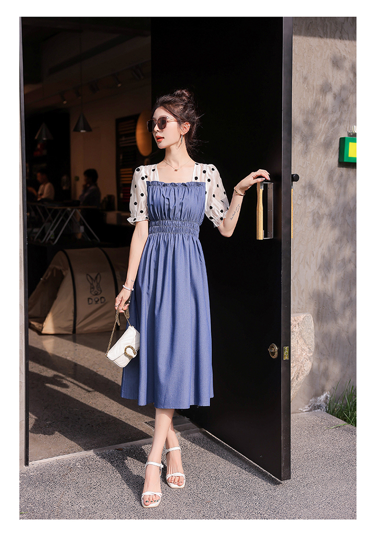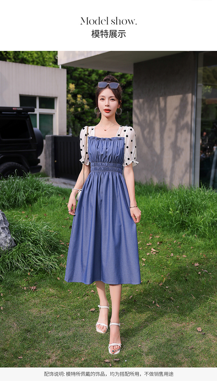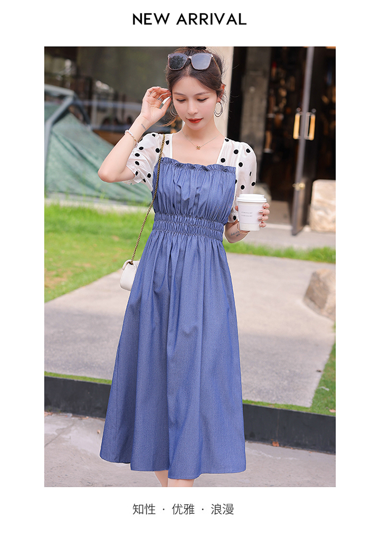 夏季新款,法式波点拼接牛仔连衣裙HR-XMYR2333-1