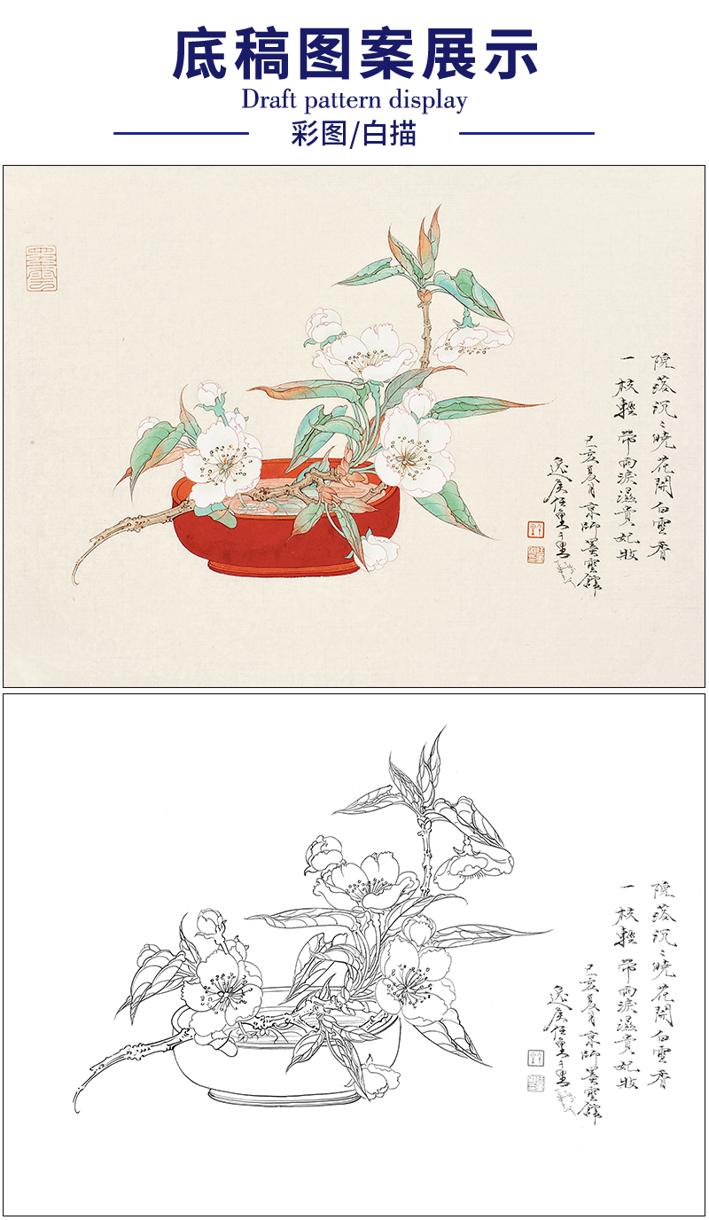 任重花鸟工笔画白描底稿《白云香一枝》临摹勾线高清打印稿RD40