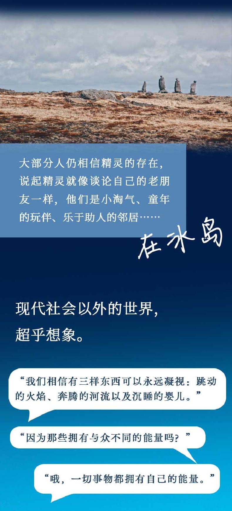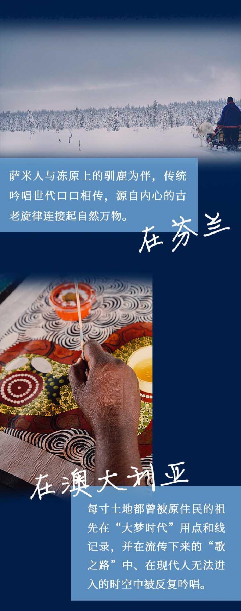 在芬兰,萨米人与冻原上的驯鹿为伴,传统吟唱世代口口相传,源自内心的古老旋律连接起自然万物;在澳大利亚,每寸土地都曾被原住民的祖先在“大梦时代”用点和线记录,并在流传下来的“歌之路”中、在现代人无法进入的时空中被反复吟唱;在冰岛,大部分人仍相信精灵的存在,说起精灵就像谈论自己的老朋友一样,他们是小淘气、童年的玩伴、乐于助人的邻居……现代社会以外的世界,超乎想象。
