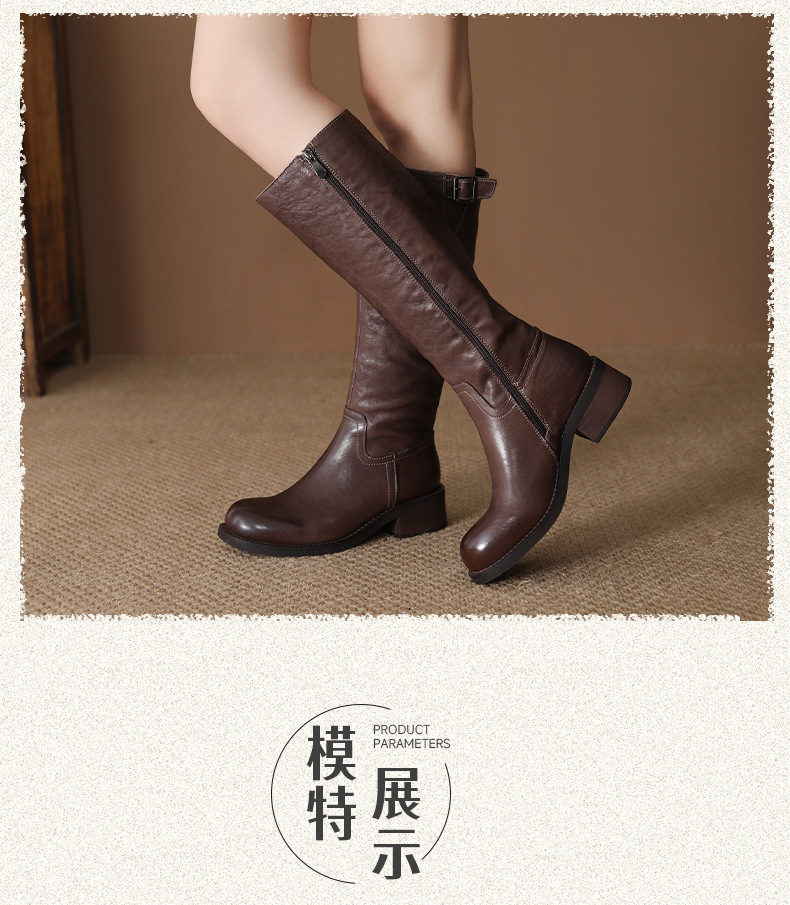 FR 85186骑士靴英伦风显瘦真皮长靴侧拉链长筒靴 商品图4