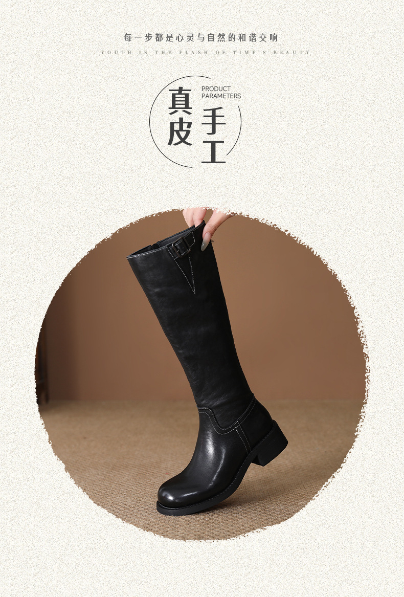 FR 85186骑士靴英伦风显瘦真皮长靴侧拉链长筒靴 商品图0