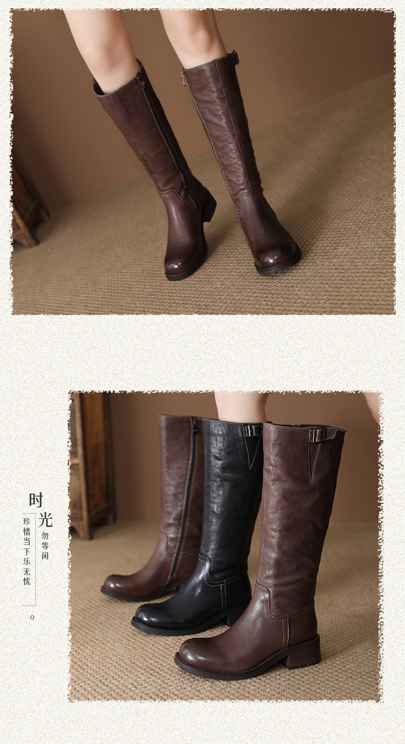 FR 85186骑士靴英伦风显瘦真皮长靴侧拉链长筒靴