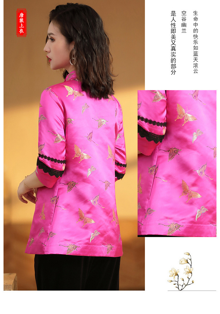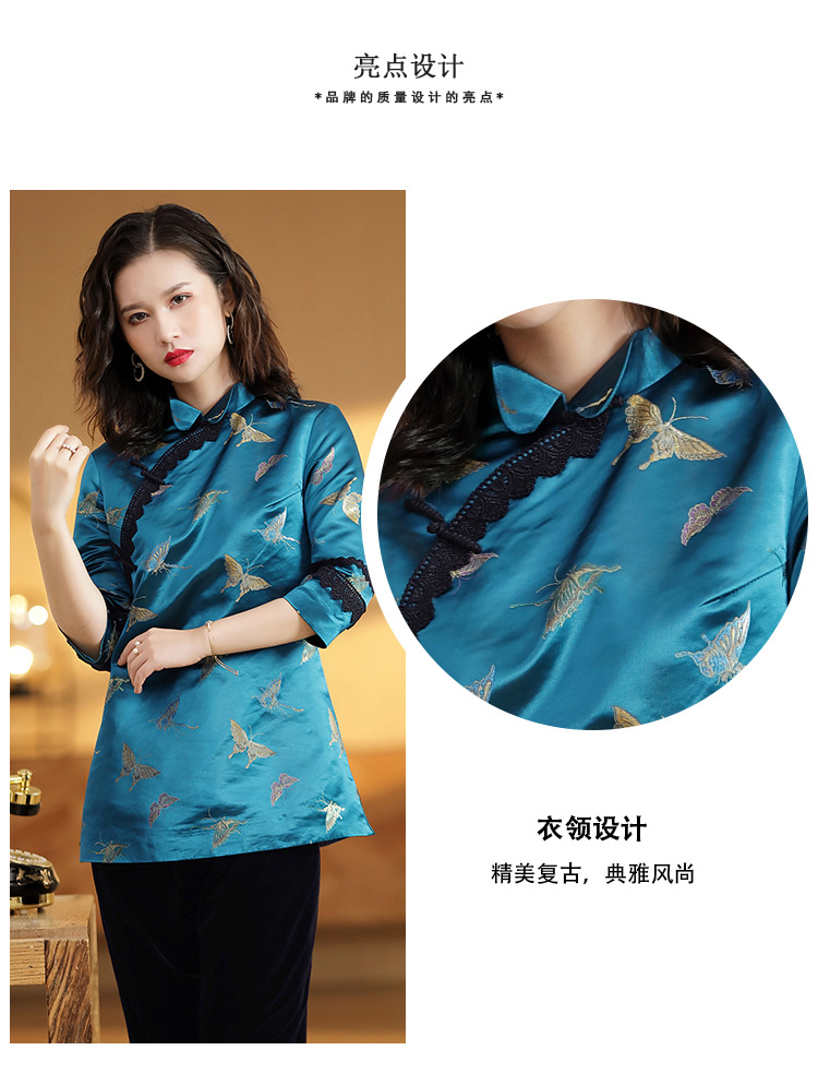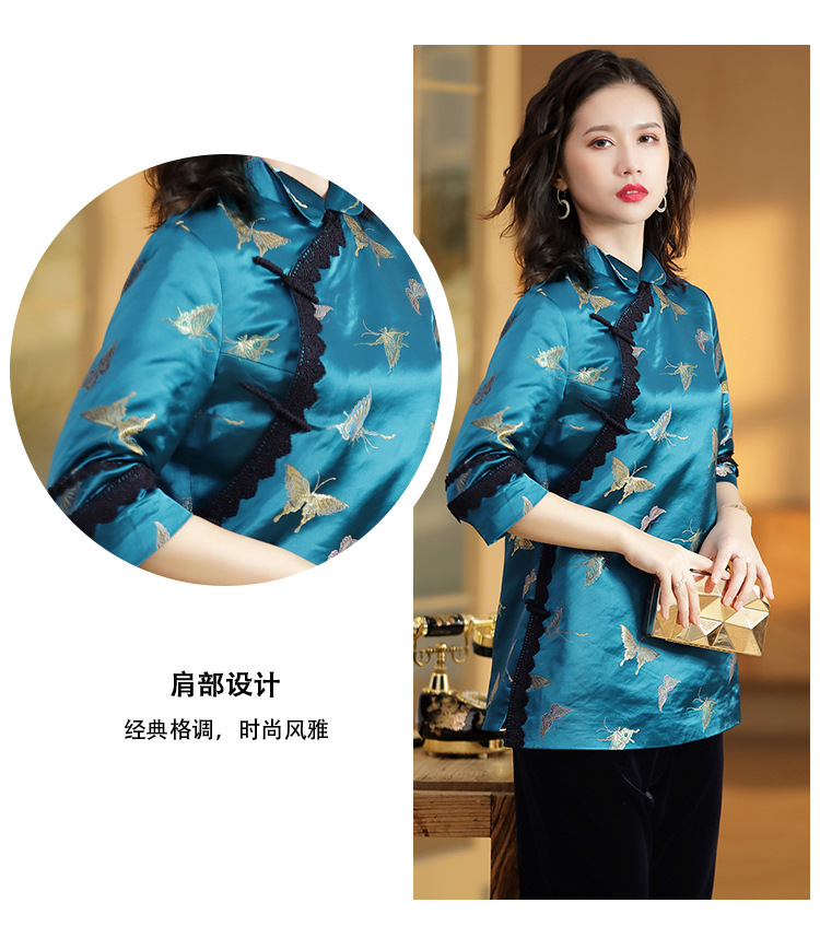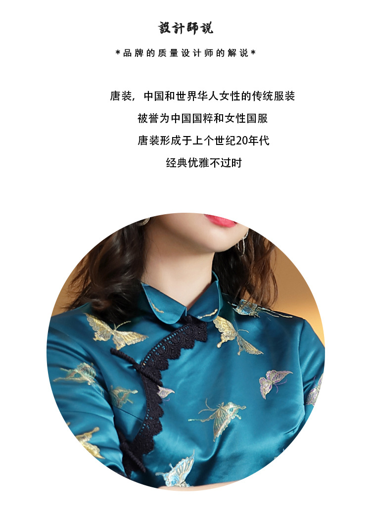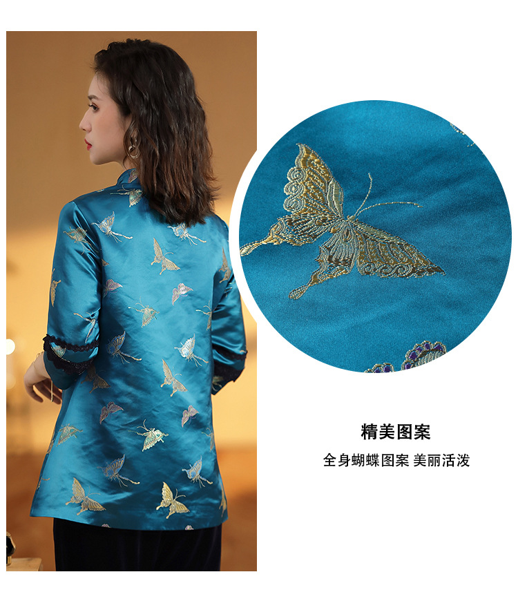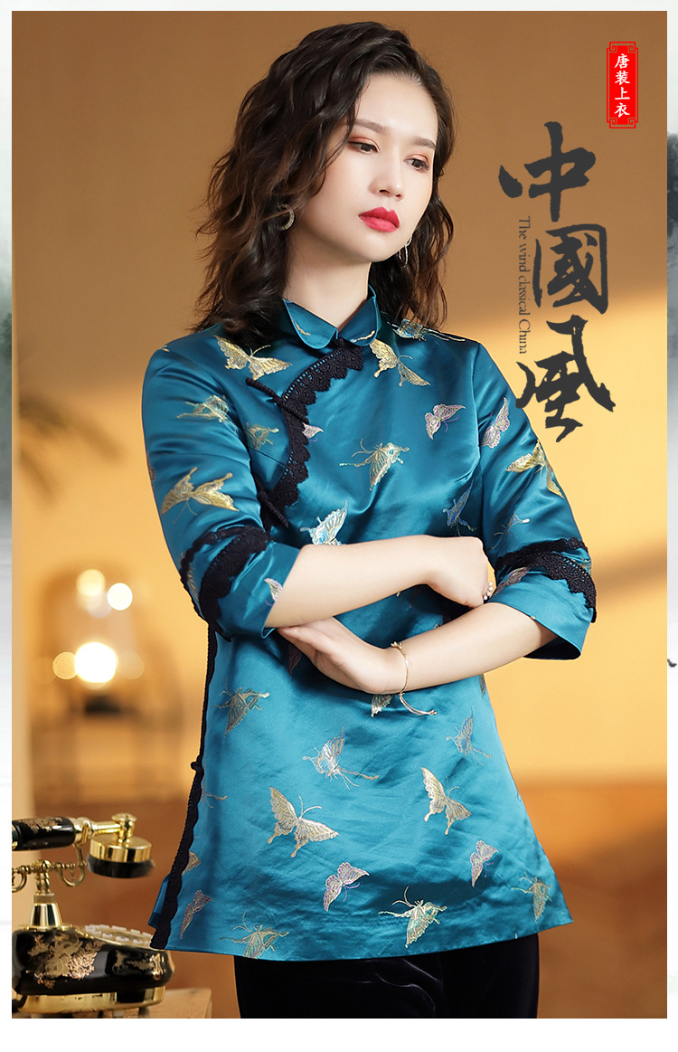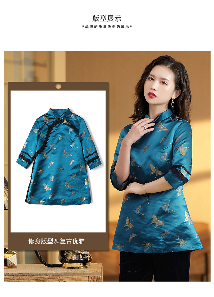 上海旗袍厂AYK-QF-191027锦缎刺绣唐装上衣女时尚改良中袖唐装女秋季新款中国风女装