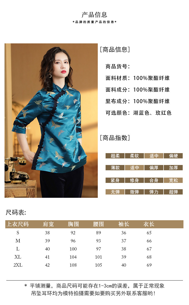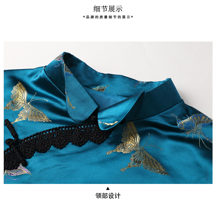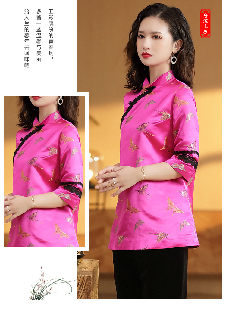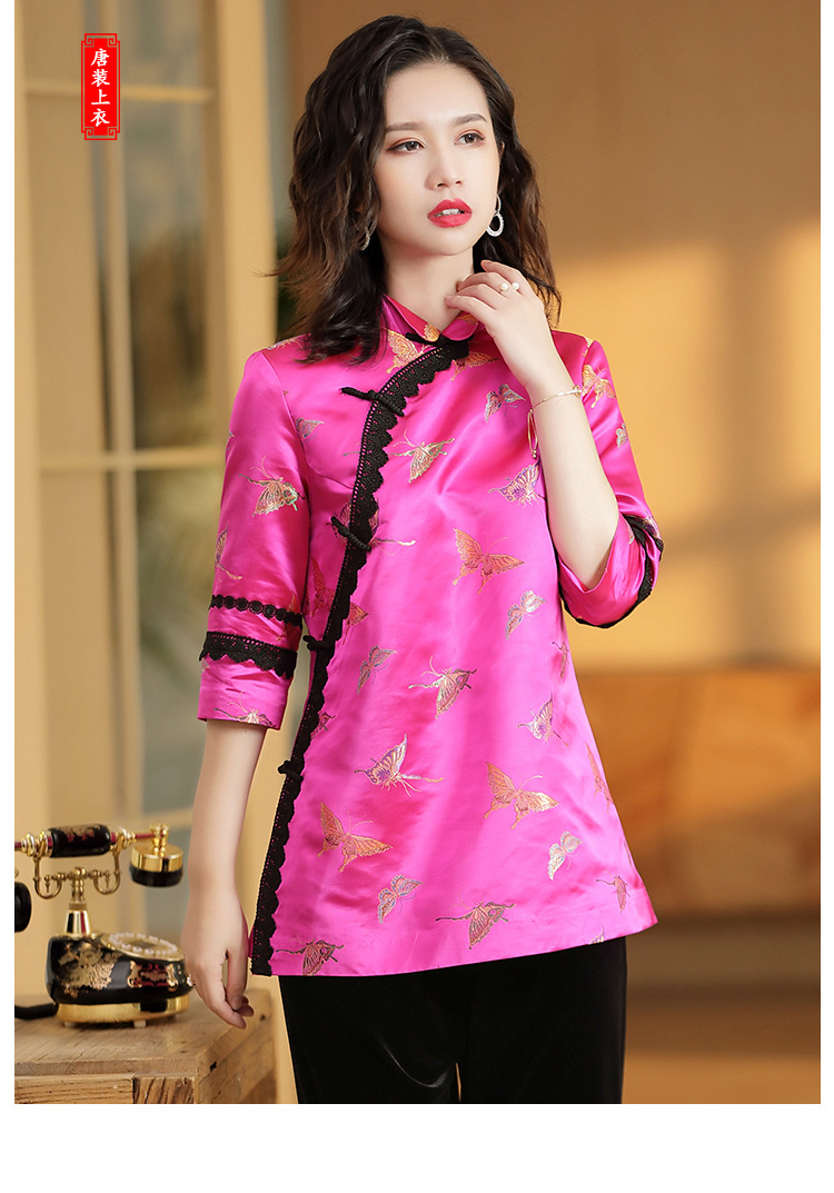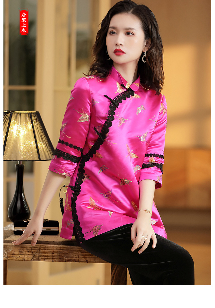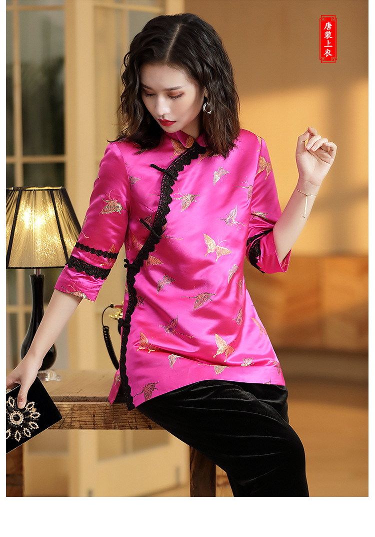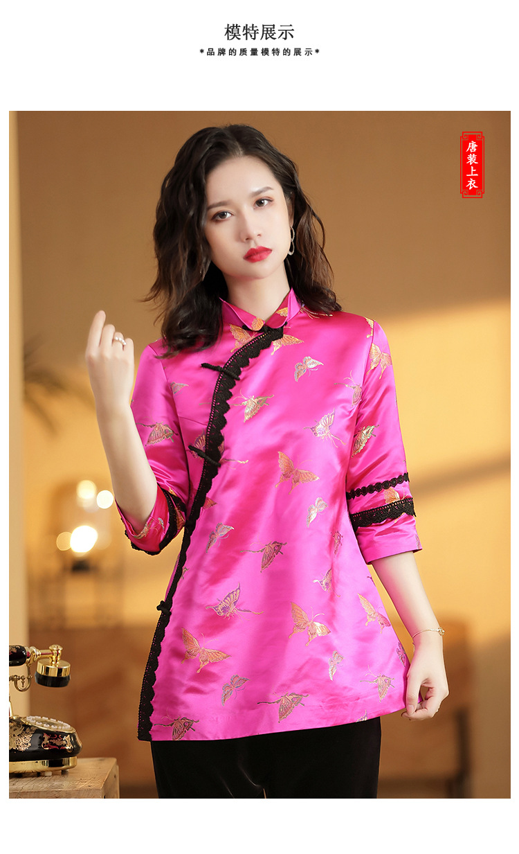 上海旗袍厂AYK-QF-191027锦缎刺绣唐装上衣女时尚改良中袖唐装女秋季新款中国风女装