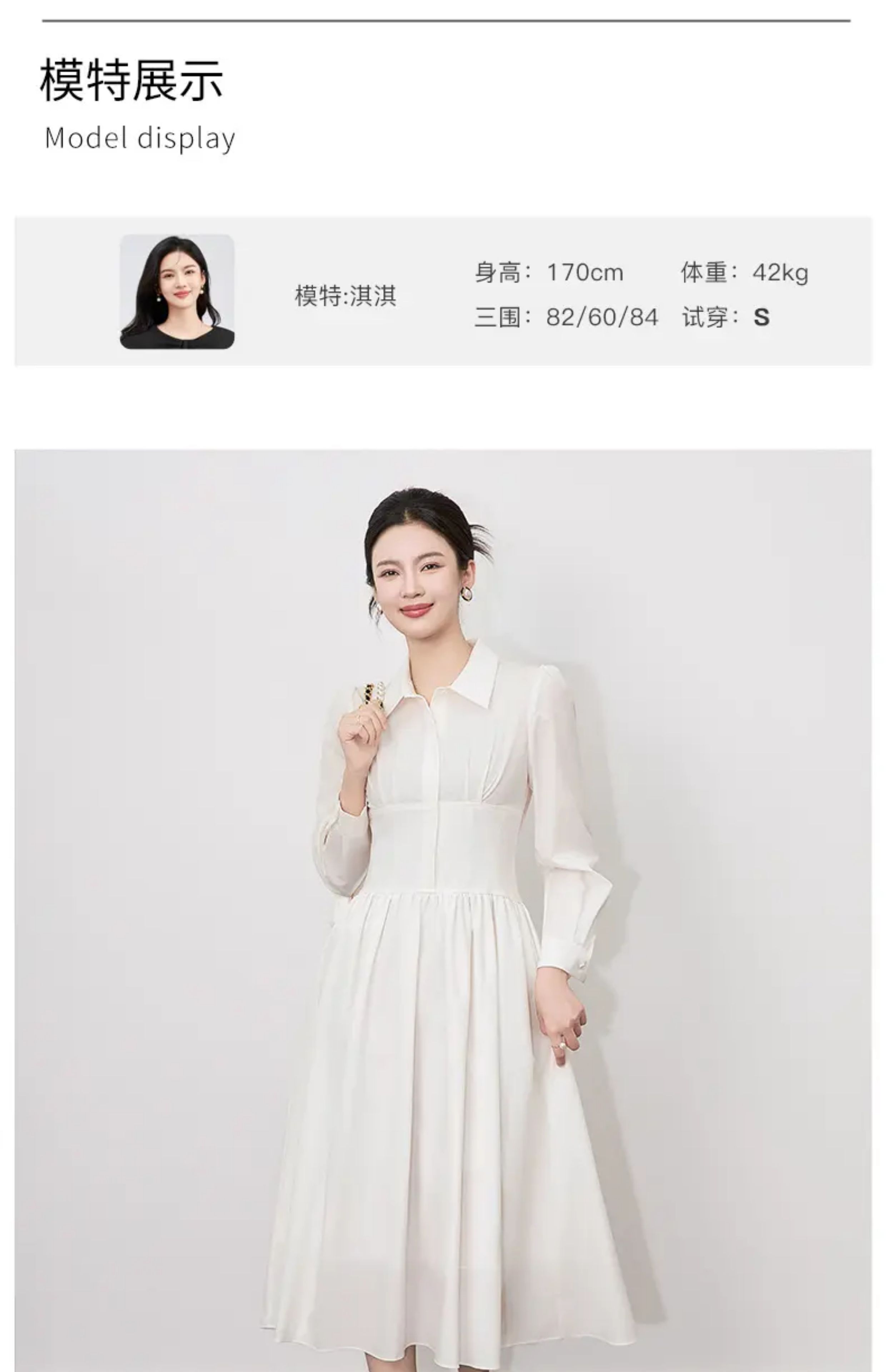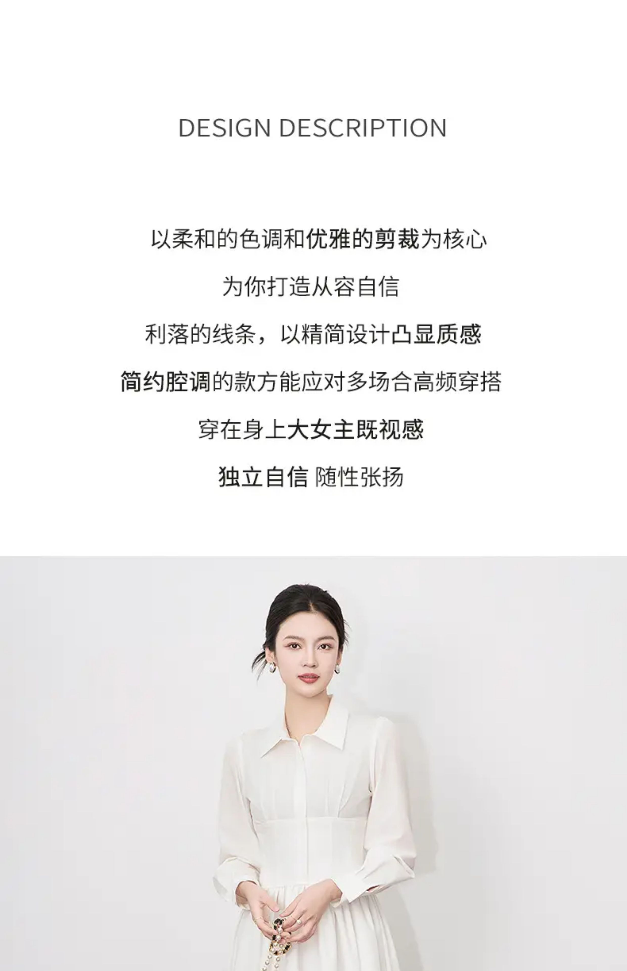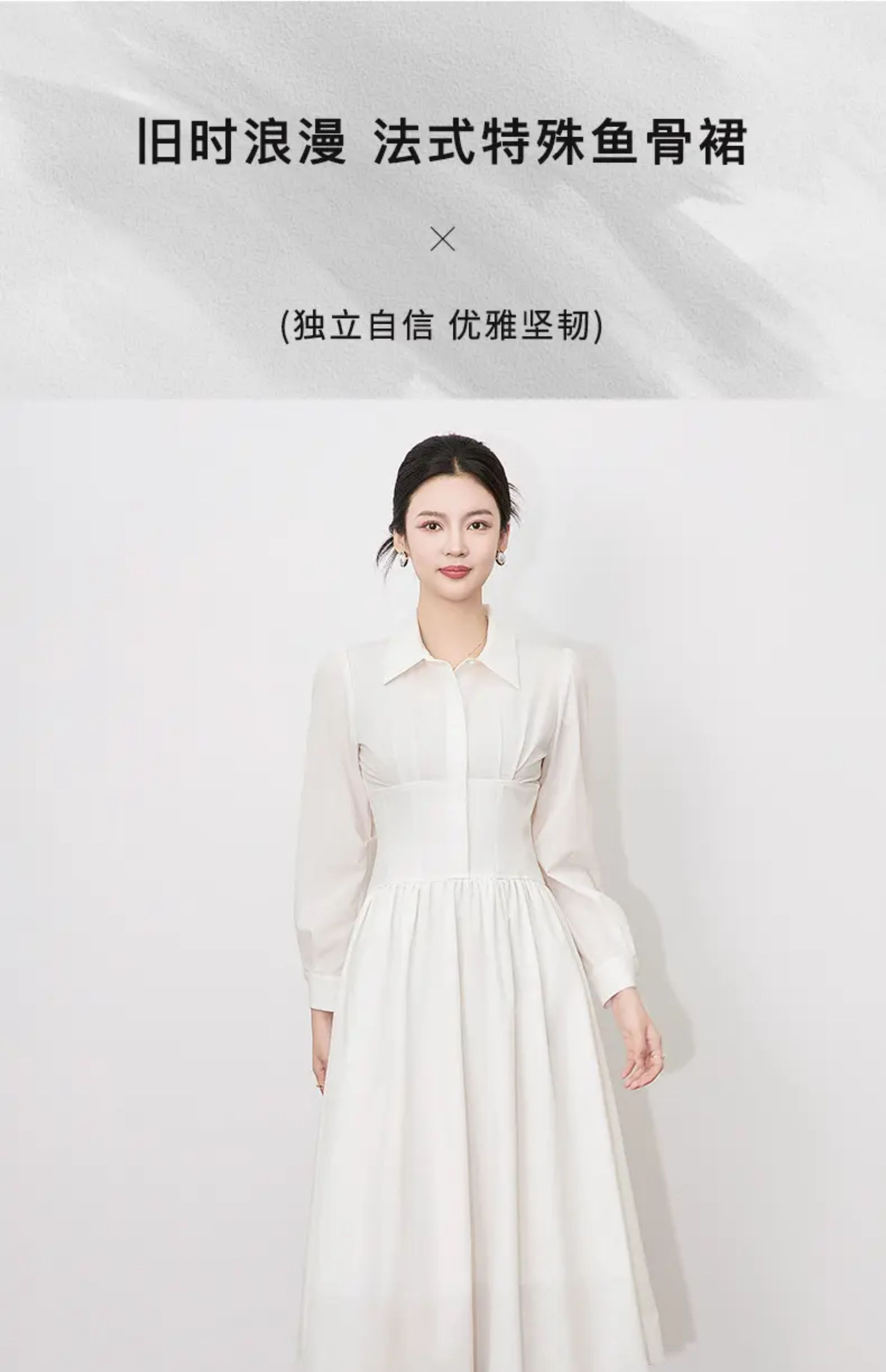 【高货wl】全新升级【铂金会员330/天猫439/差价109】(02440) 洛诗琳法式气质显瘦优雅衬衫裙通勤复古收腰压褶连衣裙