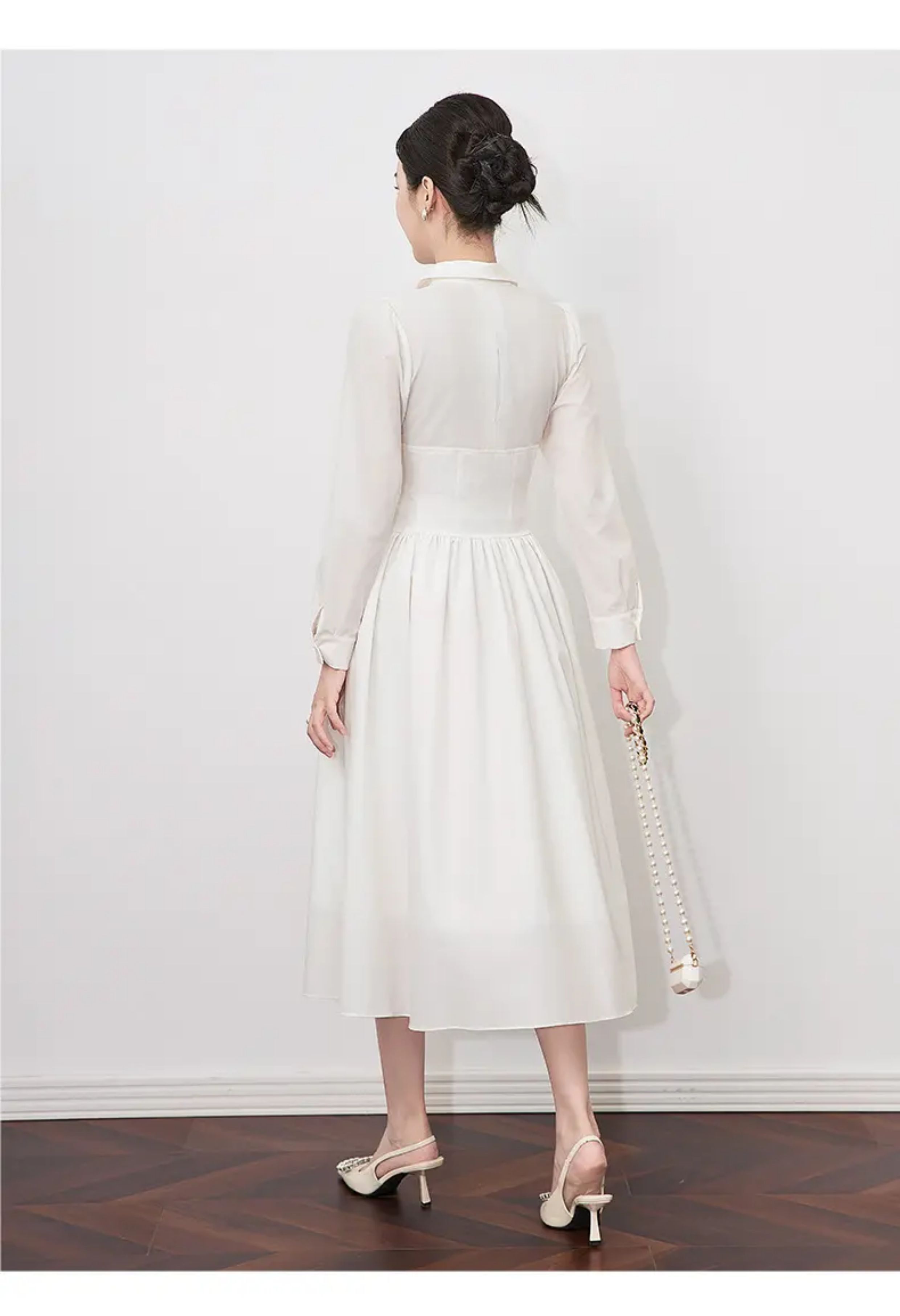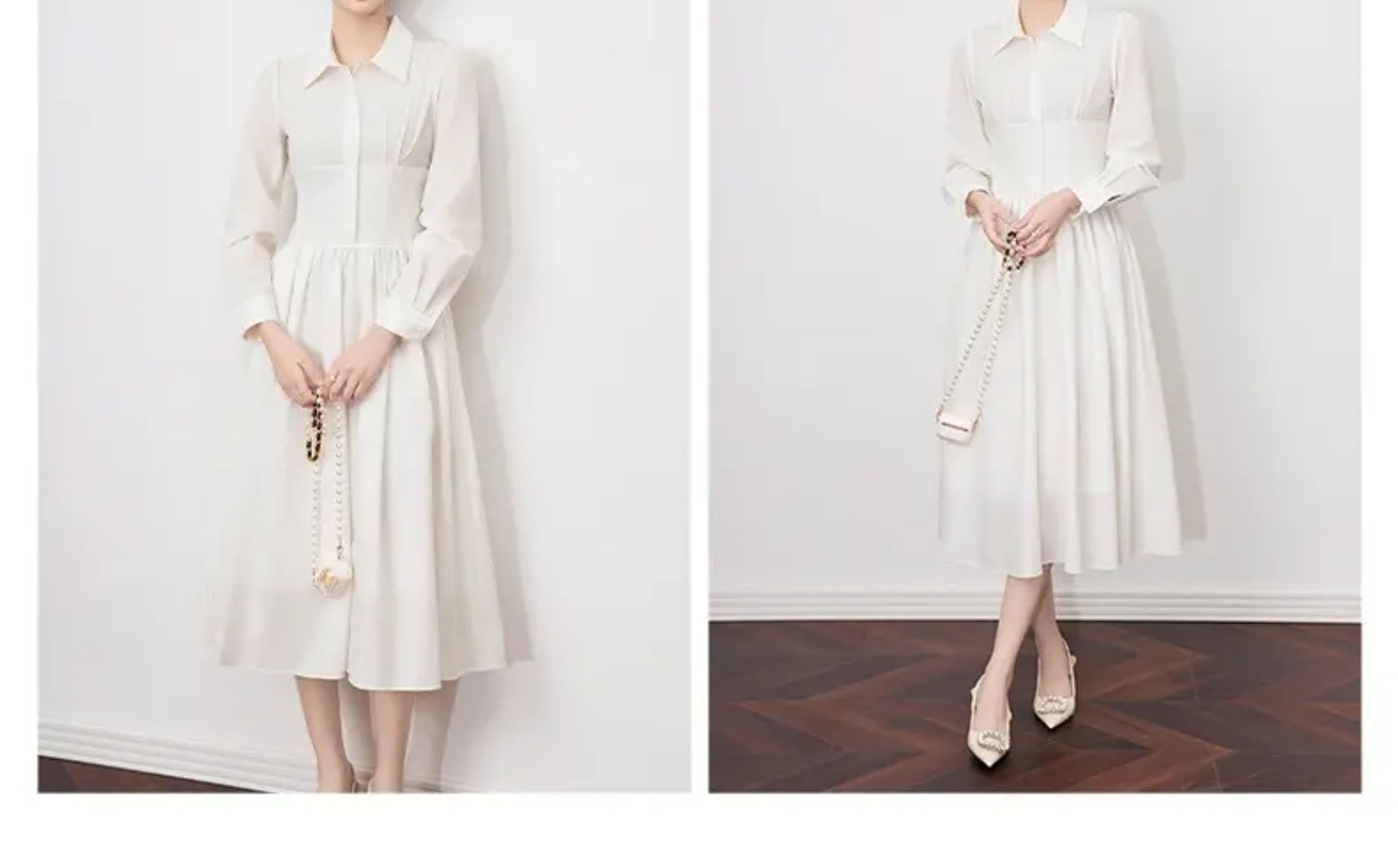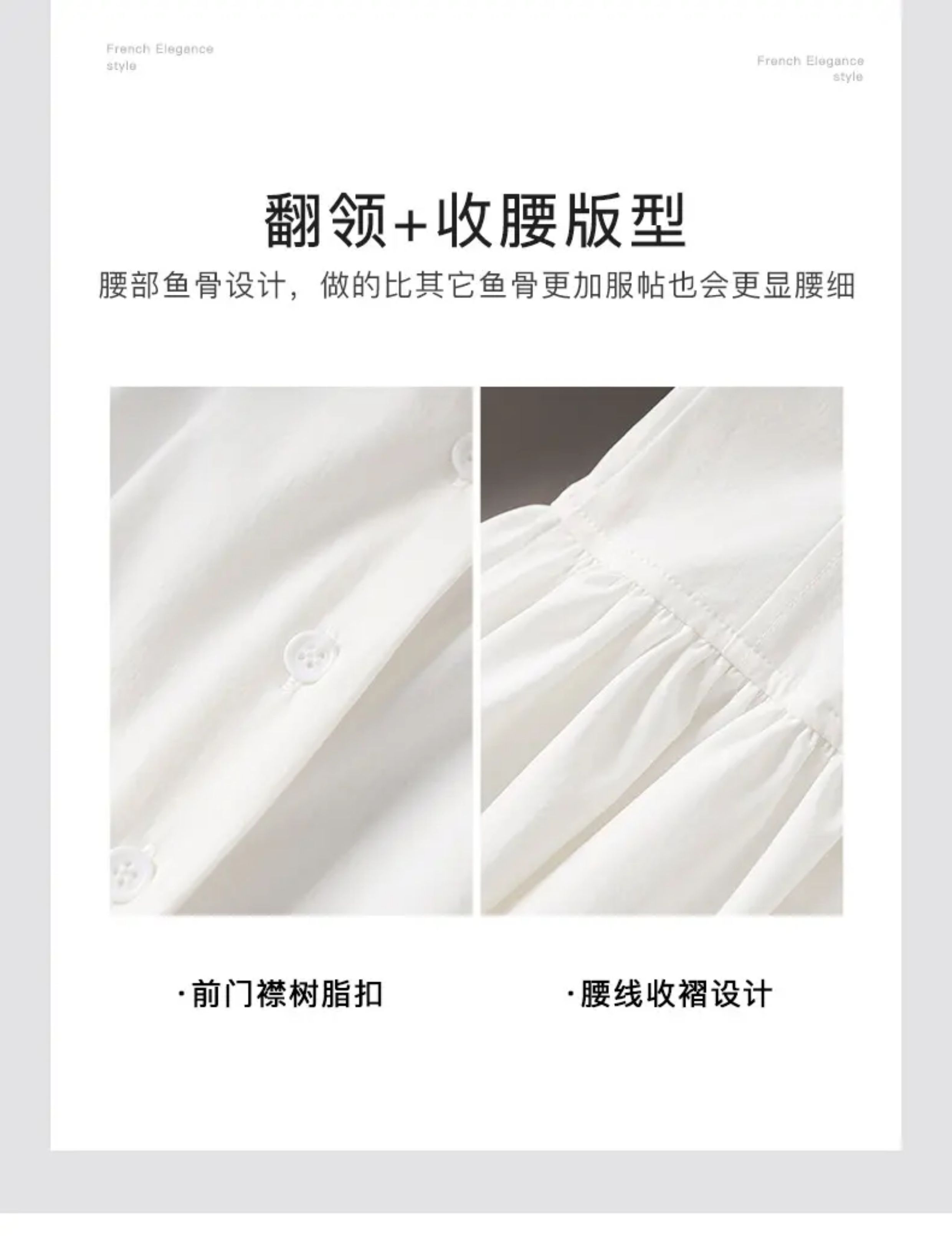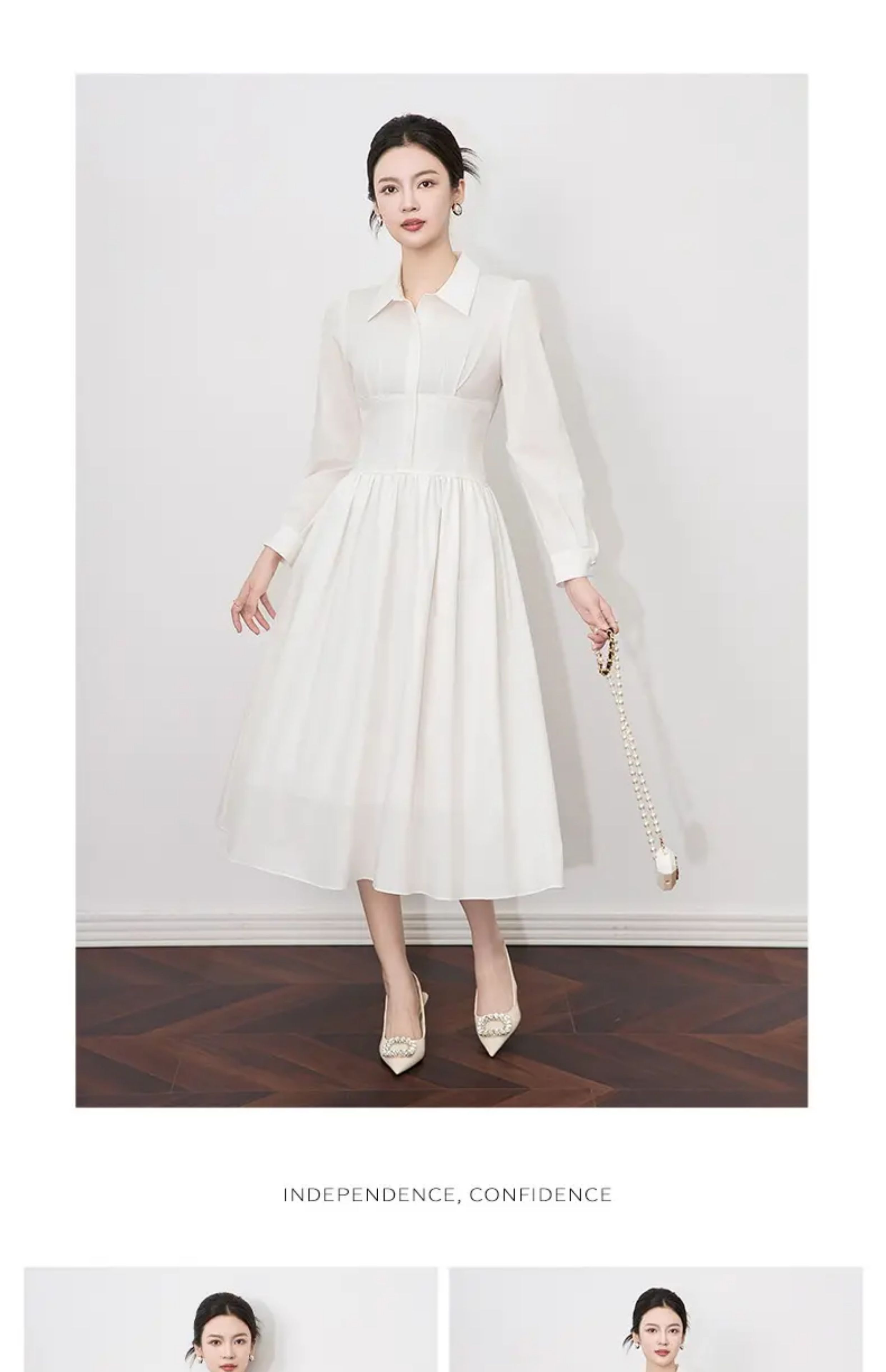 【高货wl】全新升级【铂金会员330/天猫439/差价109】(02440) 洛诗琳法式气质显瘦优雅衬衫裙通勤复古收腰压褶连衣裙