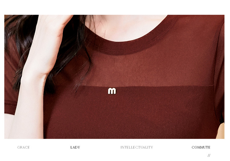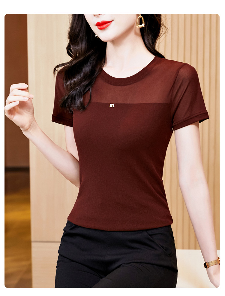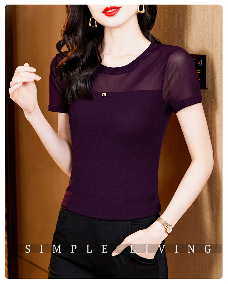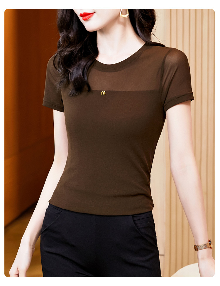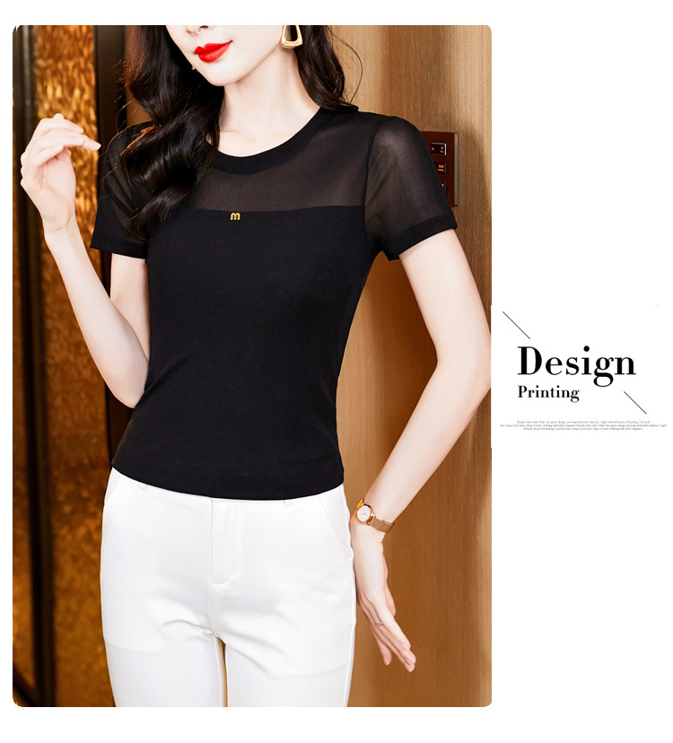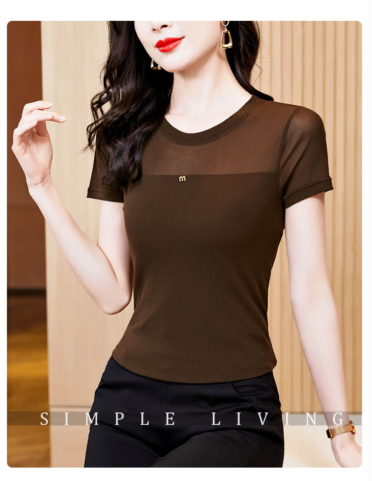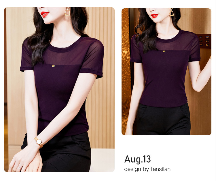 KQLE37M27812024夏季新款圆领百搭大码打底衫修身显瘦纯色网纱短袖t恤女批发