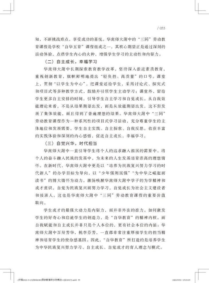 劳动教育是当前的教育的热点之一,劳动教育的成熟经验和特色课程极为缺乏,而华附学农教育坚持了30多年不间断,“三同活动方式”“五类课程体系”“三方协作机制”独树一帜,课程成熟规范、育人效果显著、社会影响深远,是不可多得的劳动教育范本。本书系统阐述了华南师大附中30年农村社会实践的探索历程及课程体系的建构。内容主要包括课程的发展历程、课程目标、课程内容、课程的实施方式、支持系统、评价方式以及取得的成效等。