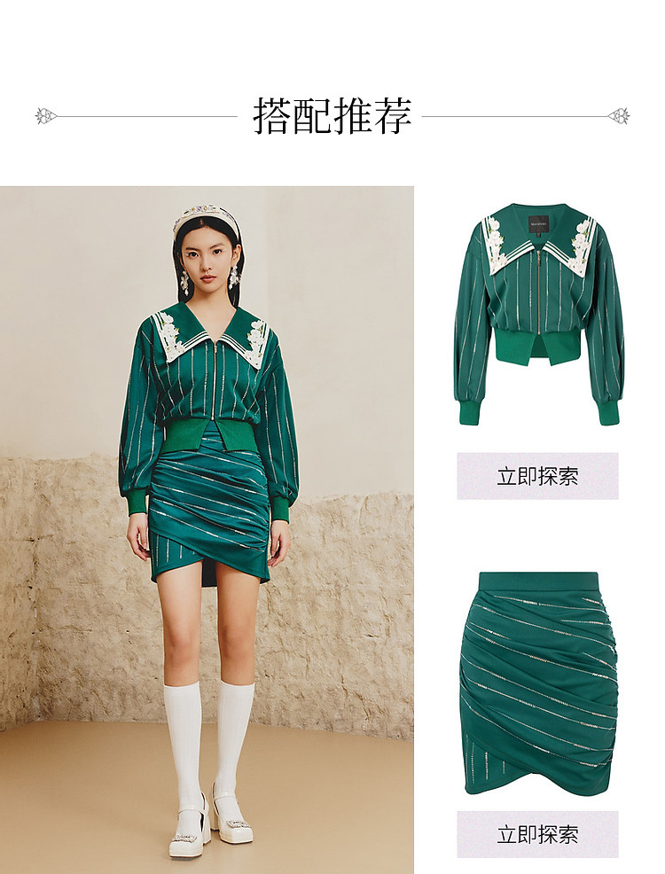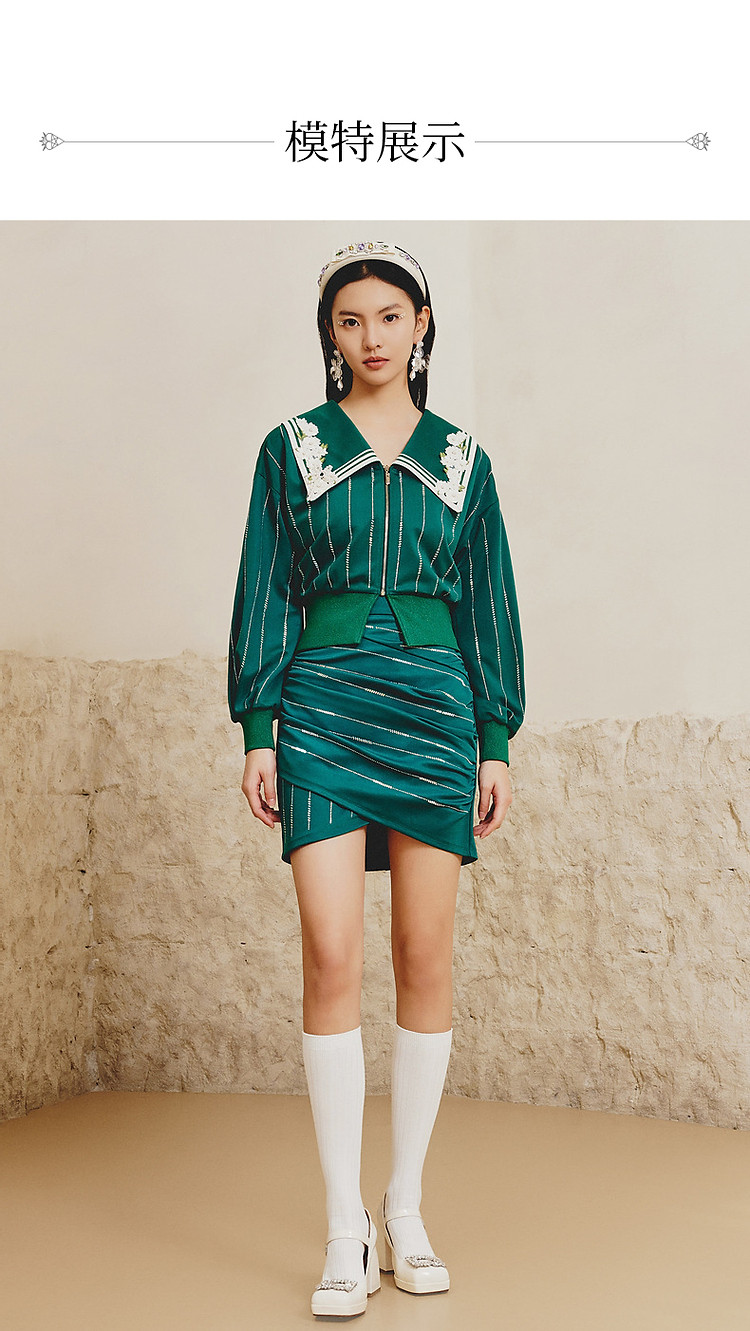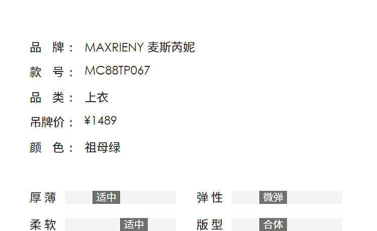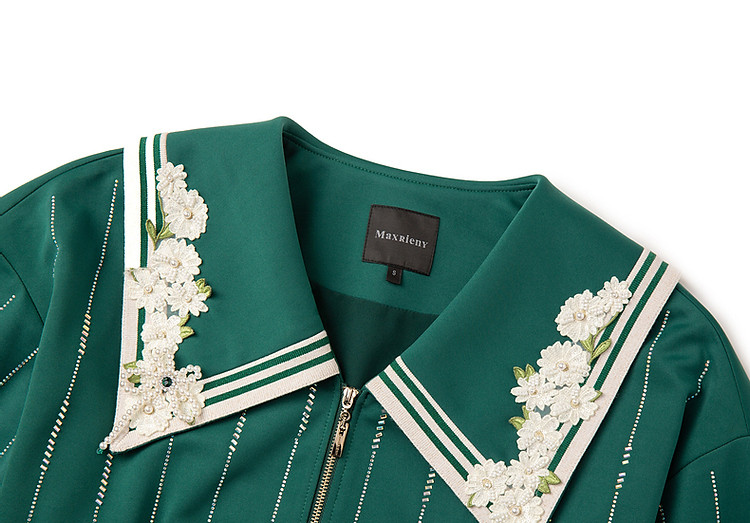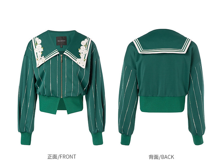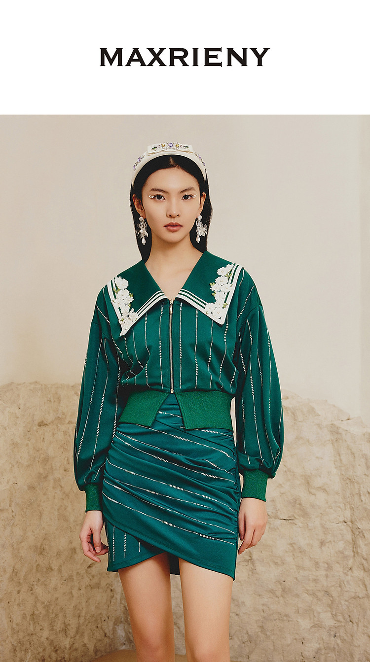 MAXRIENY春日复古文艺氛围感祖母绿大翻领短款外套女MC88TP067G60