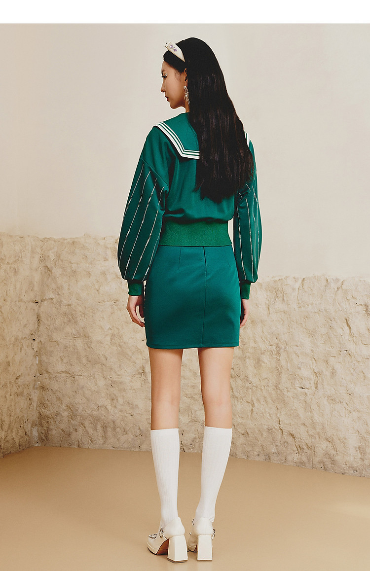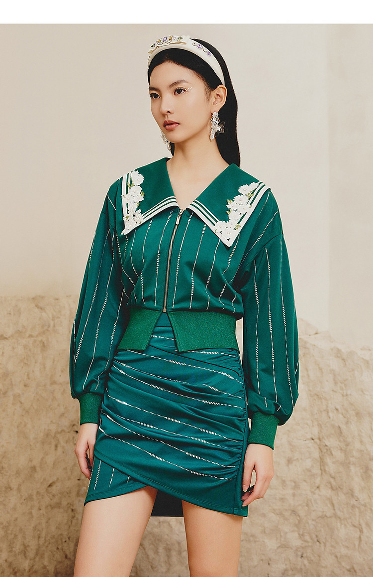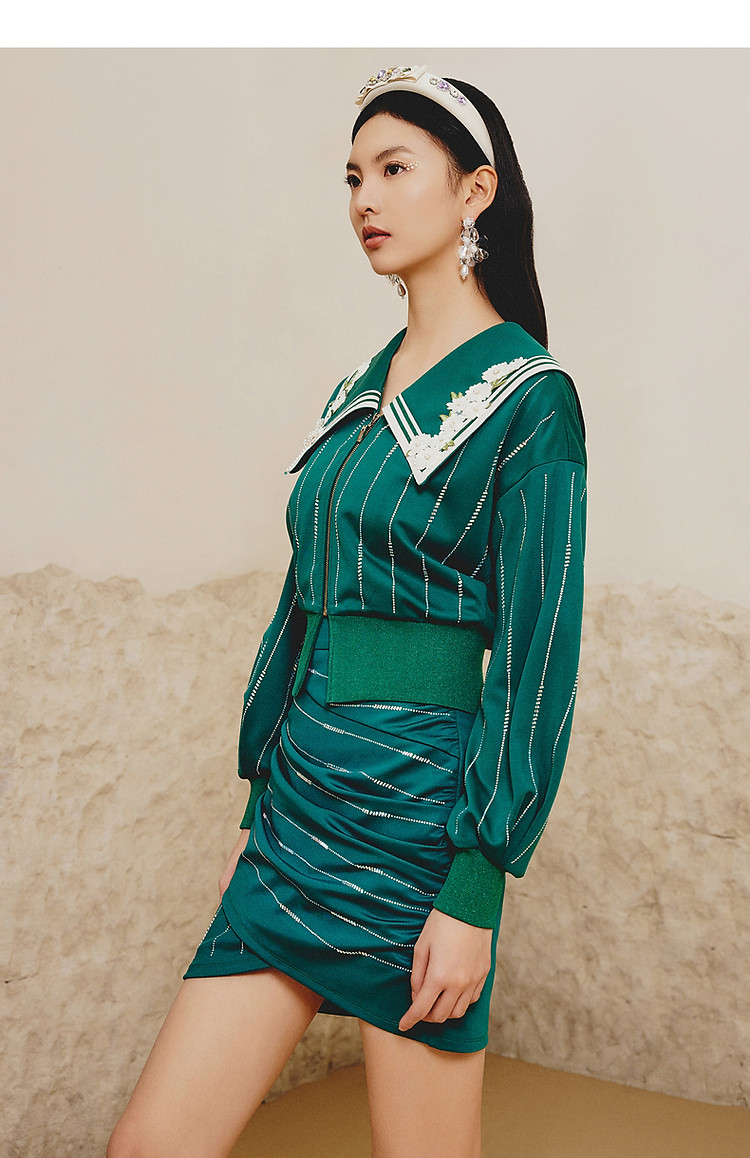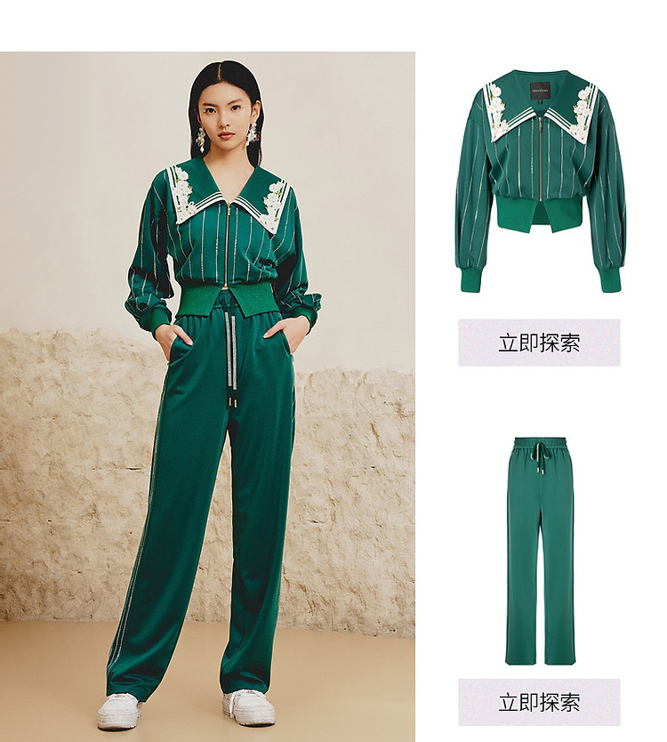 MAXRIENY春日复古文艺氛围感祖母绿大翻领短款外套女MC88TP067G60