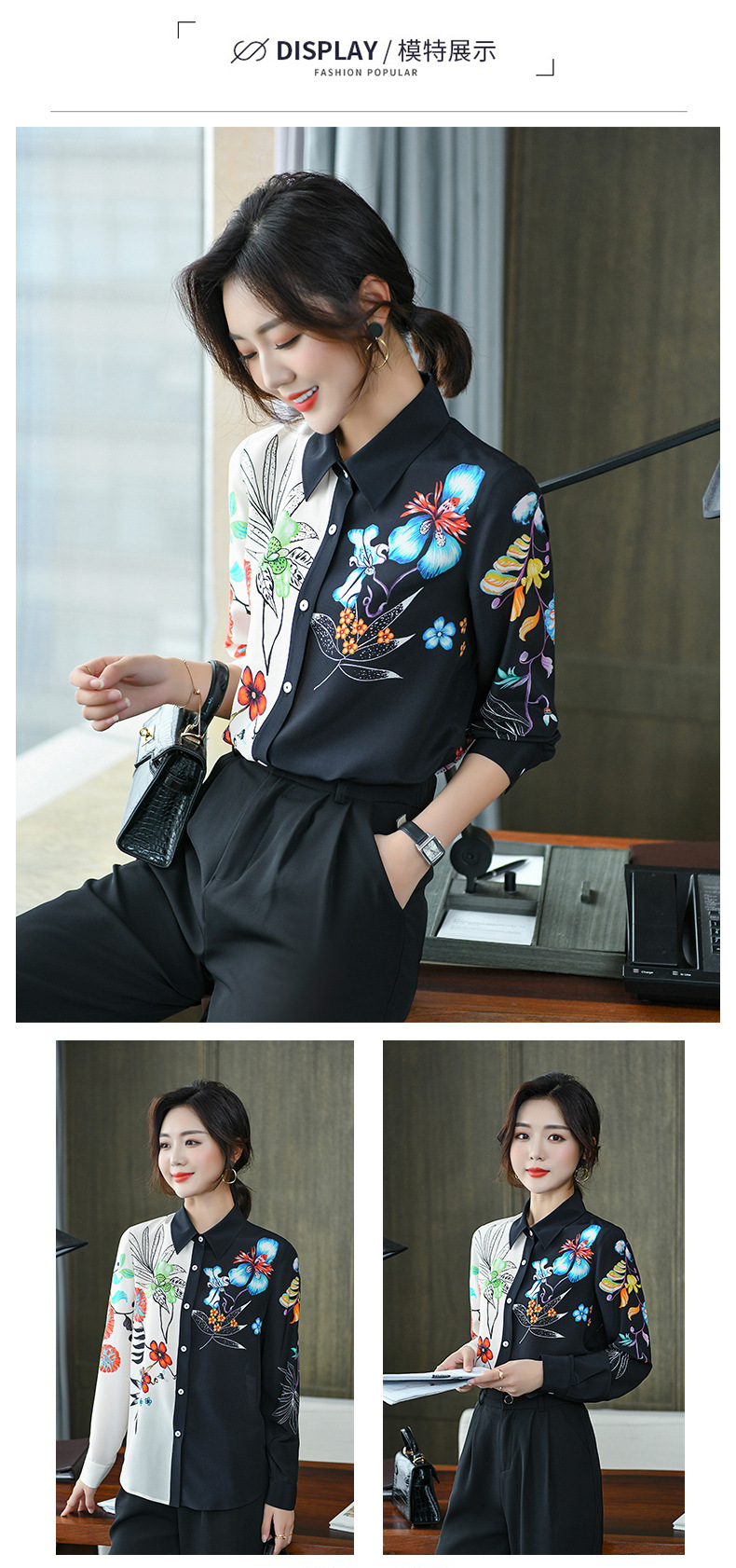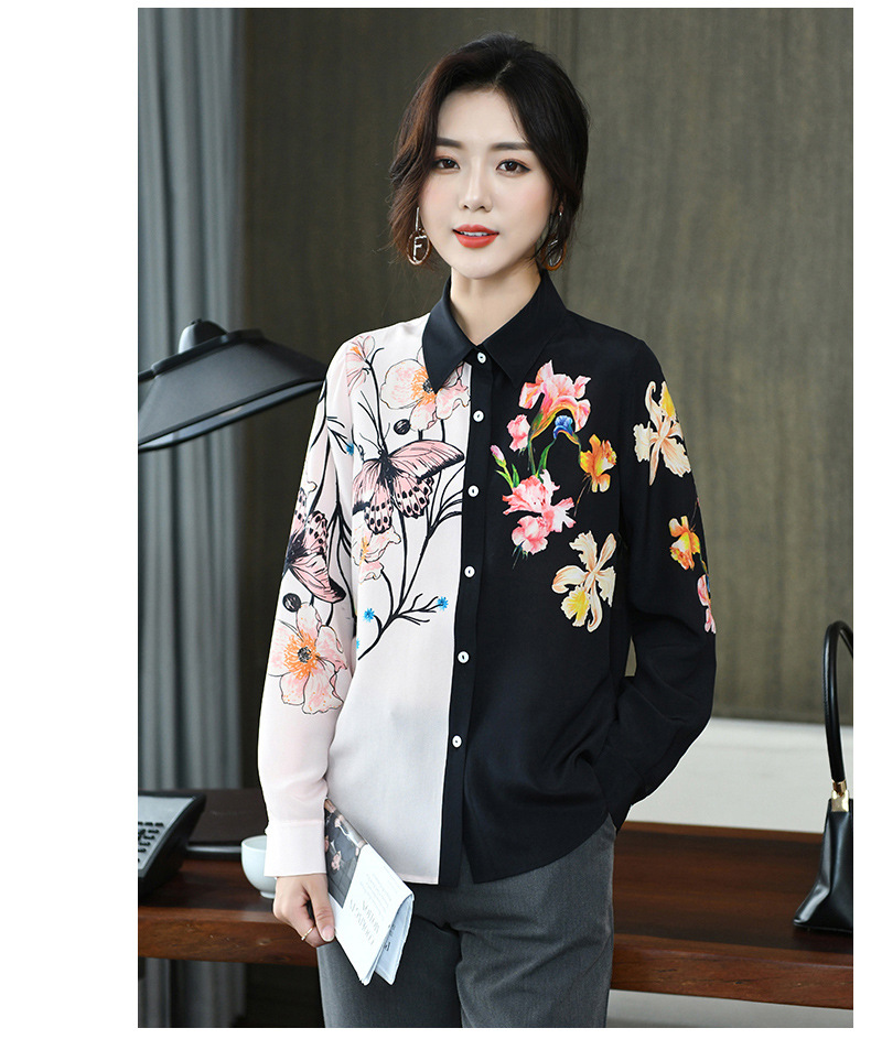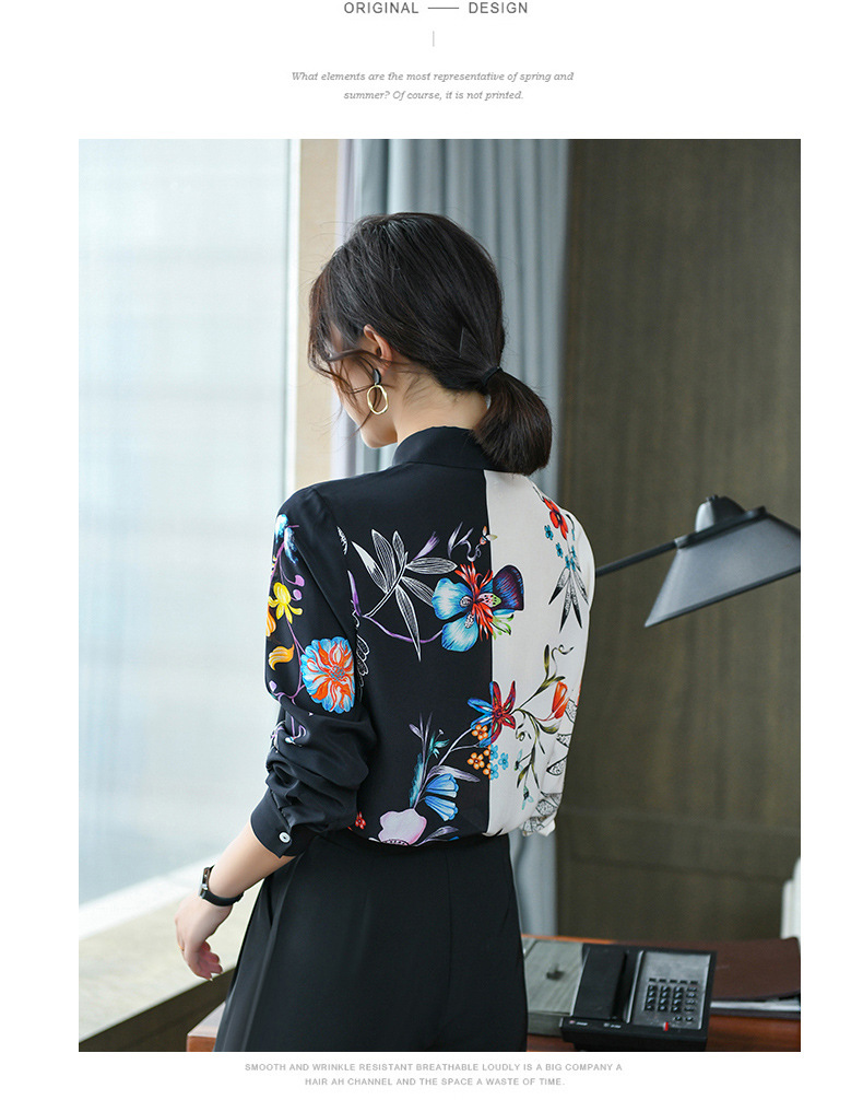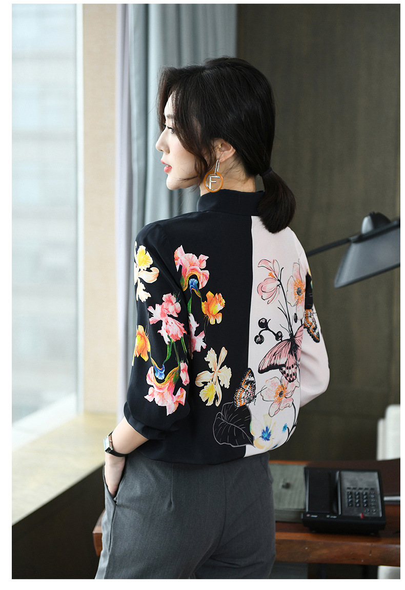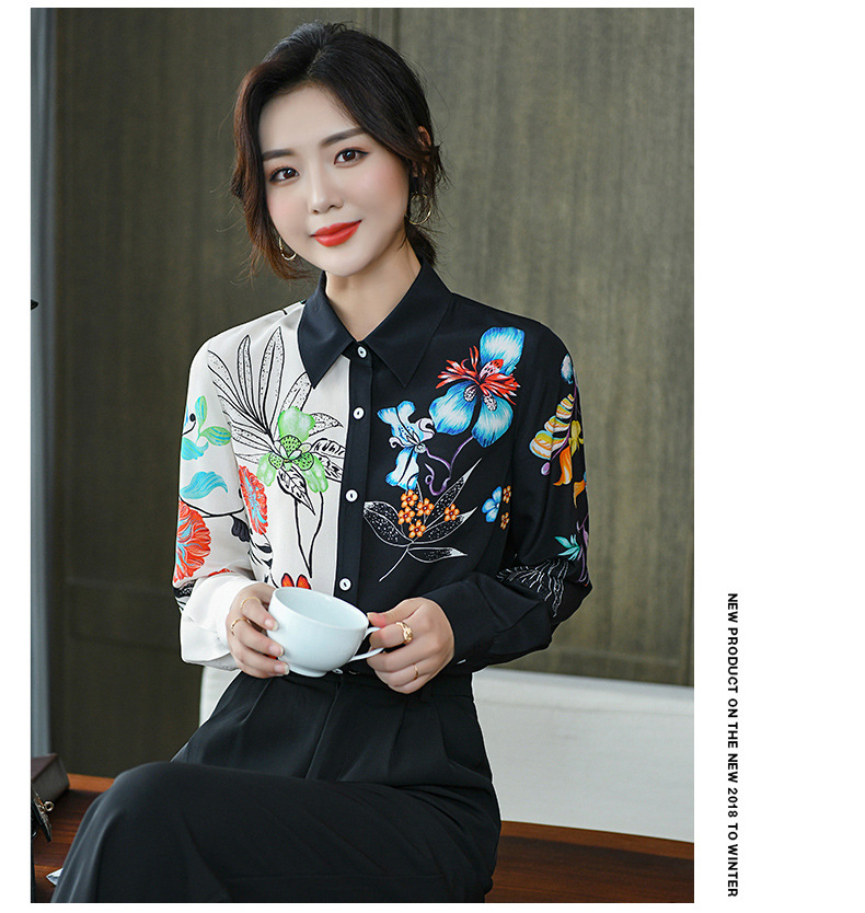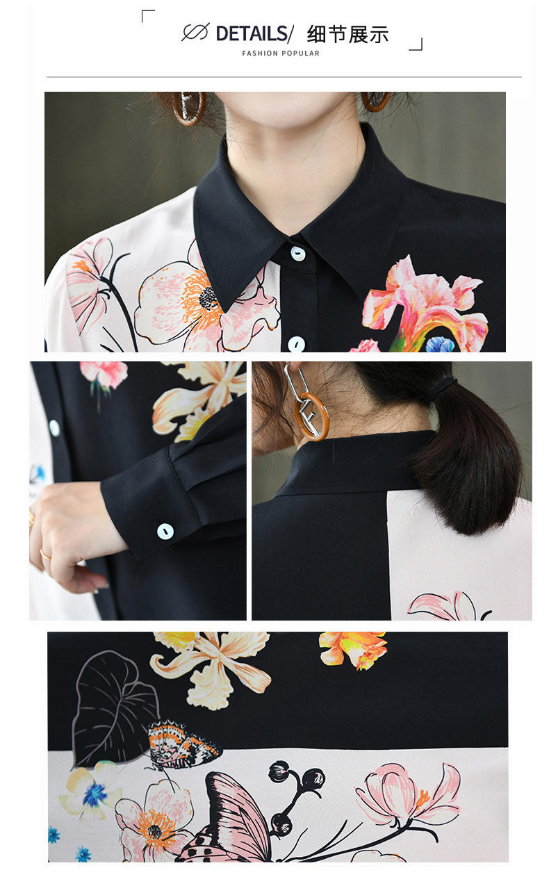 KQL-260003春夏新款真丝衬衫女拼接洋气桑蚕丝上衣