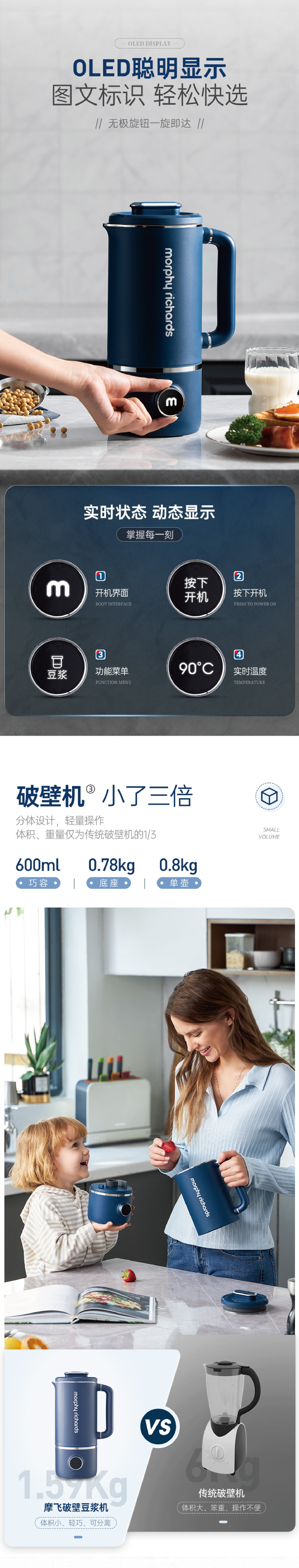 杞冠臻选 | 摩飞 破壁豆浆机 600ML 轻奢蓝 椰奶白 英伦红 MR8200