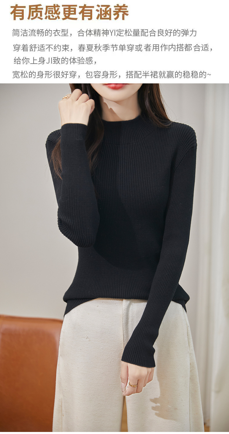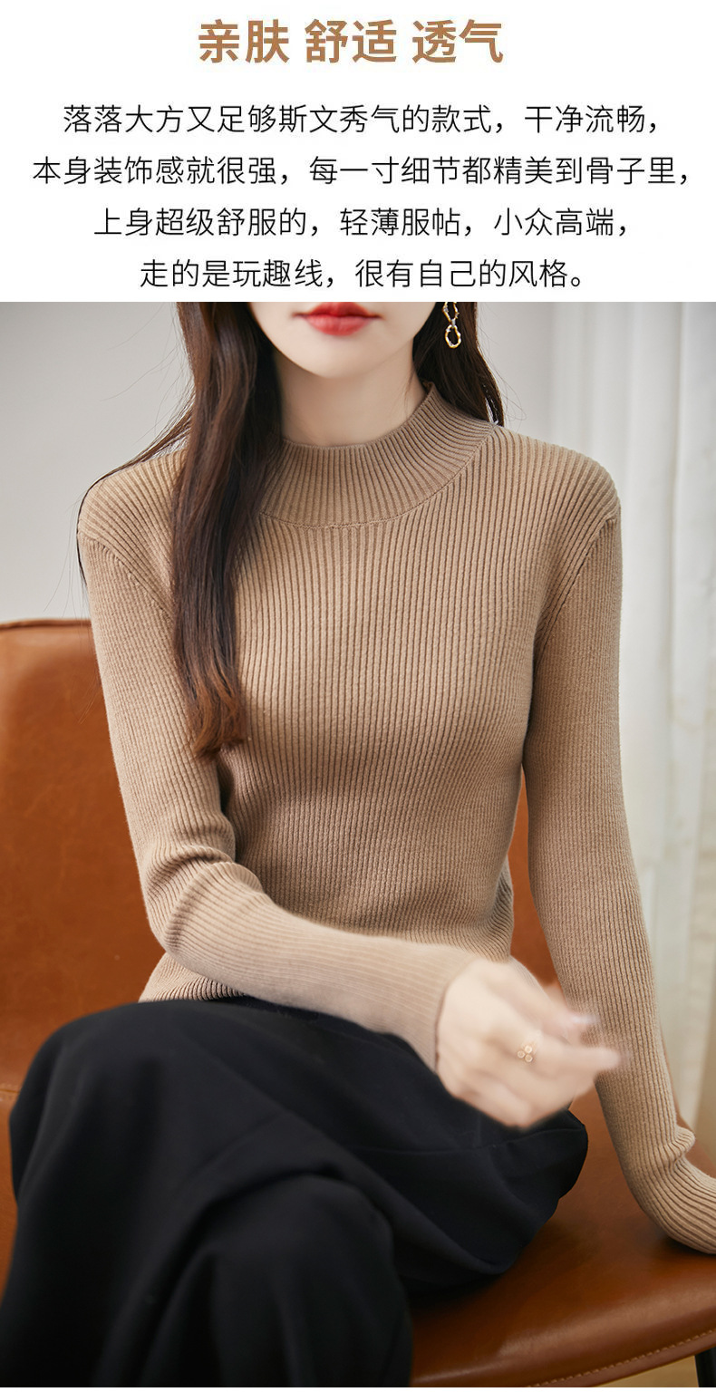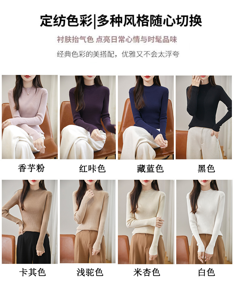 丁摩 不起球纯棉针织毛衣女秋冬新款修身内搭半高领全棉线打底衫上衣5ZF-030