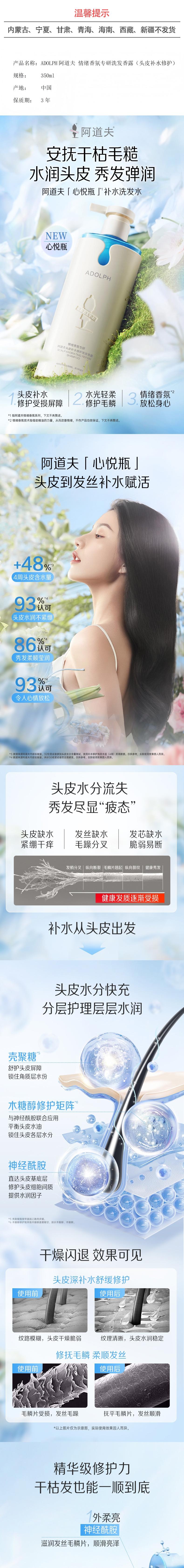 ADOLPH阿道夫 情绪香氛专研洗发香露(头皮补水修护)350ml 6936000914457