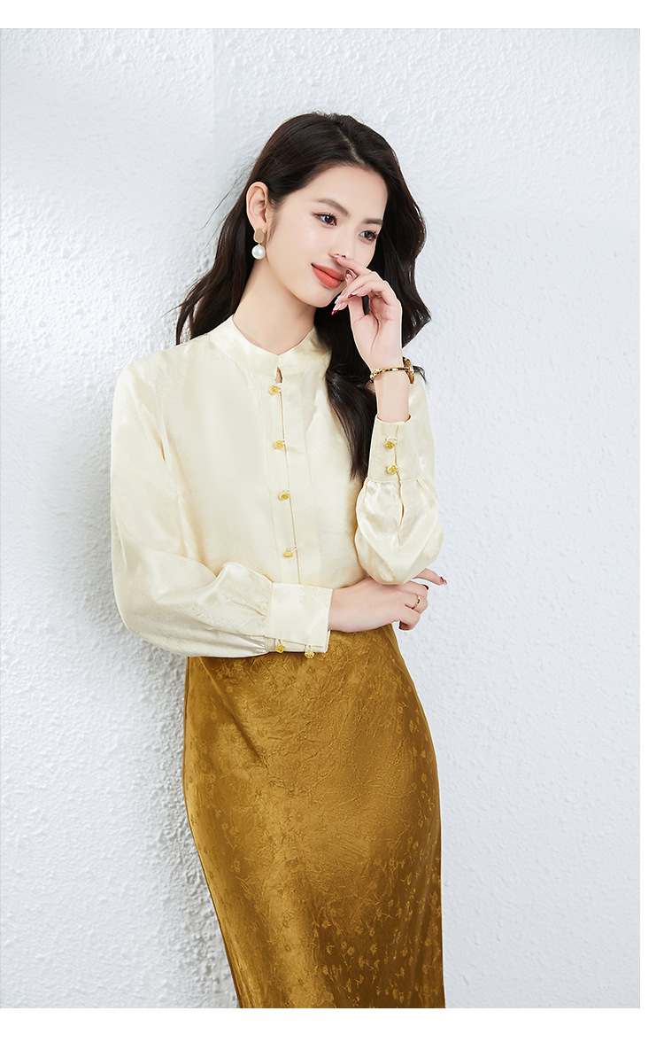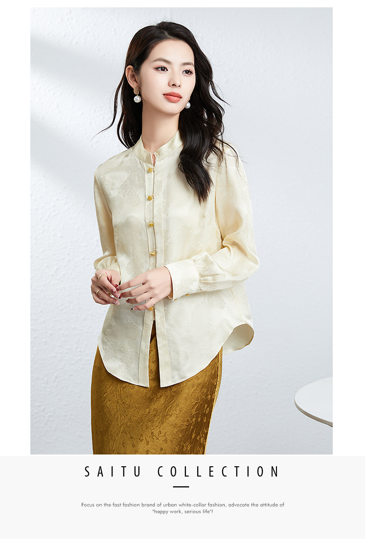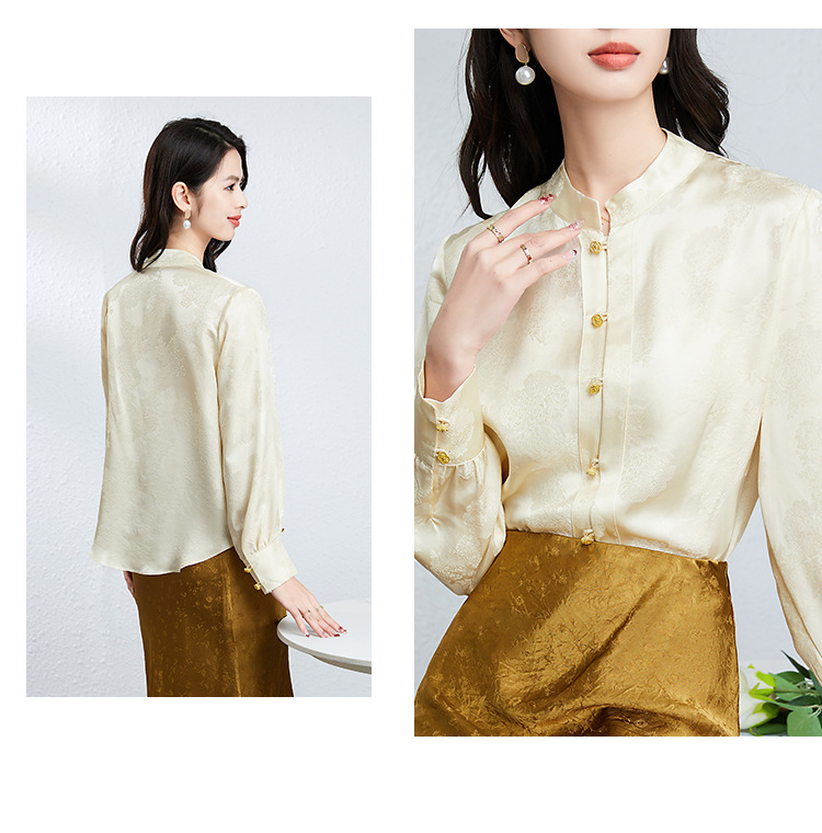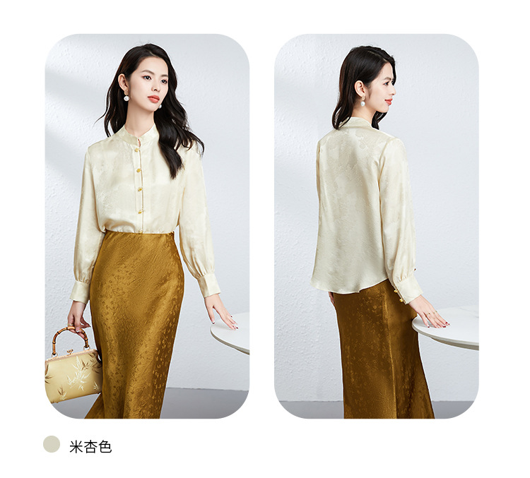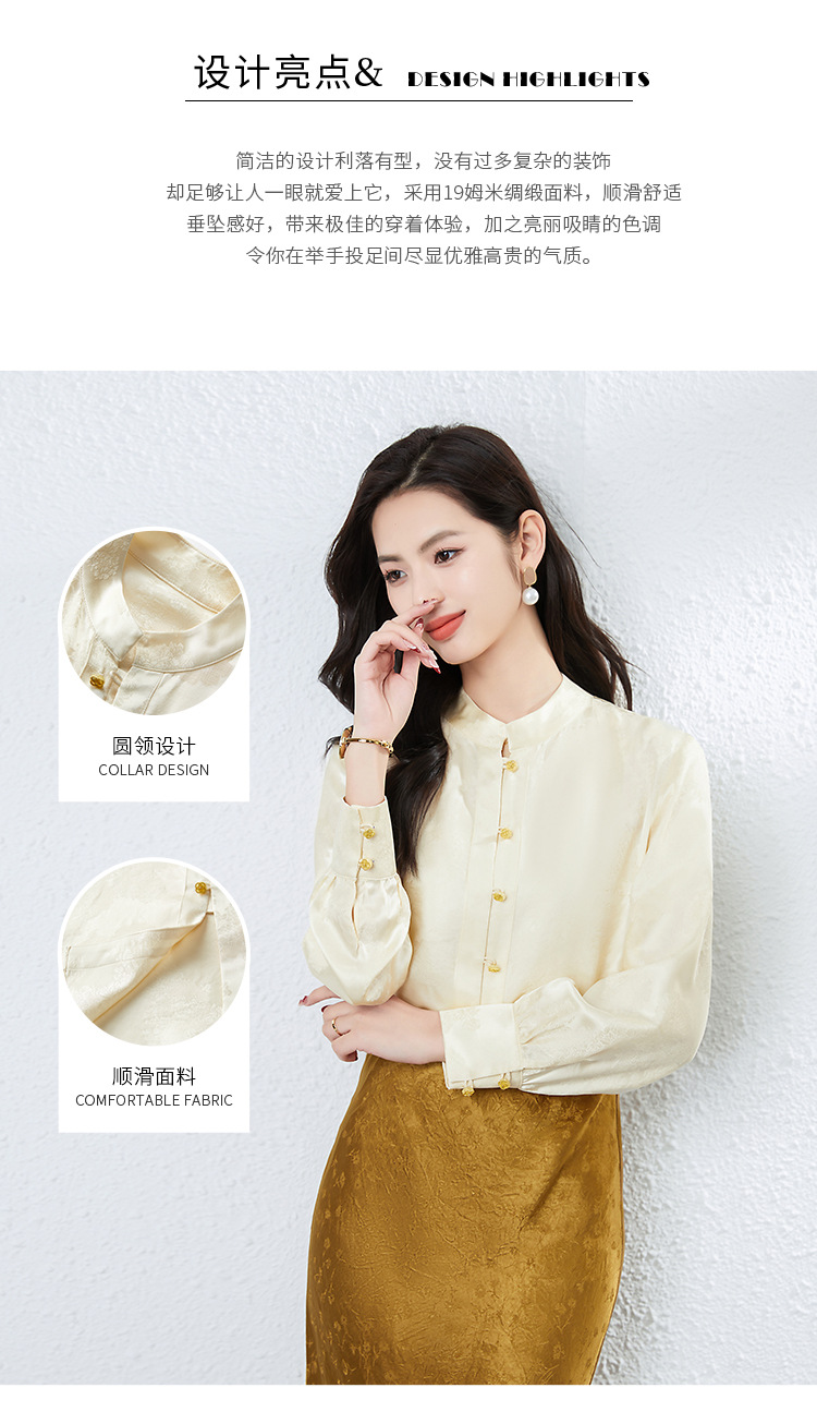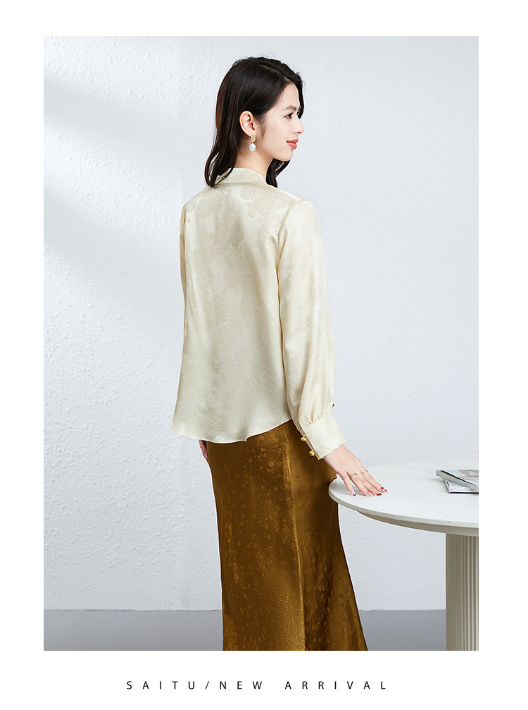 丁摩 真丝桑蚕丝衬衫女春夏长袖女式新中式高级感轻奢气质款上衣5ZF-25008