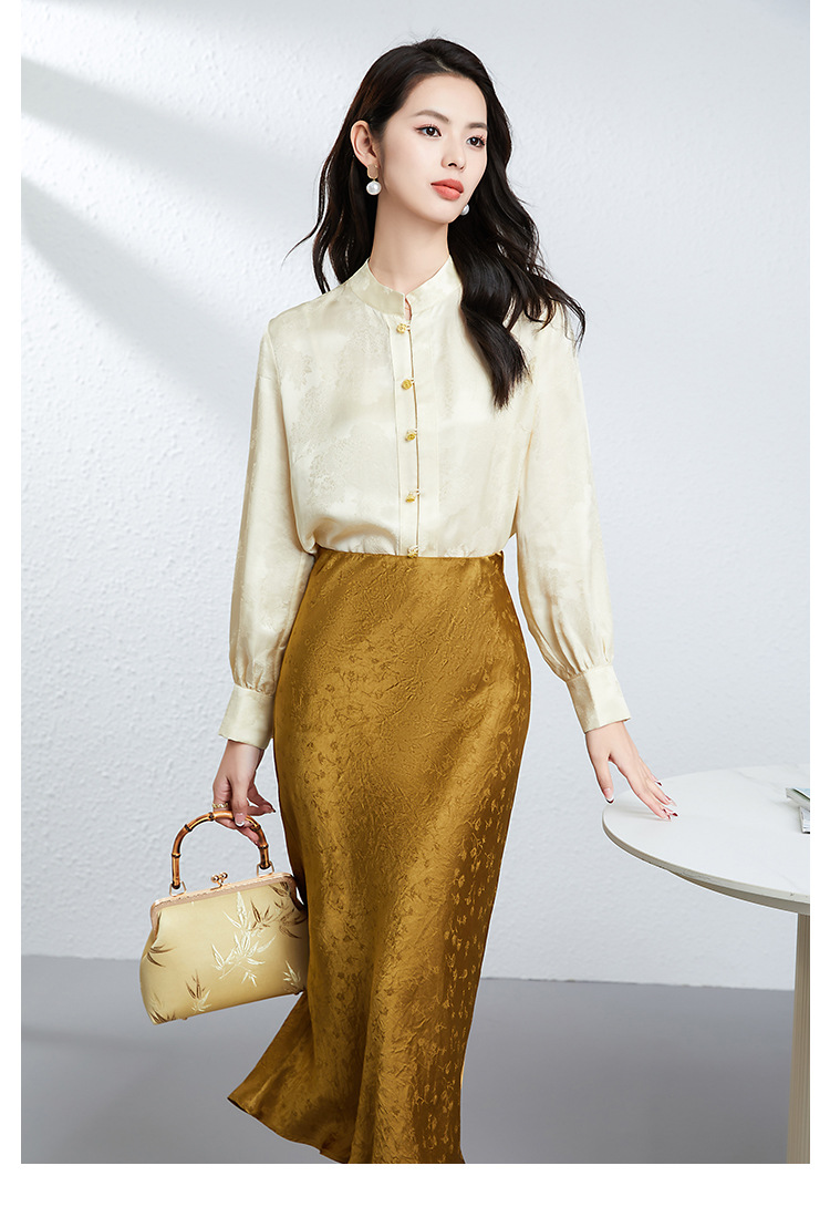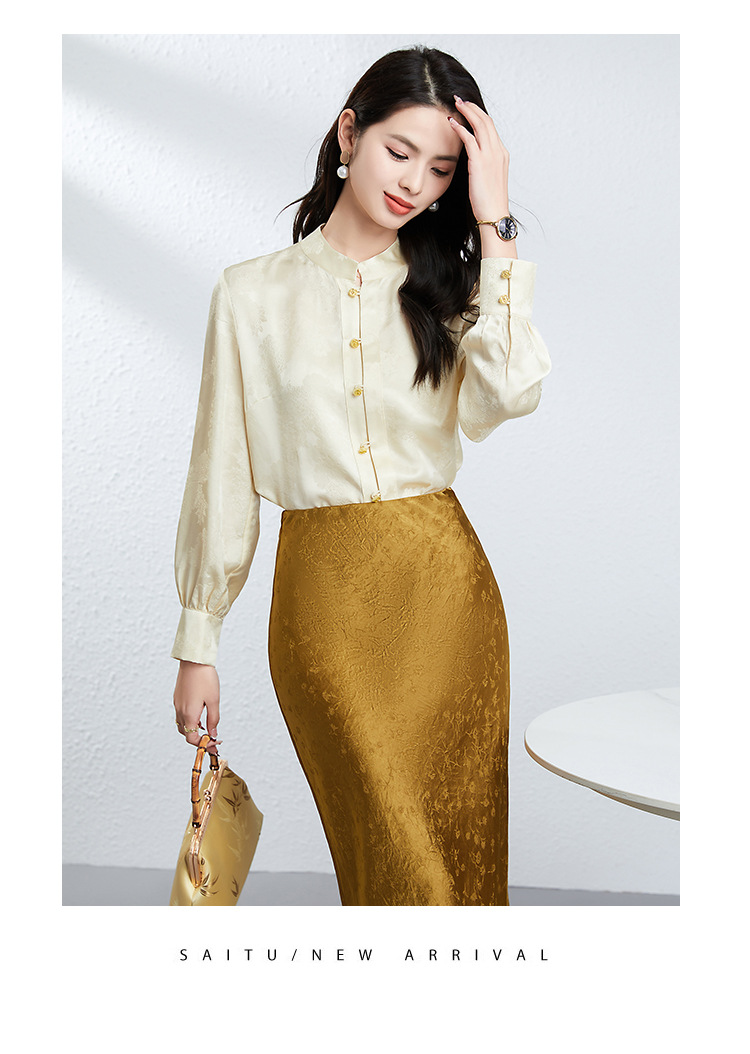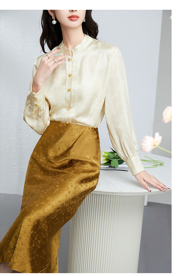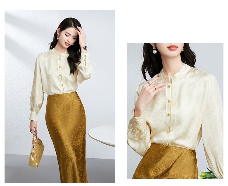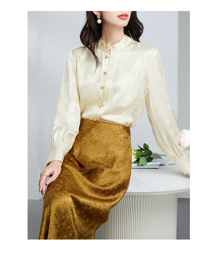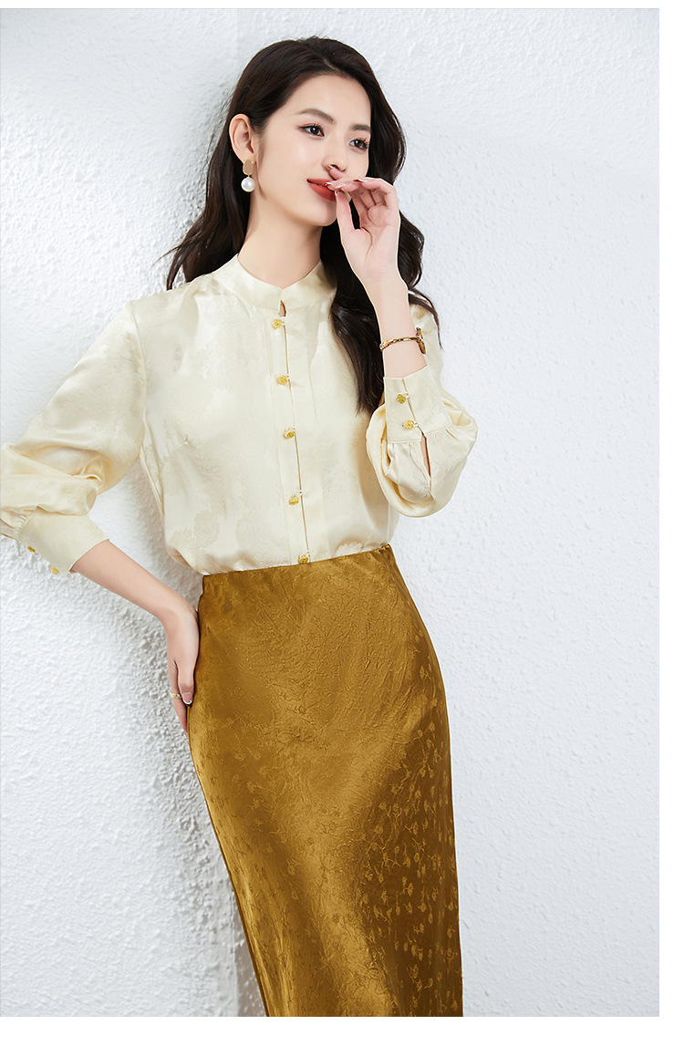 丁摩 真丝桑蚕丝衬衫女春夏长袖女式新中式高级感轻奢气质款上衣5ZF-25008