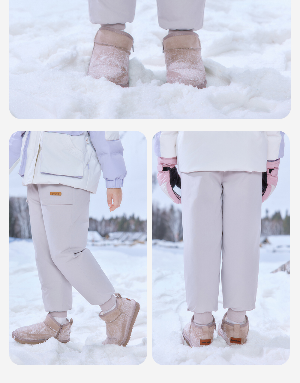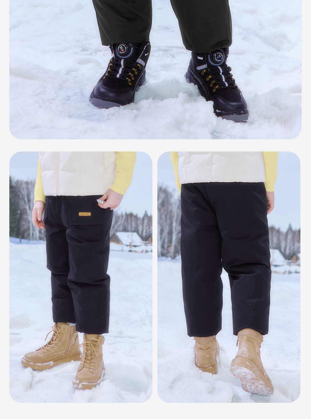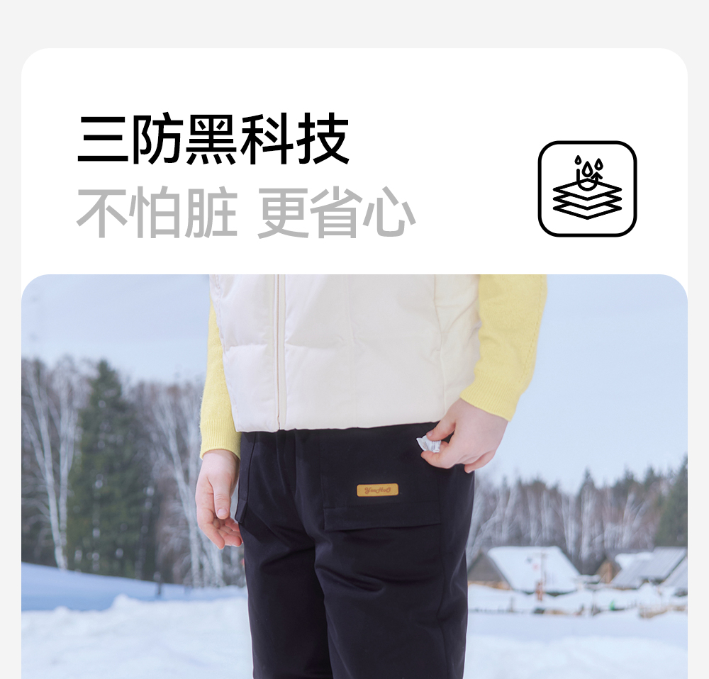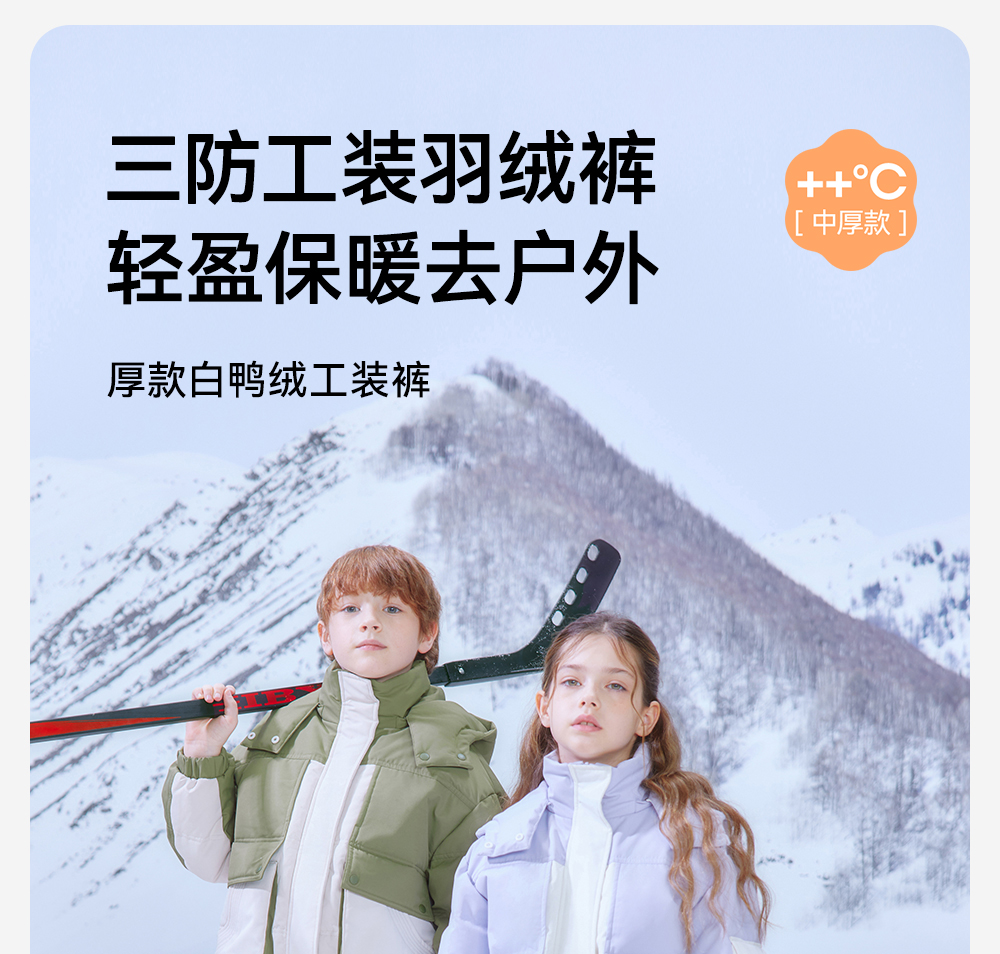 英氏儿童羽绒裤子男三防羽绒工装裤女童加厚保暖秋冬裤子新款超韧绒