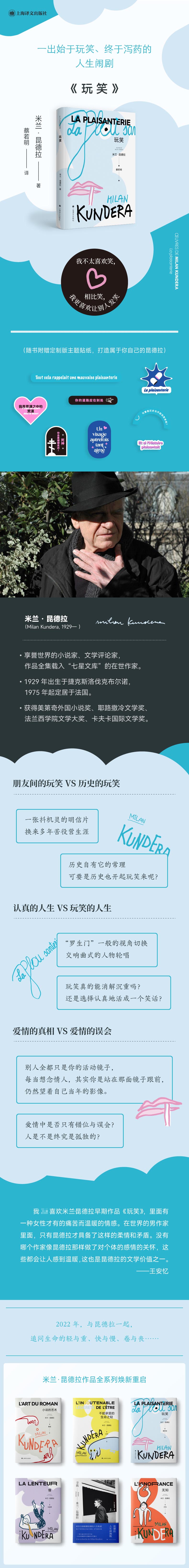 小说《慢》、《身份》和《无知》,随笔《小说的艺术》、《被背叛的遗嘱》、《帷幕》和《相遇》,以及z新小说《庆祝无意义》,原作以法文写成。