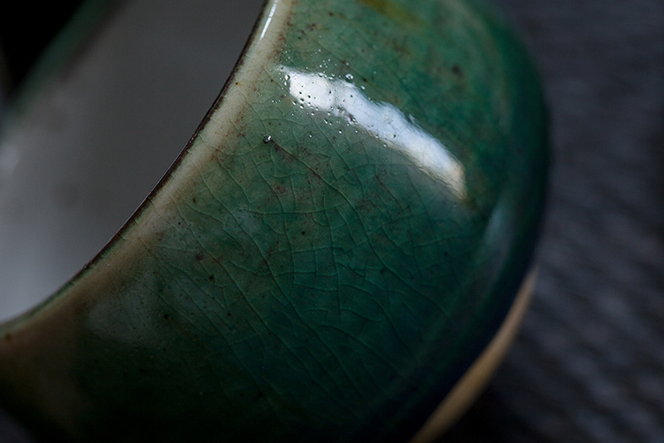 一圈翠绿“结晶”环绕杯底,并向上自由晕染开,