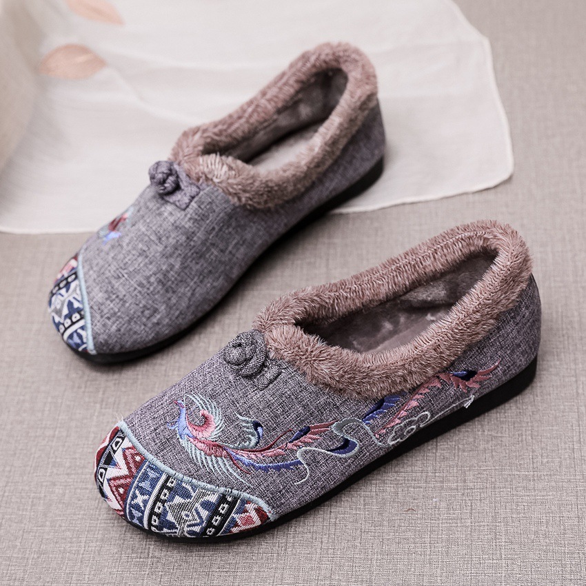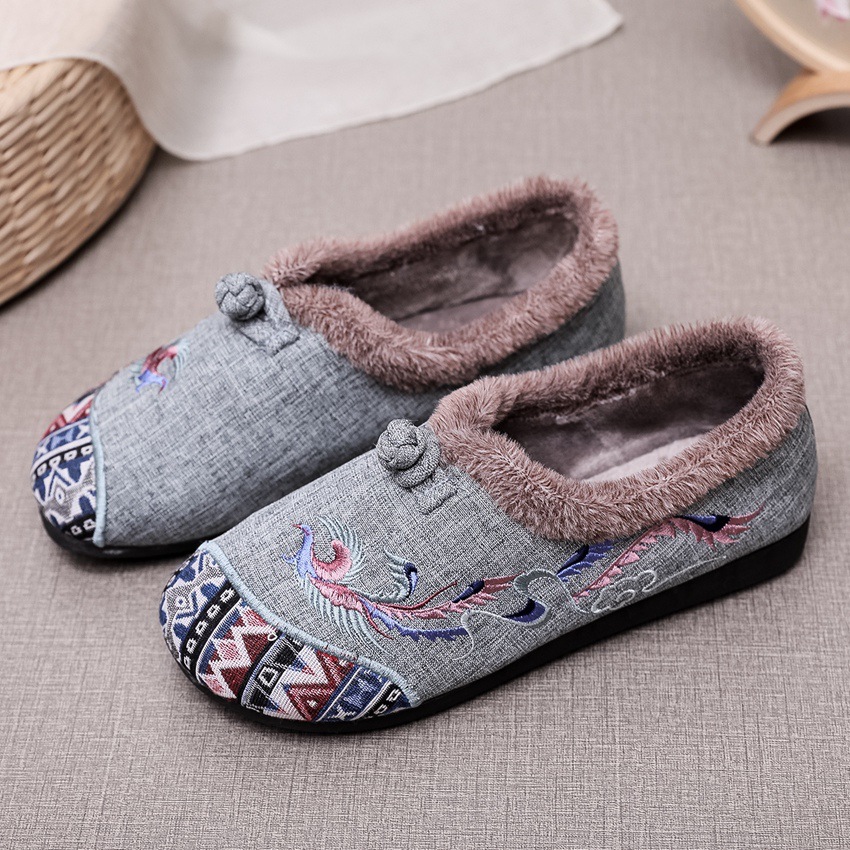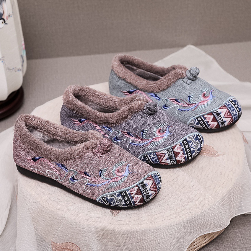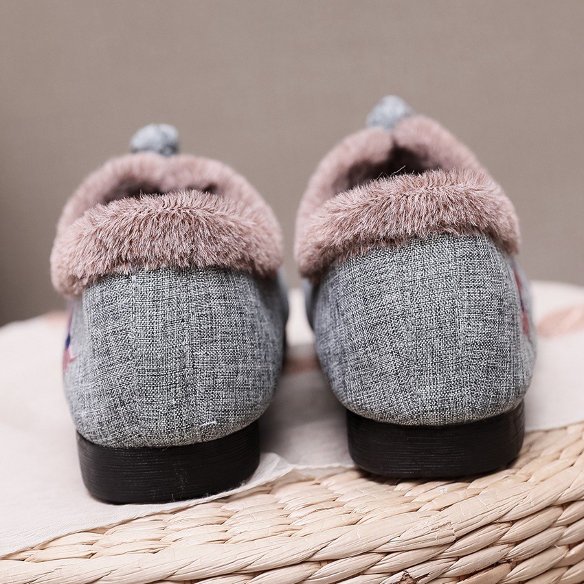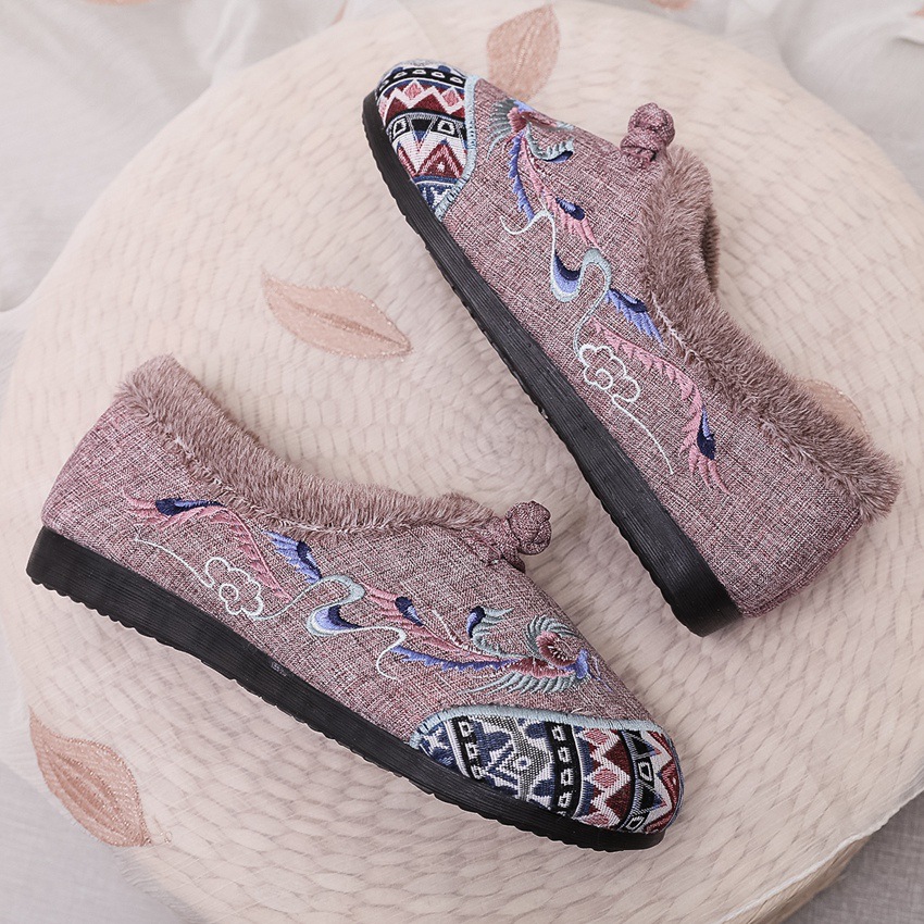 BS-2022-120 秋冬款女棉鞋老北京布鞋毛口防滑平底民族风中年妈妈绣花鞋女加绒