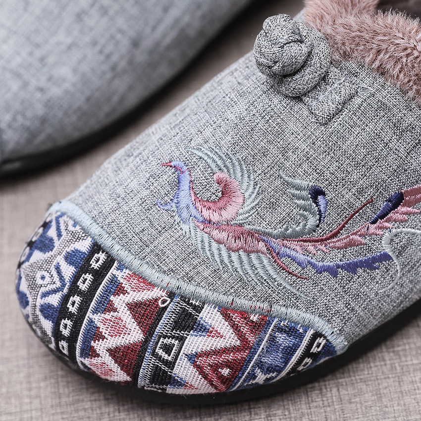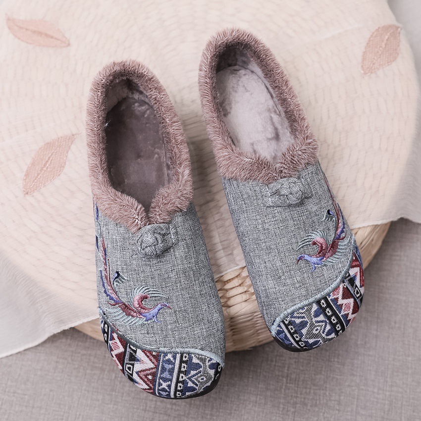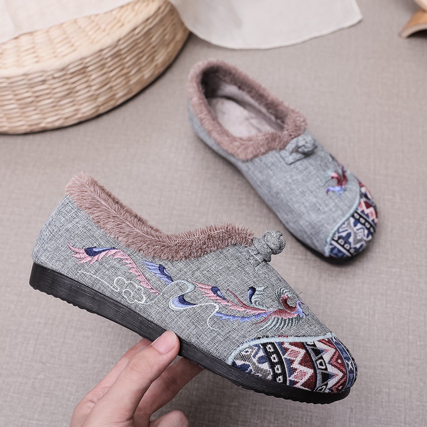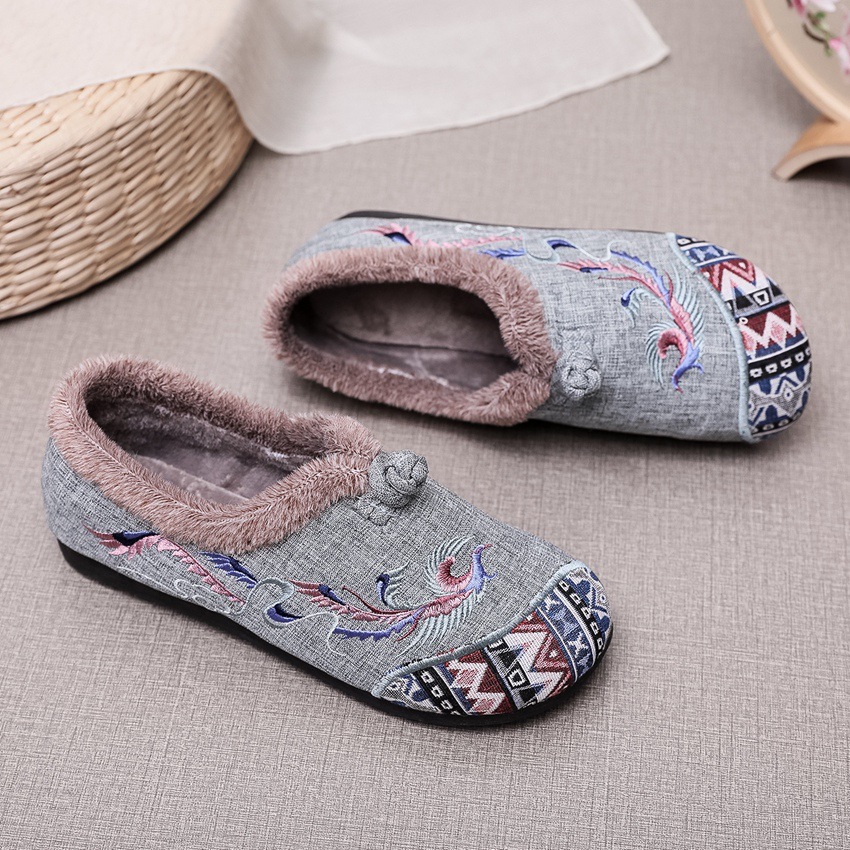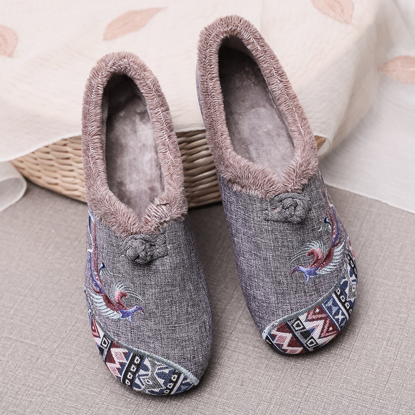 BS-2022-120 秋冬款女棉鞋老北京布鞋毛口防滑平底民族风中年妈妈绣花鞋女加绒