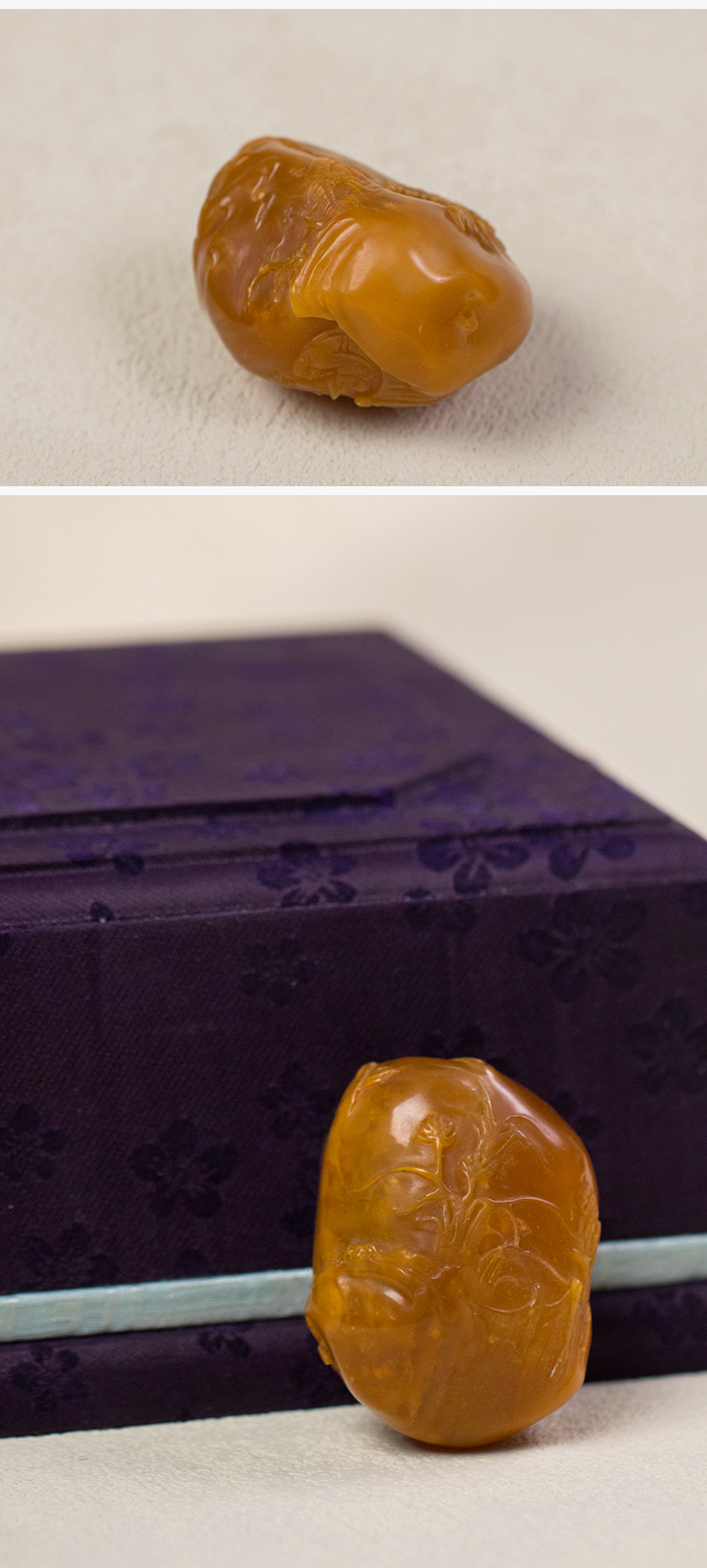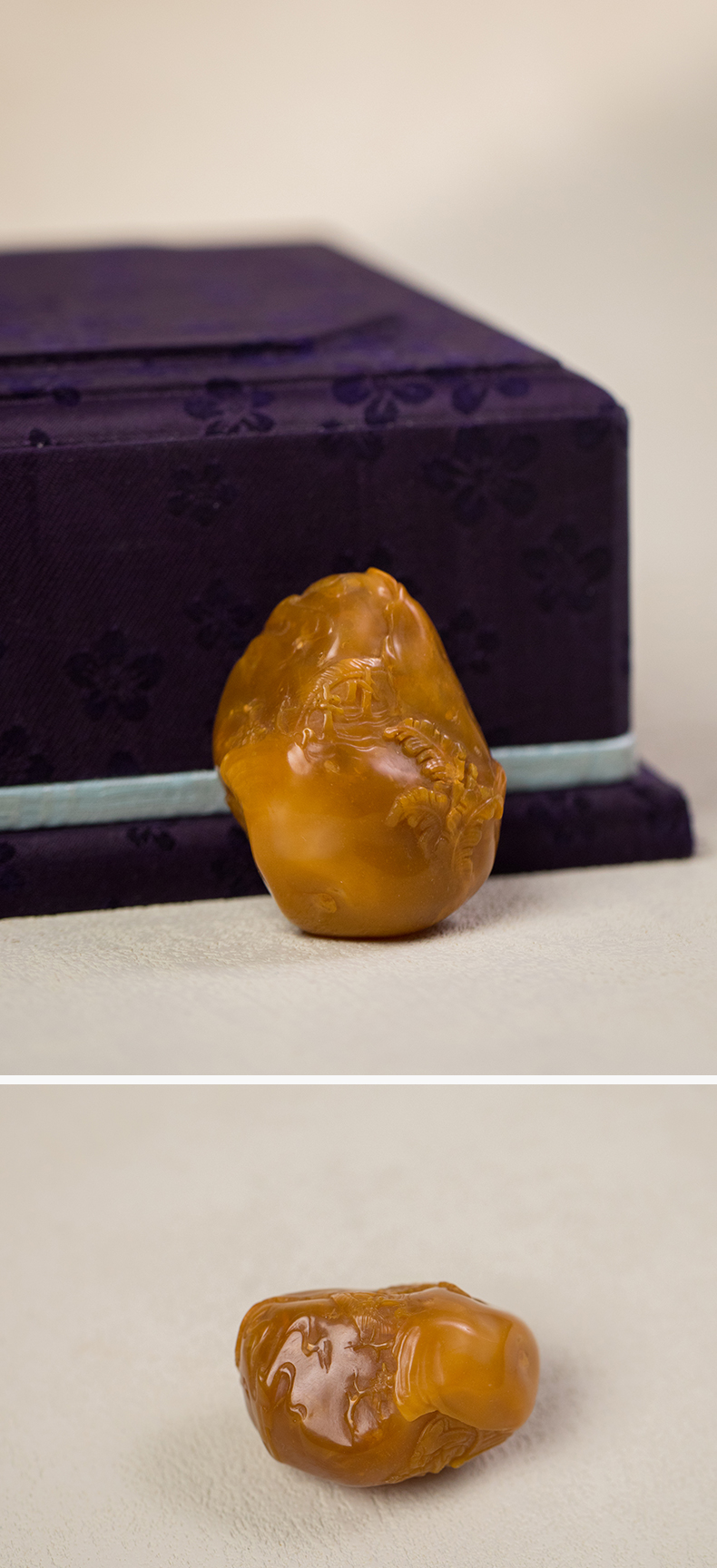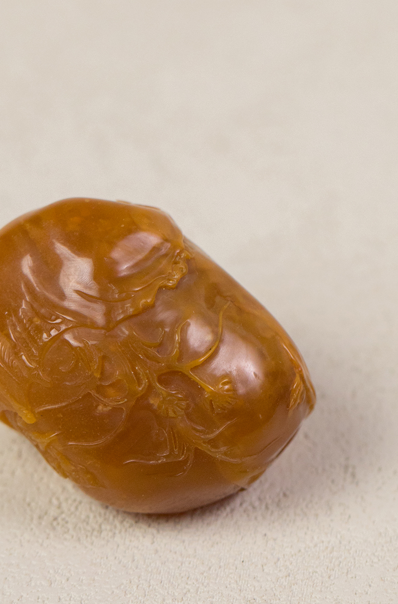 清 田黄石雕兰花把件