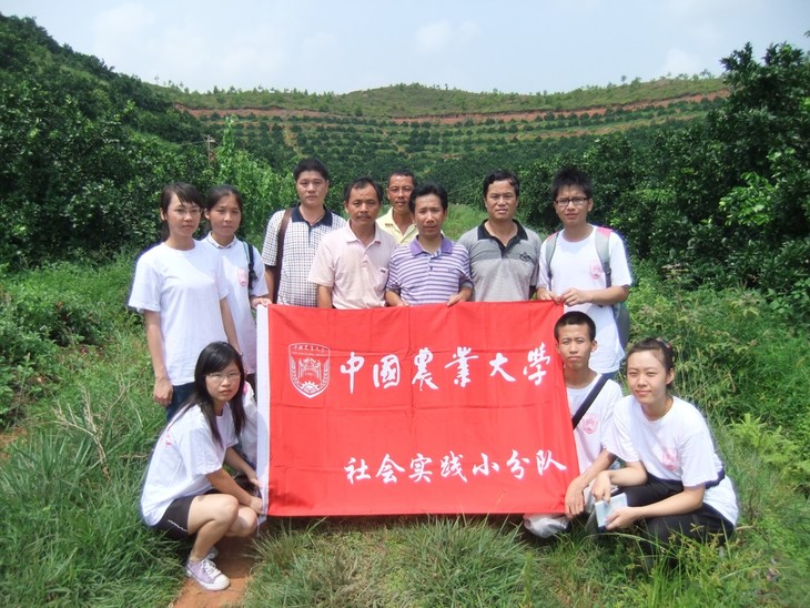 中国农业大学到老韩家的脐橙园做社会实践,中排左三为老韩