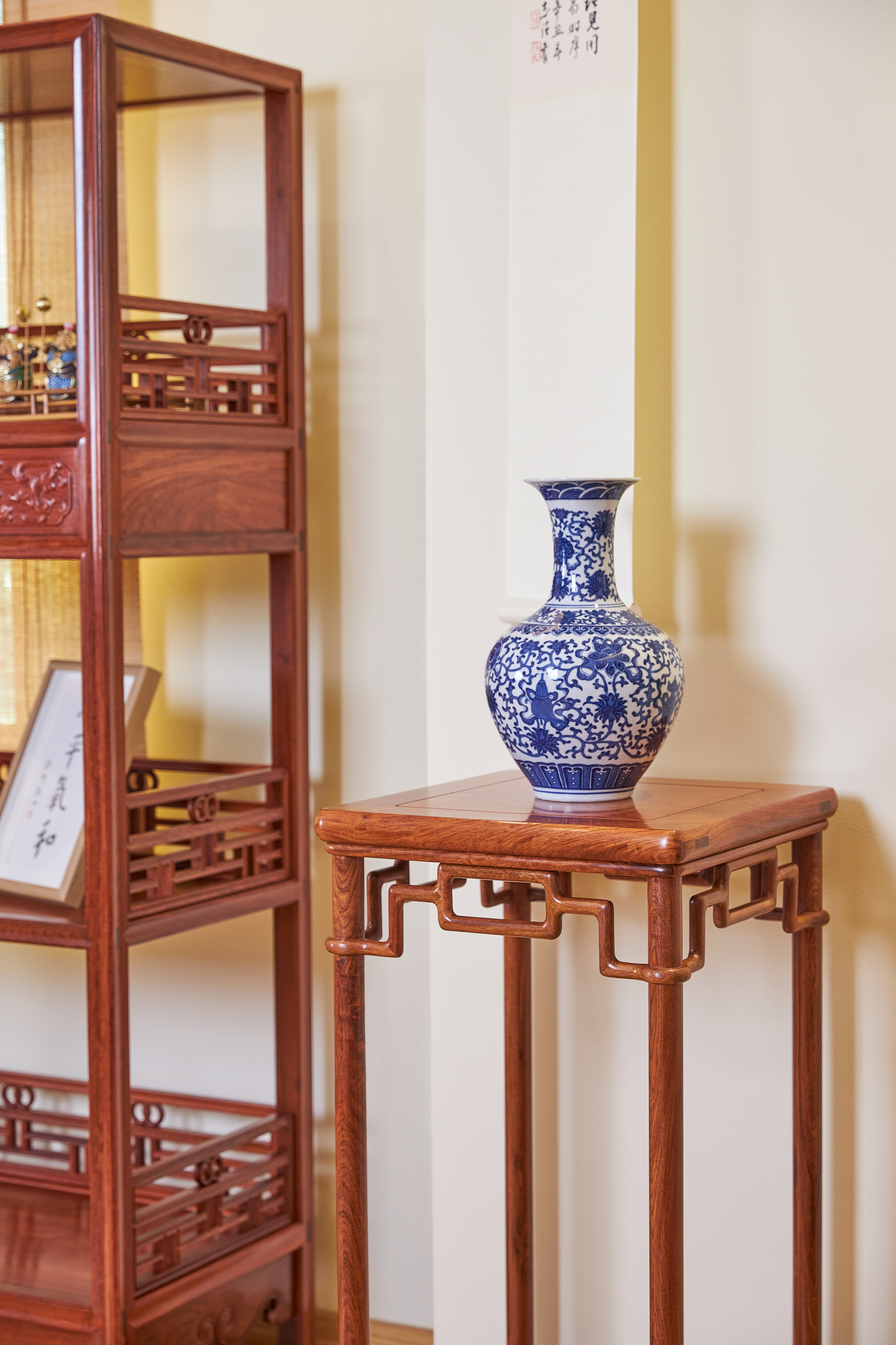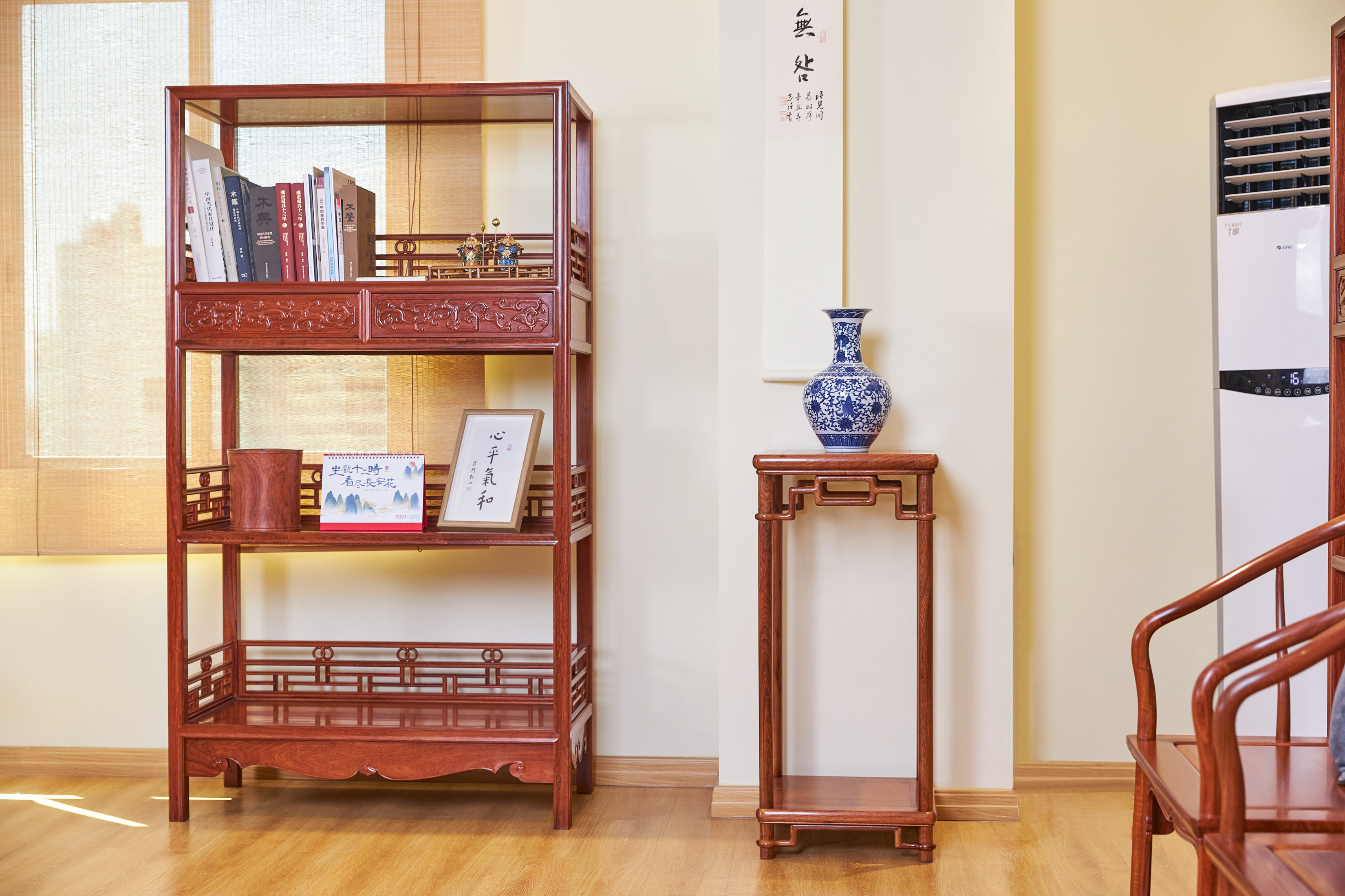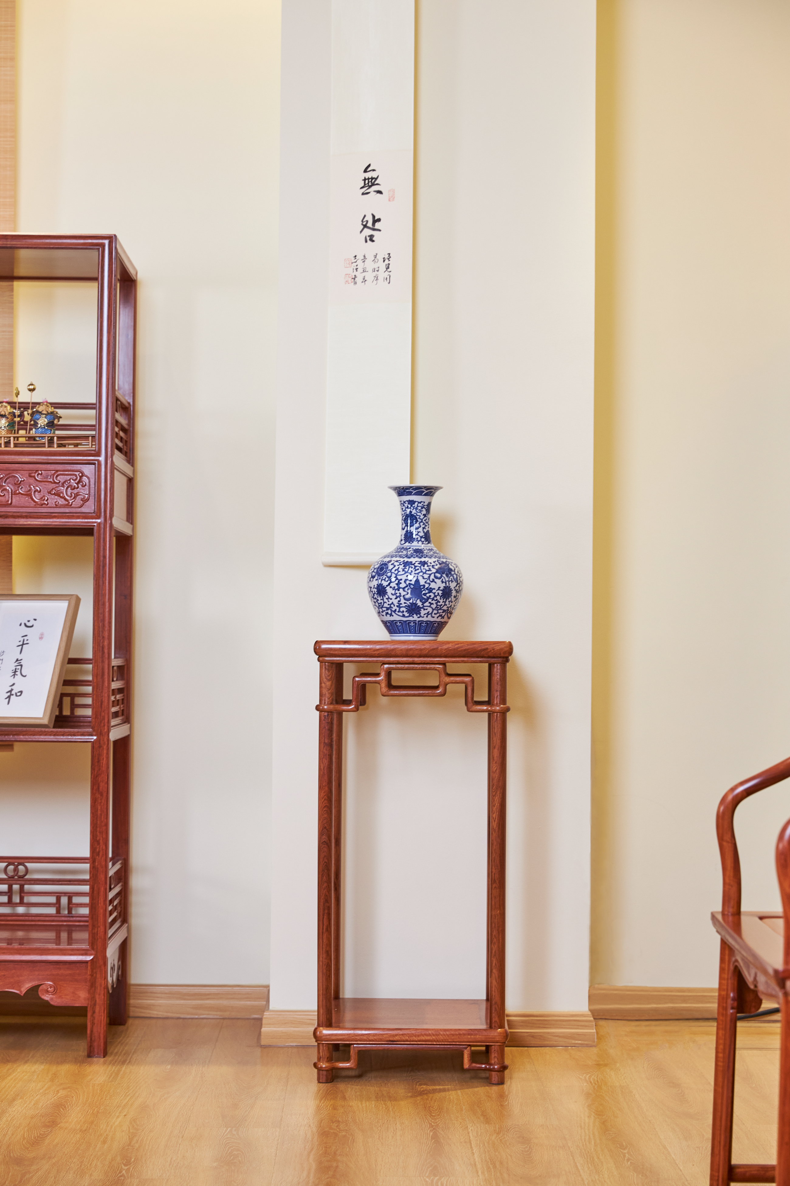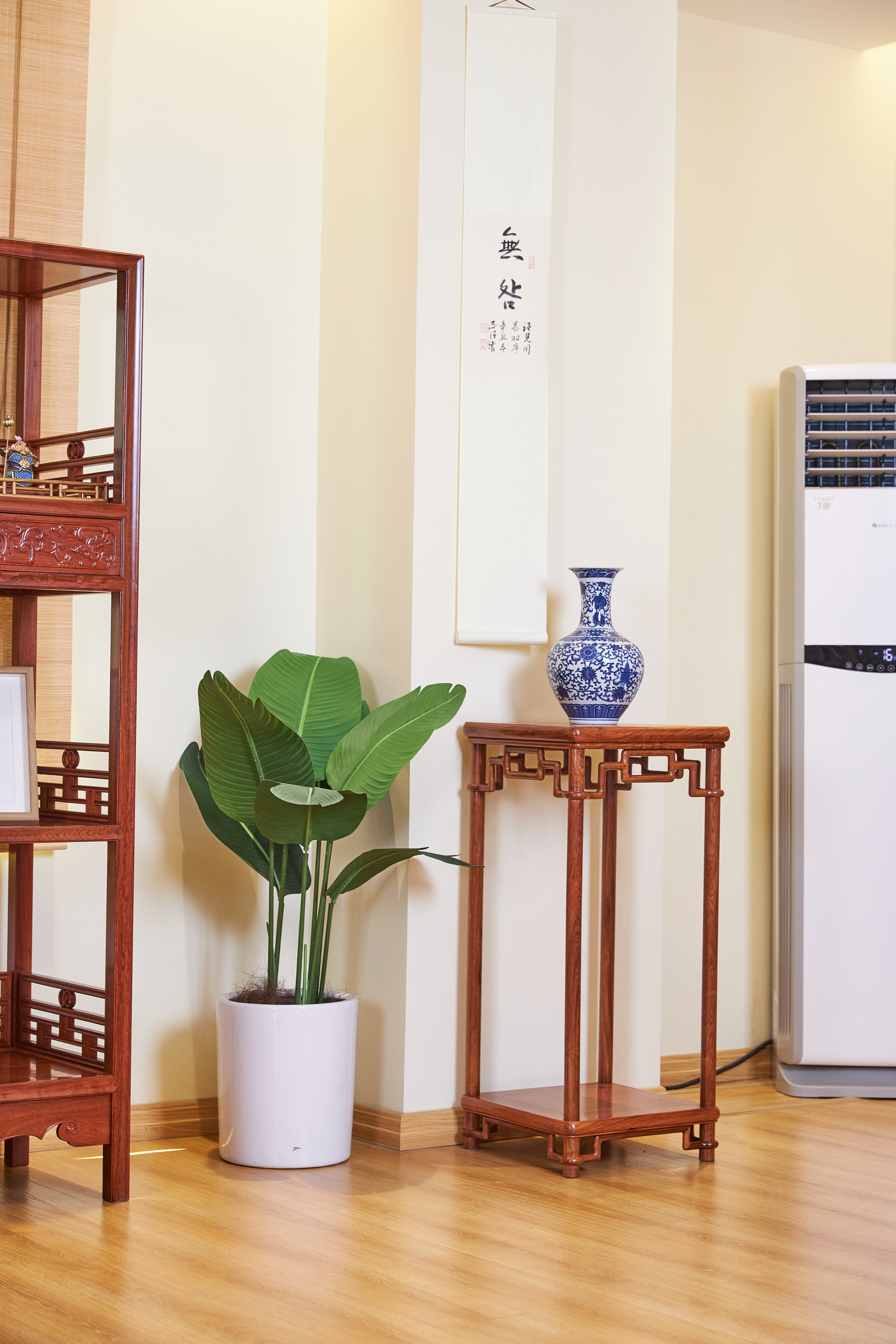 花架又称花几,陈设与厅堂、书斋或寝室的各个角落,及条案、电视柜两侧,可以搭配盆栽、花卉,美化空间。