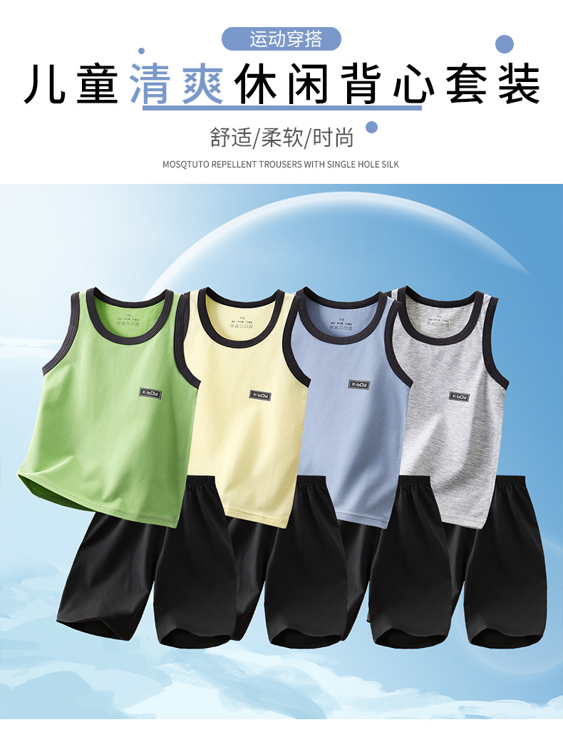 【儿童清爽休闲背心套装~】儿童背心套装 纯棉青少年中大童 学生背心 男童女童夏季无袖背心套装-QQ
