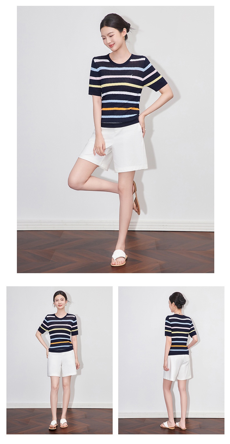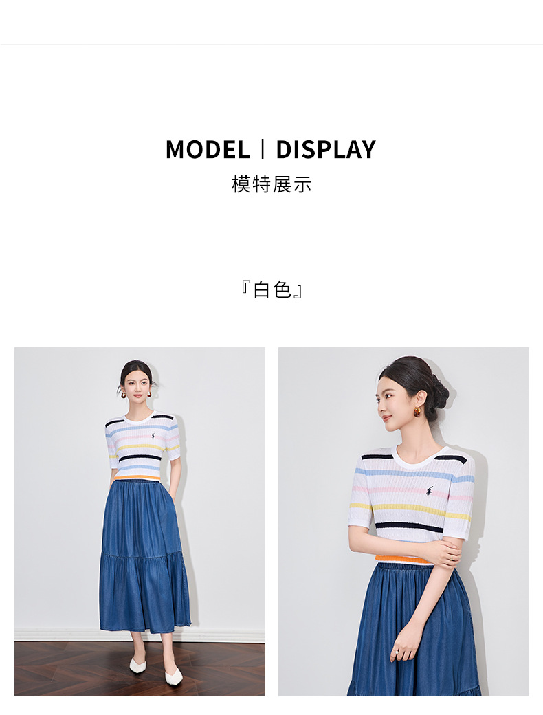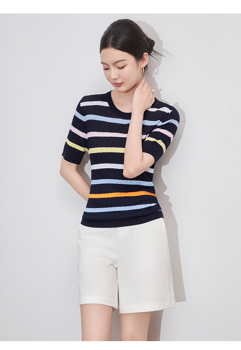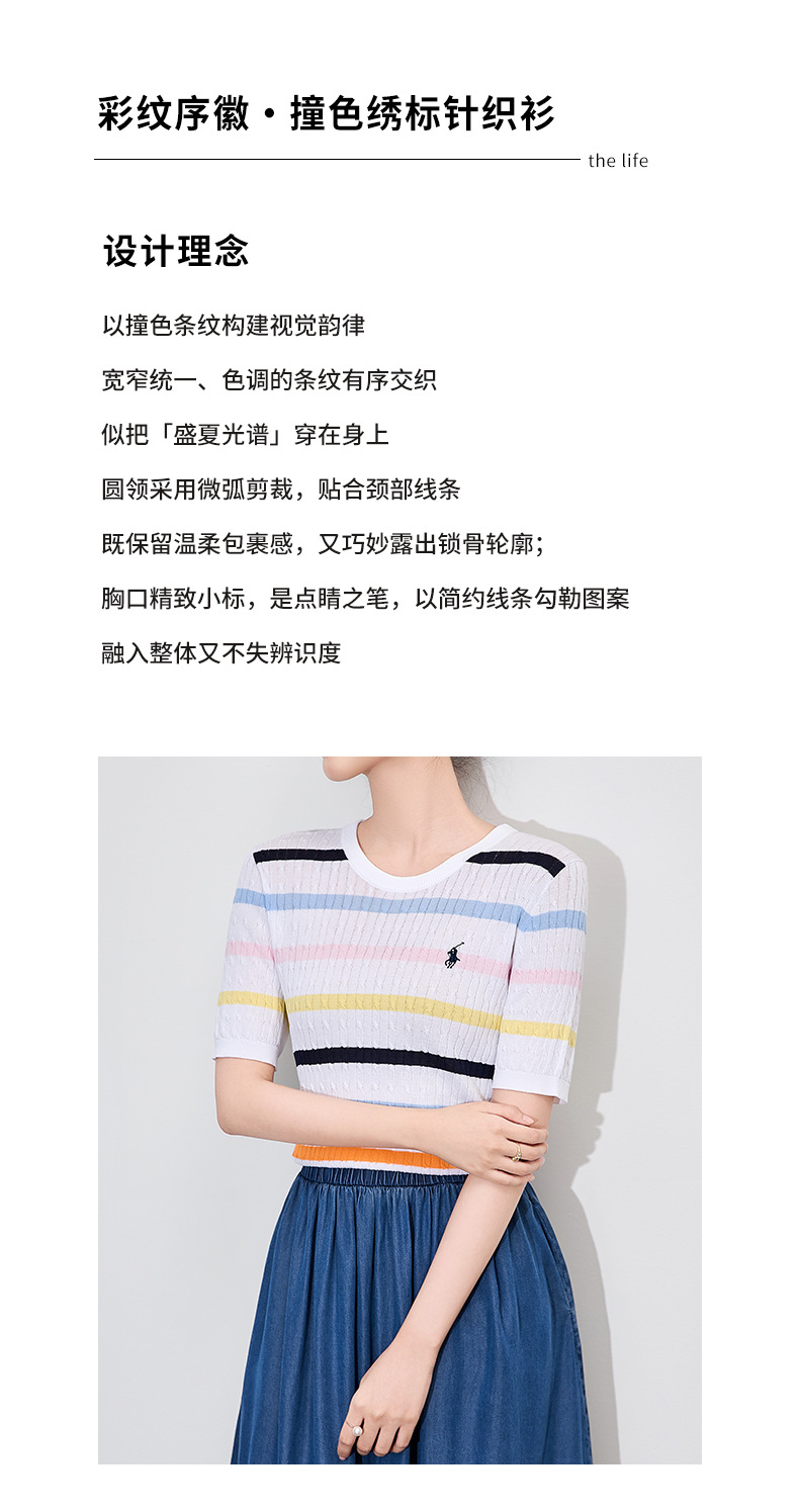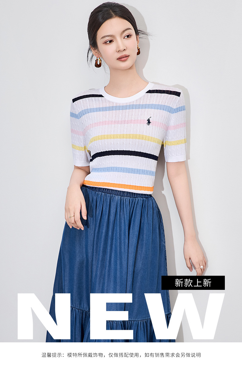 「高货wl」全新升级【铂金会员220/天猫299/差价79】(04100)洛诗琳彩虹条针织T恤2025夏季立体绞花定染修身短袖上衣