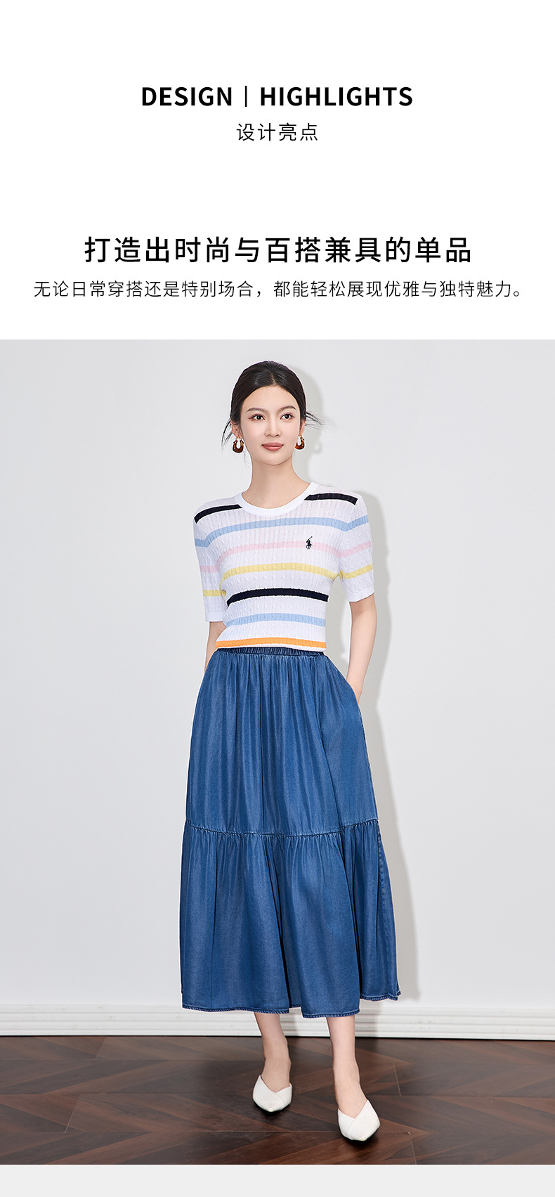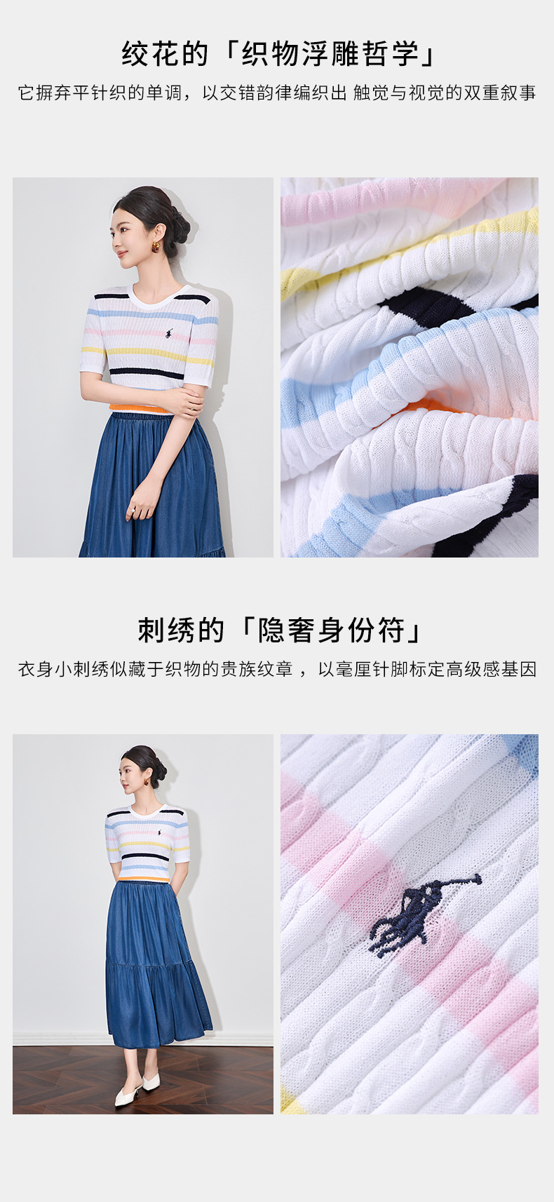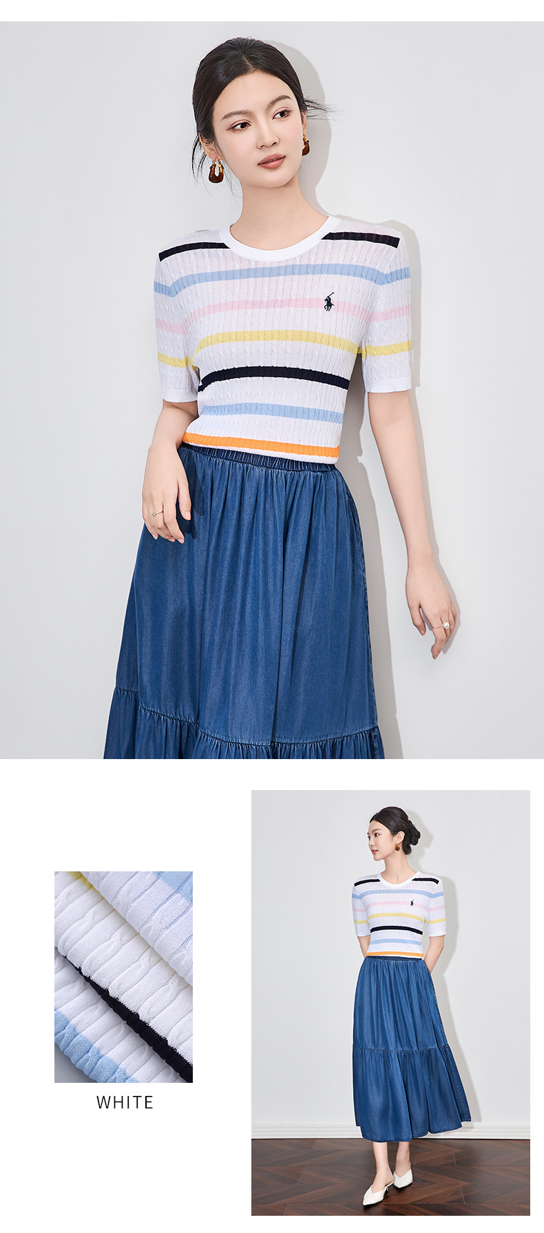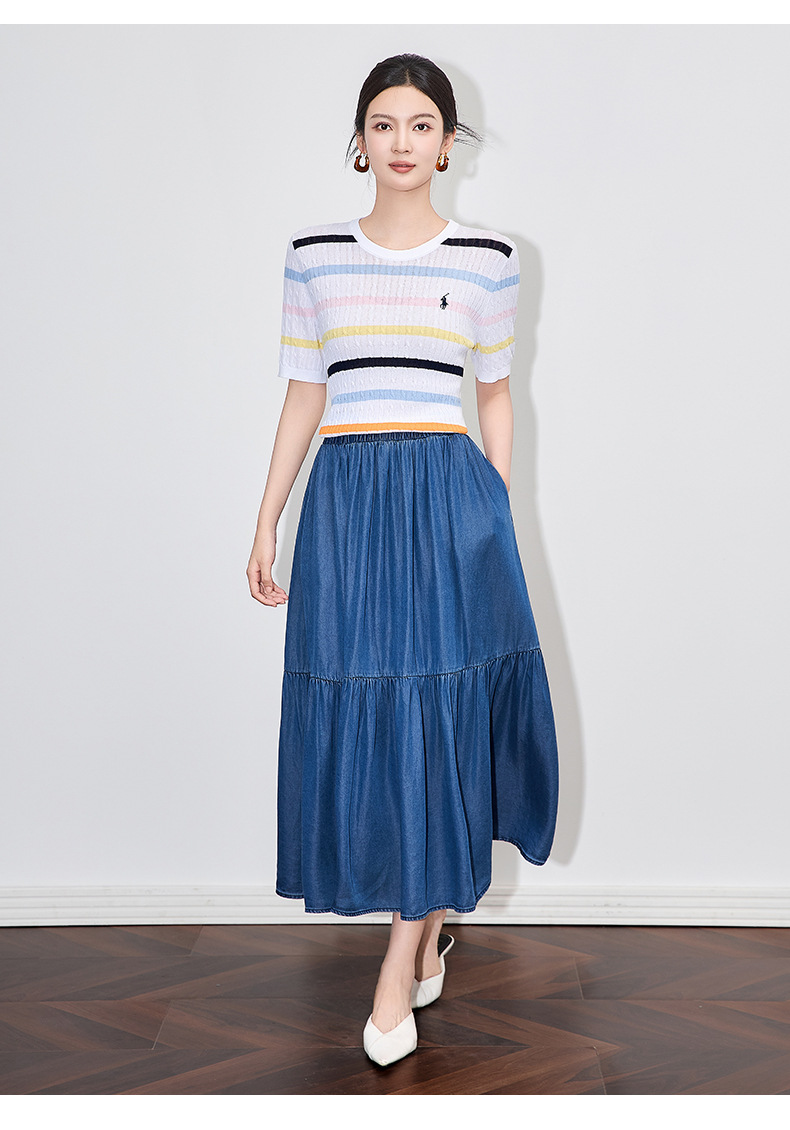 「高货wl」全新升级【铂金会员220/天猫299/差价79】(04100)洛诗琳彩虹条针织T恤2025夏季立体绞花定染修身短袖上衣