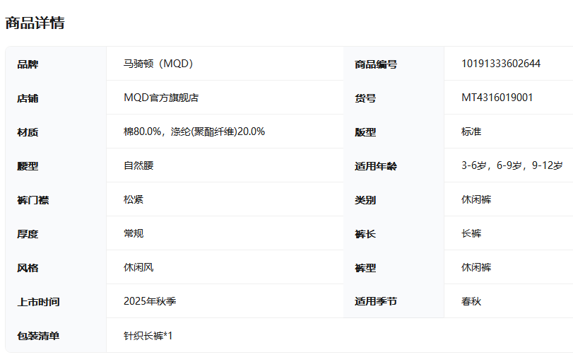 【秒】【特】【MQD】男女童基础百搭裤子长裤