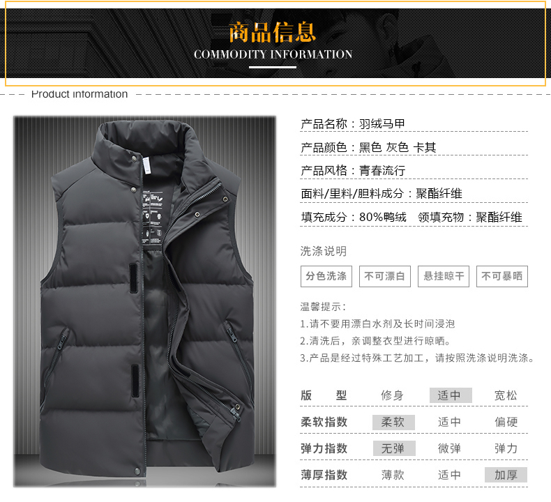 【新款DWN】大依优型大码立领羽绒马甲男士马夹加肥加大码坎肩加厚加绒保暖上衣