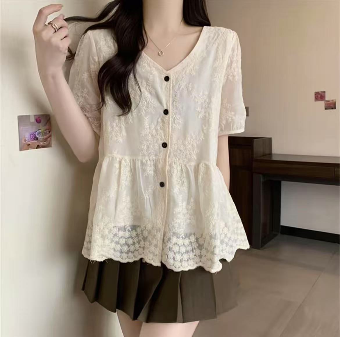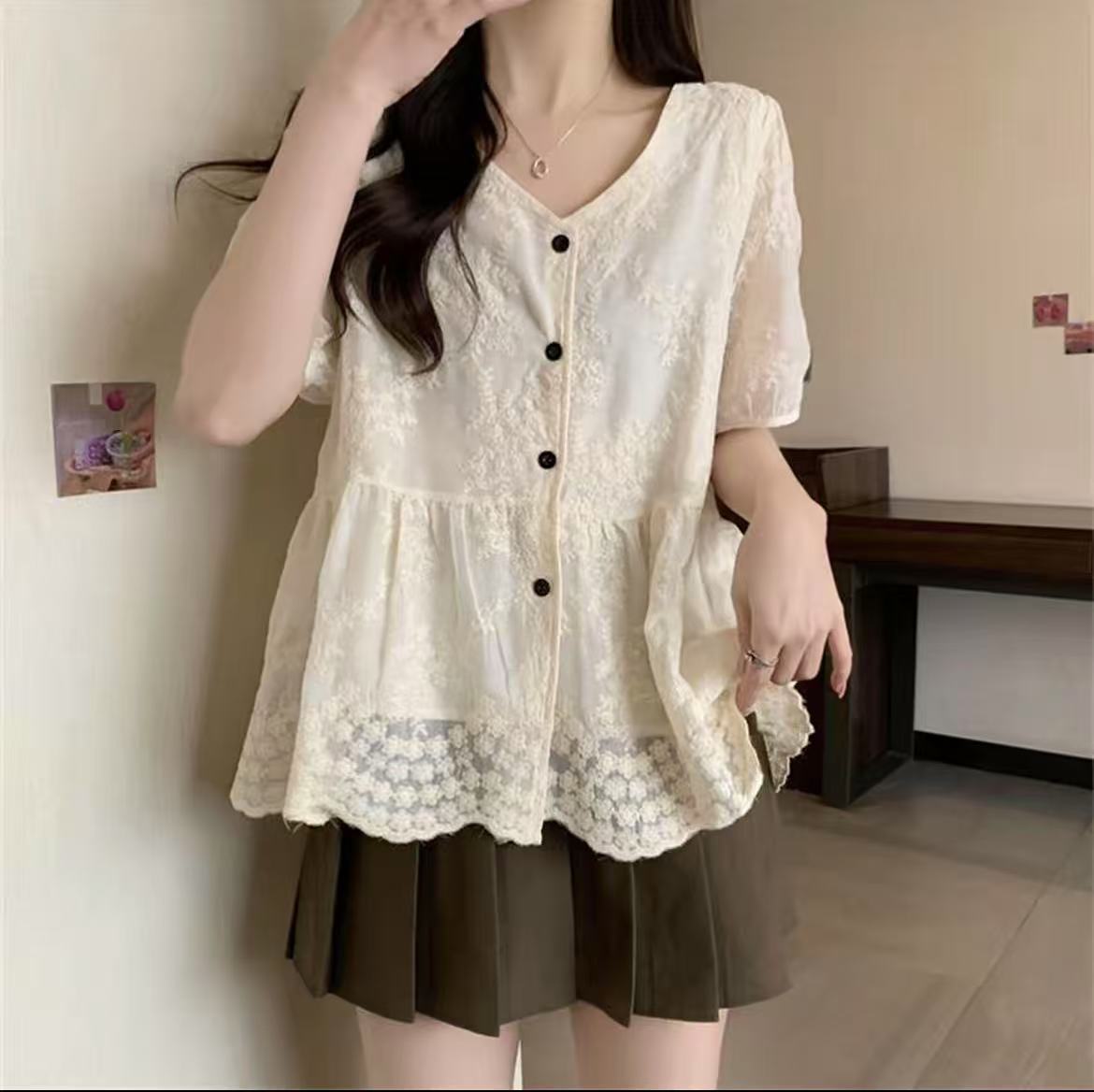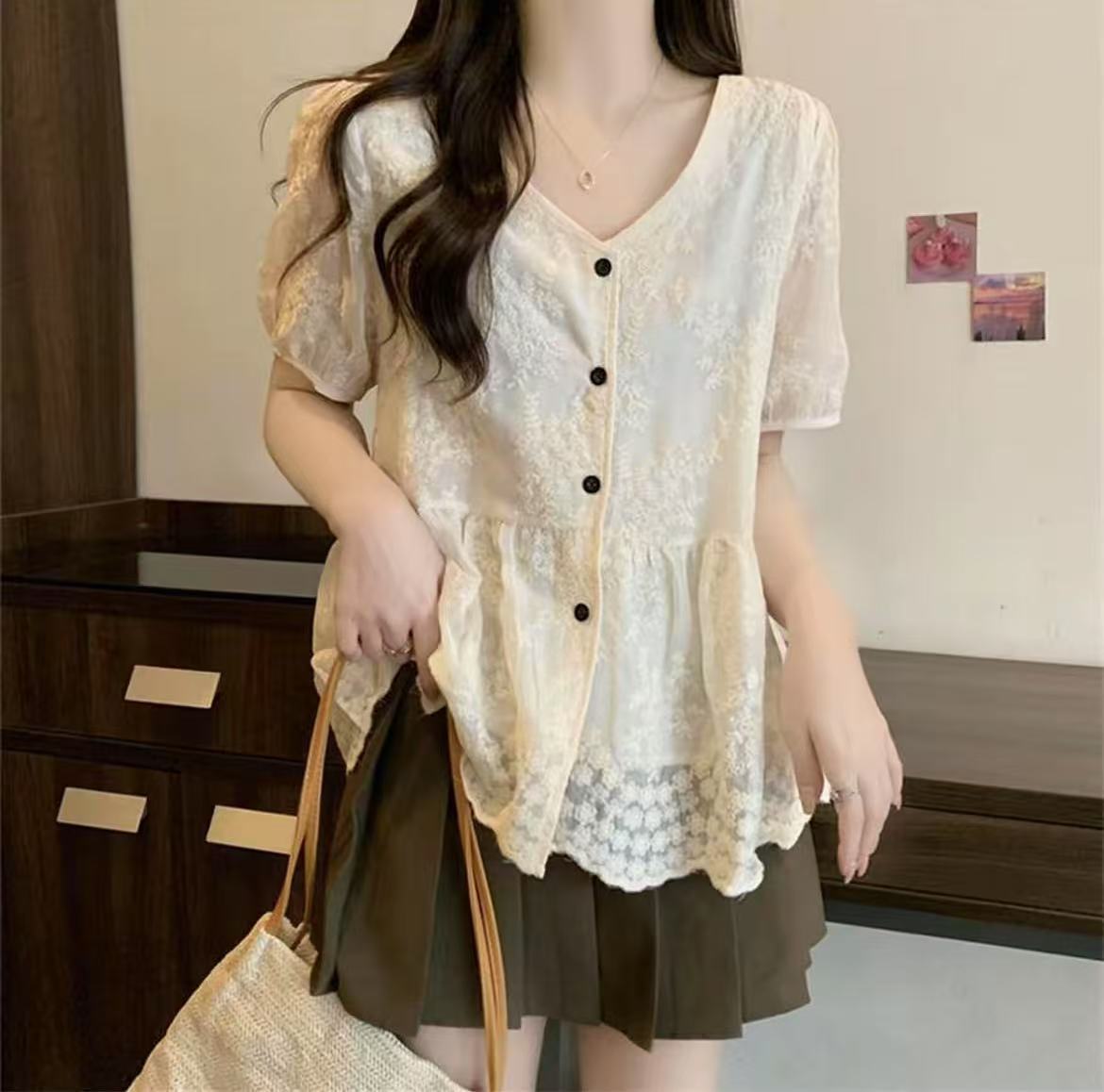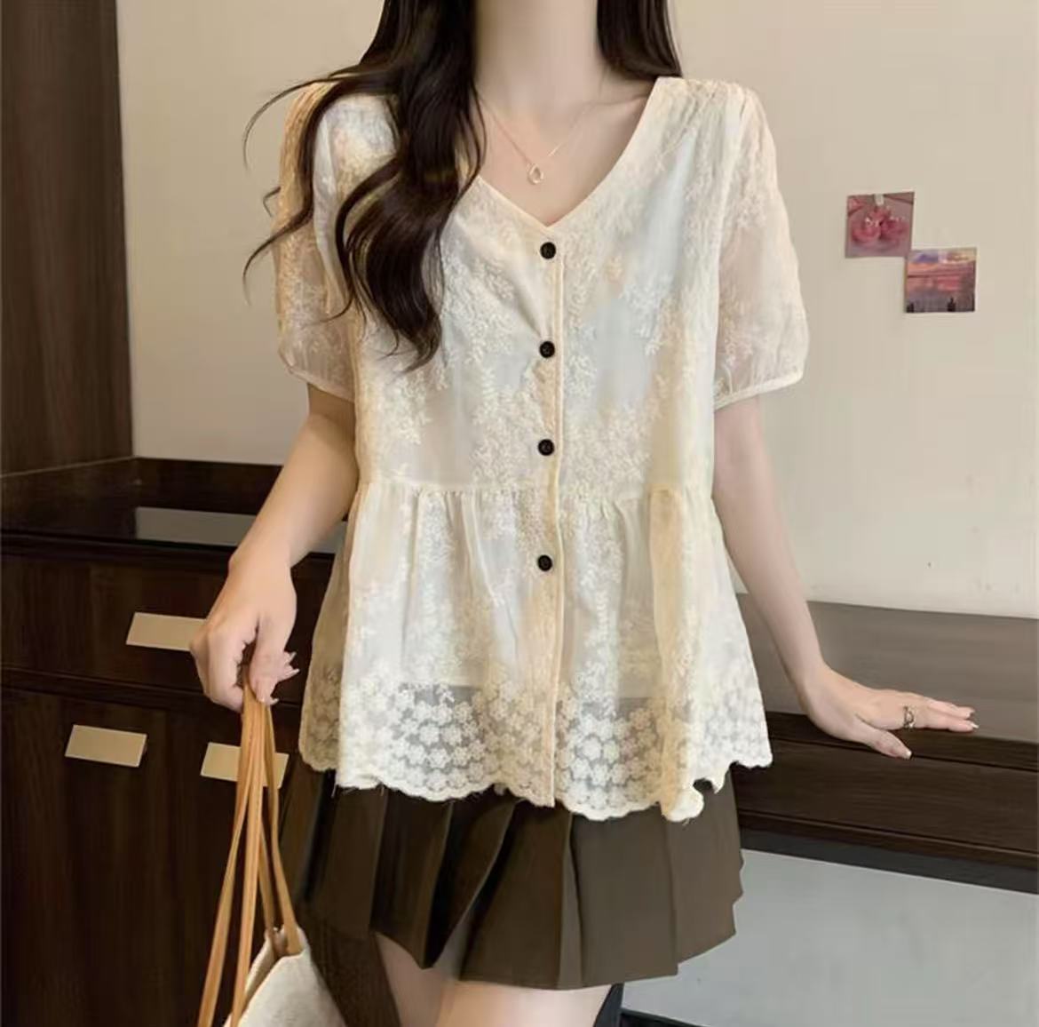 【新品推荐】TT重工工艺刺绣花朵宽松短袖小衫-喜出