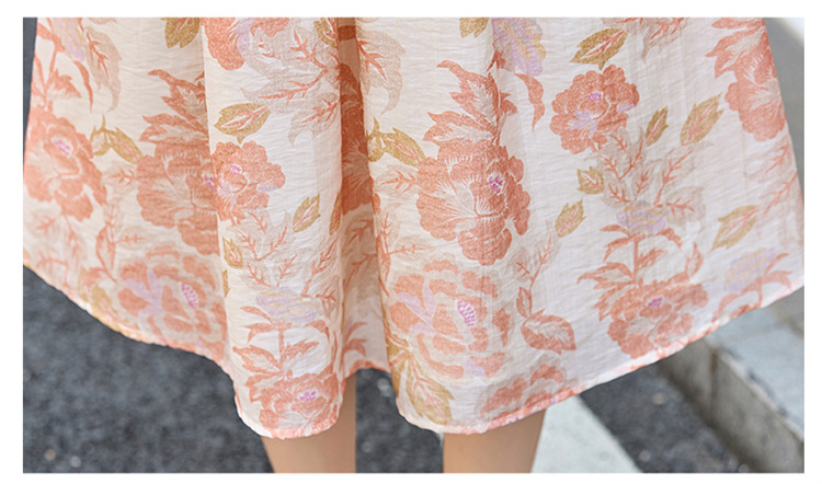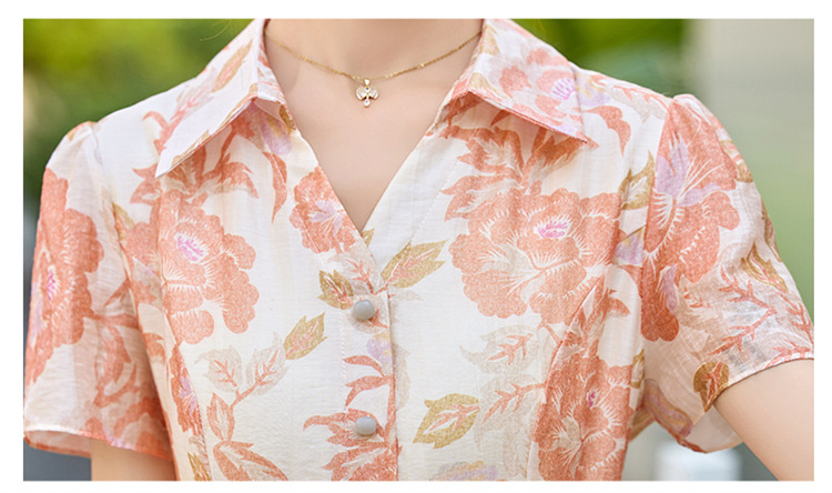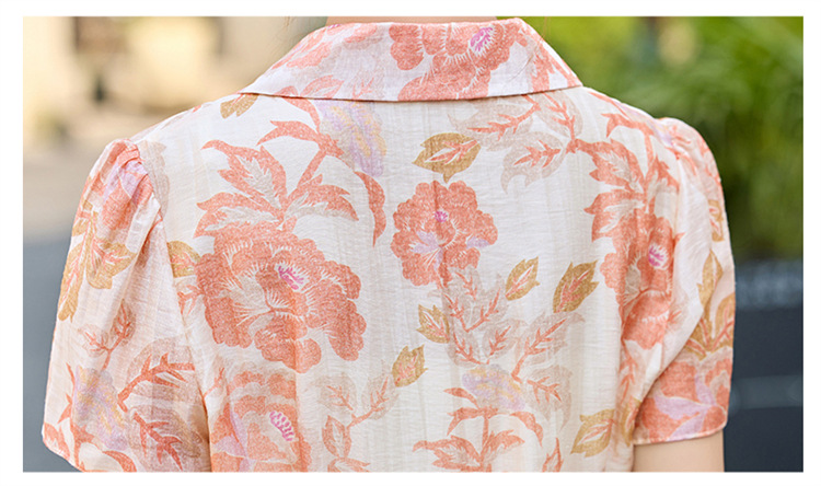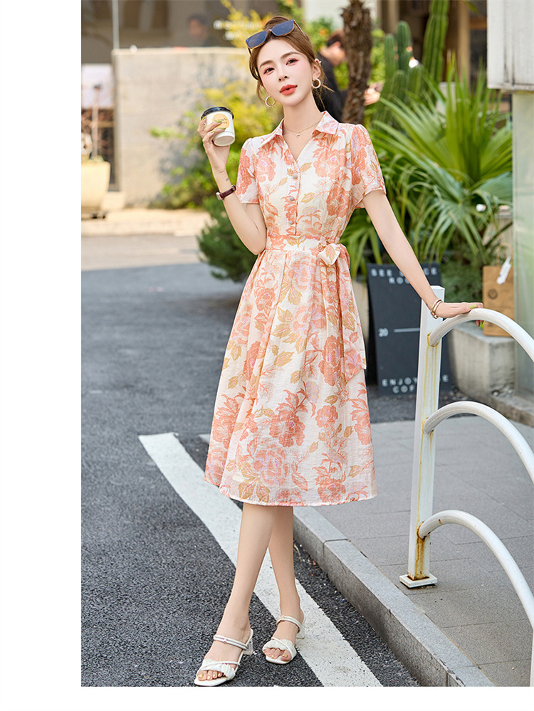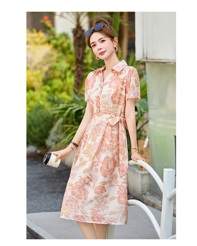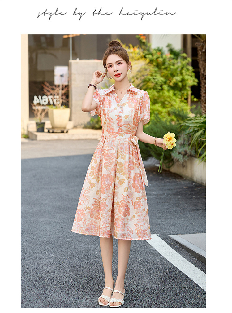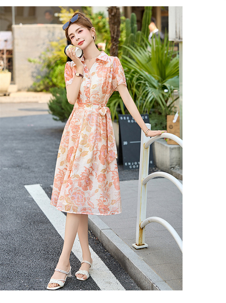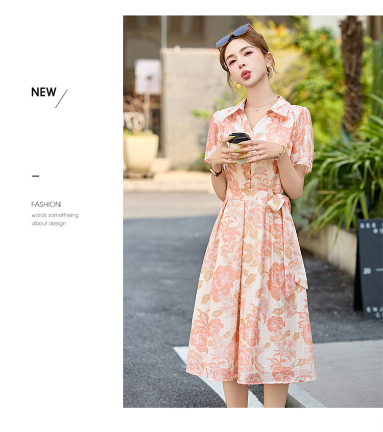 【预售3天】优雅气质收腰显瘦大花连衣裙短袖翻领韩版中长裙XXL3102