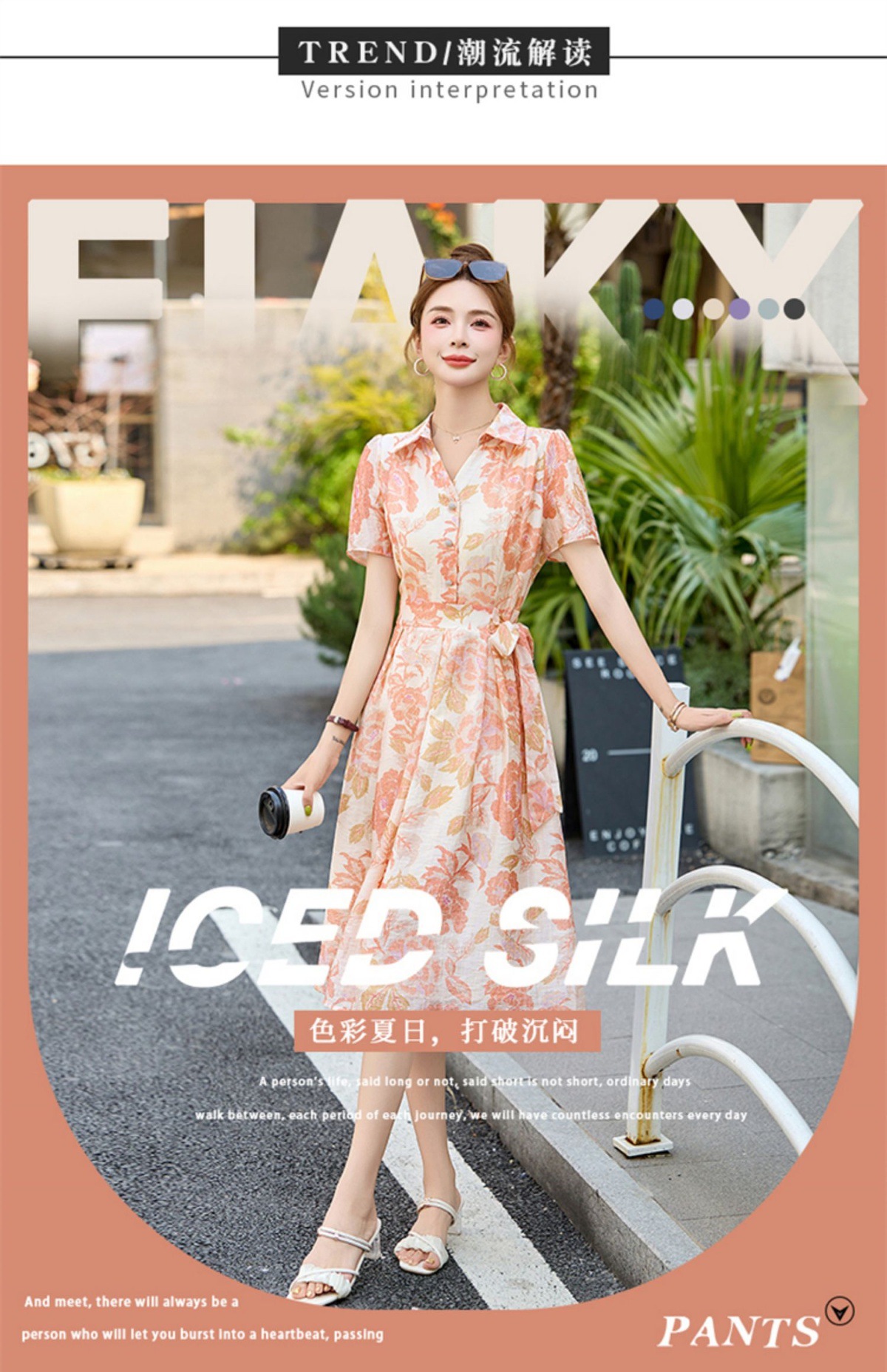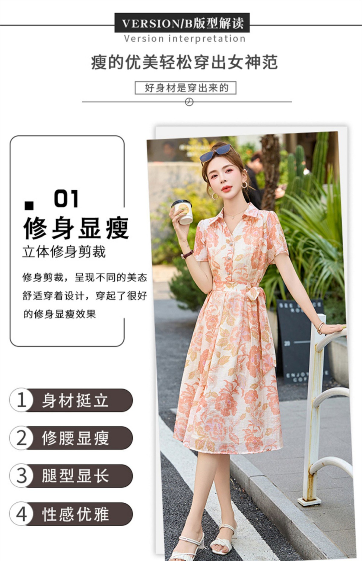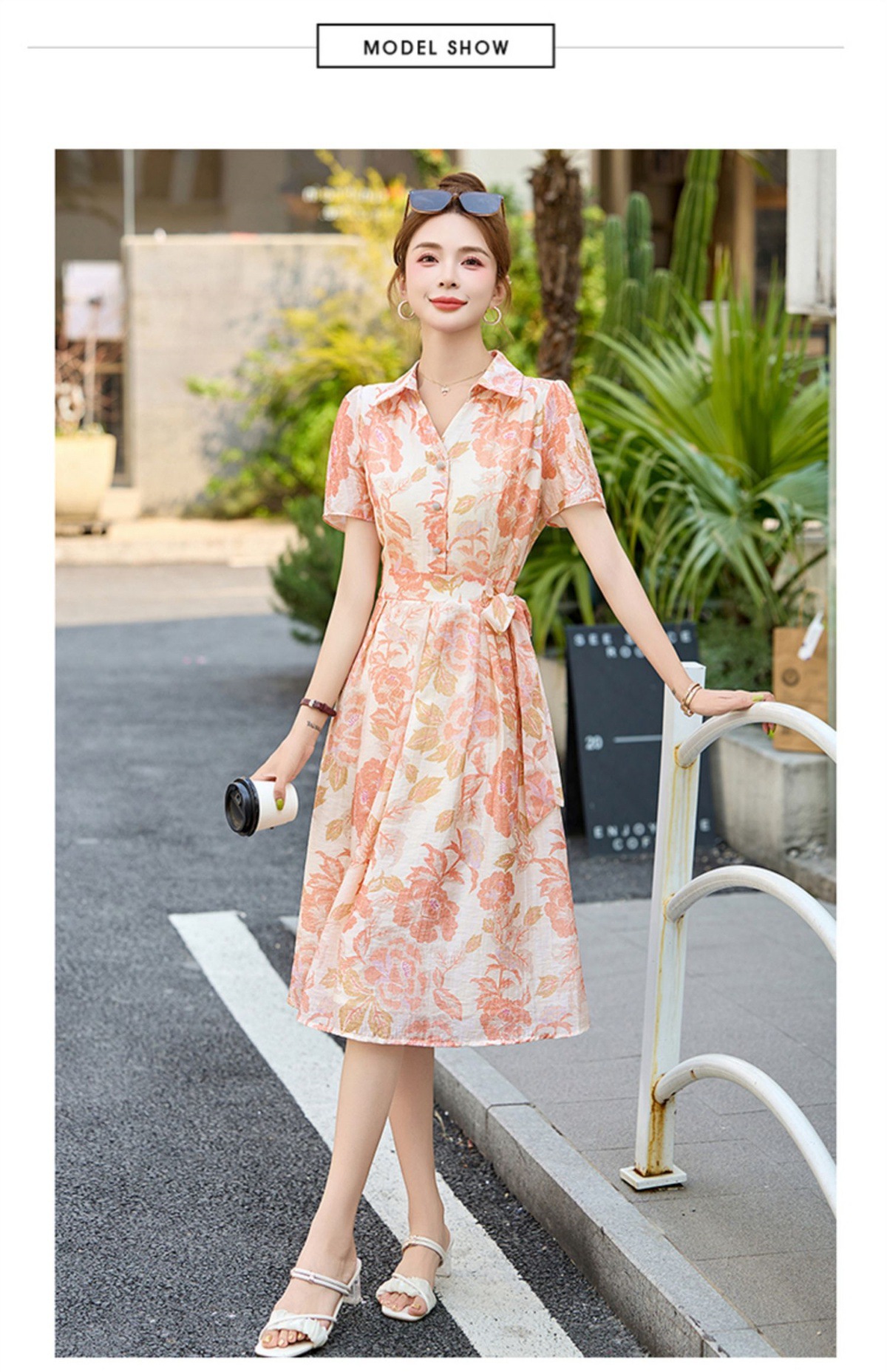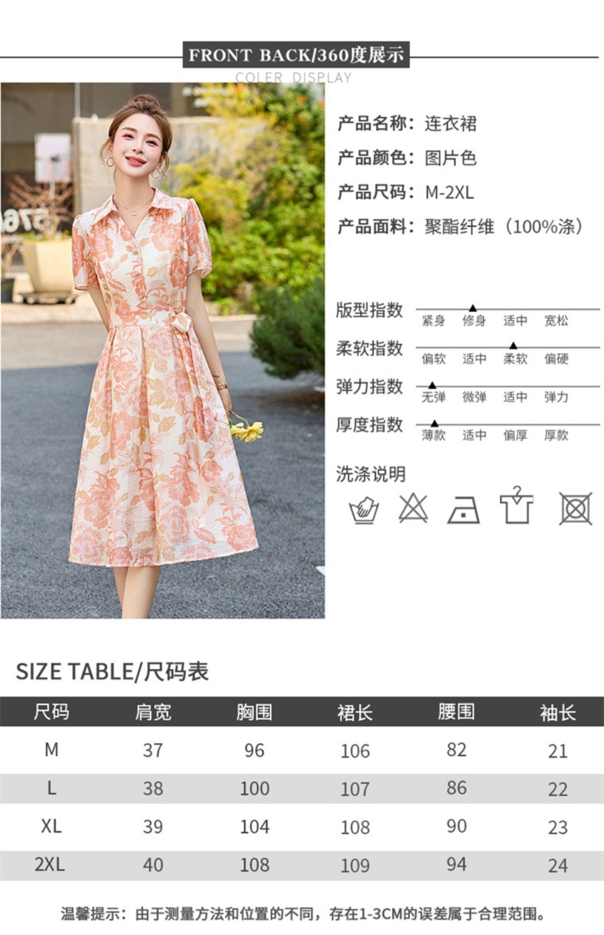 【预售3天】优雅气质收腰显瘦大花连衣裙短袖翻领韩版中长裙XXL3102