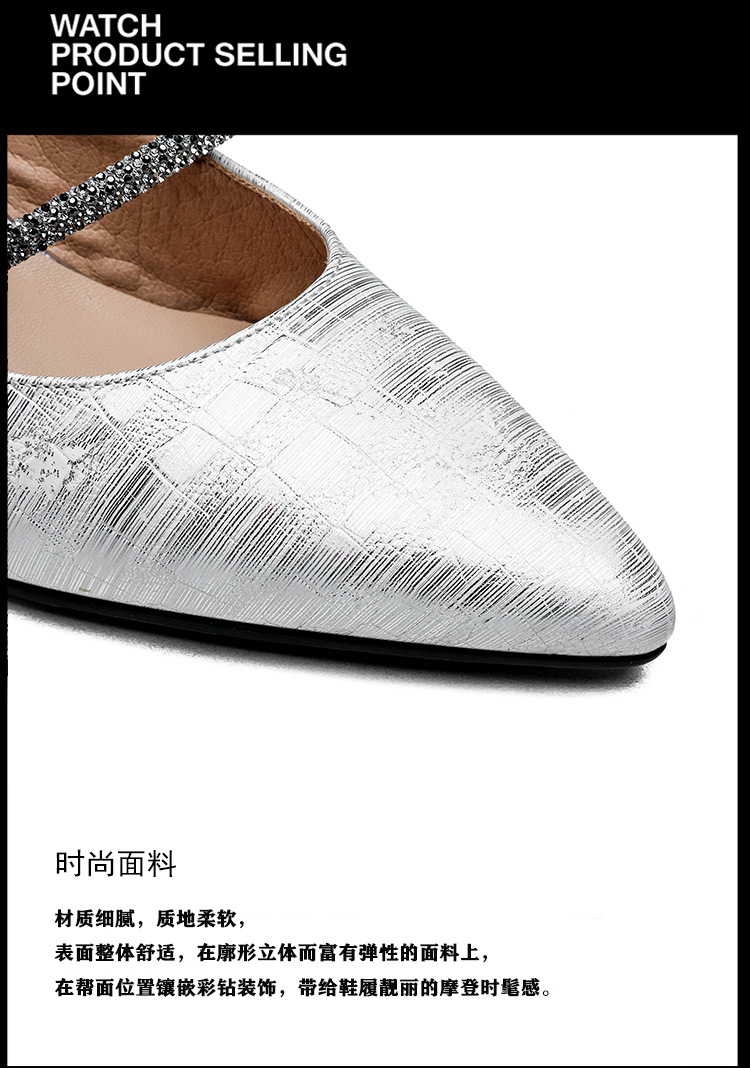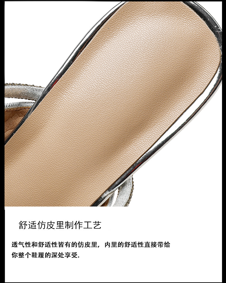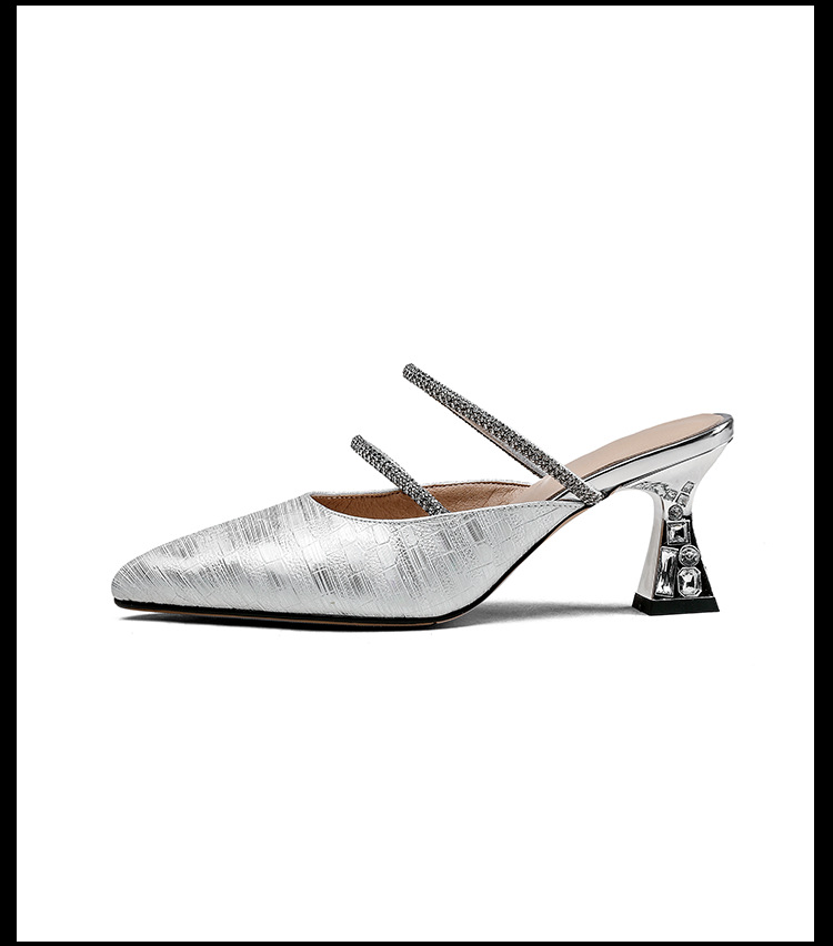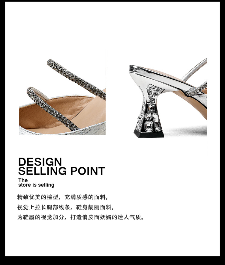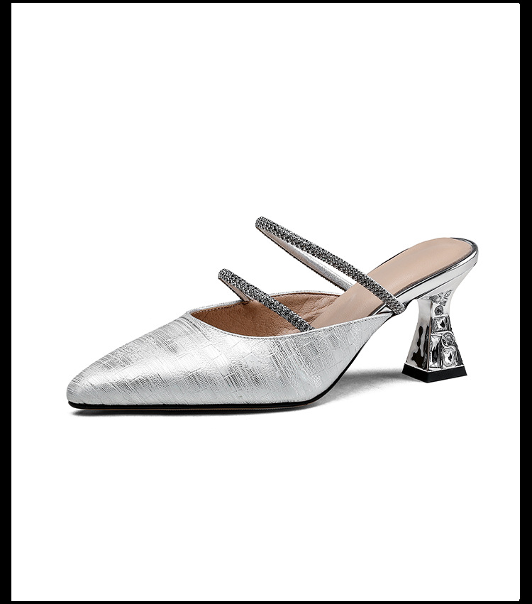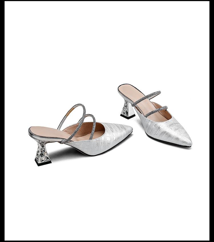 夏季新款,法式优雅尖头凉鞋水钻带一脚蹬粗跟包头半拖鞋女外穿PLGZ-D108-5