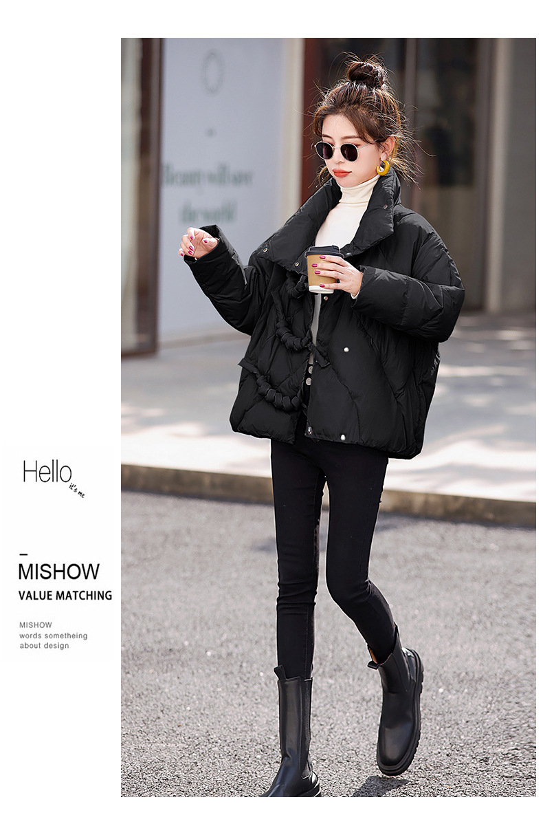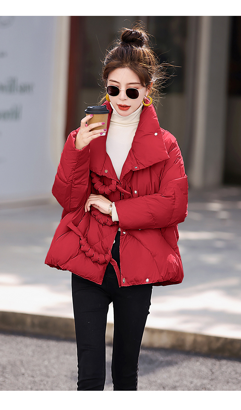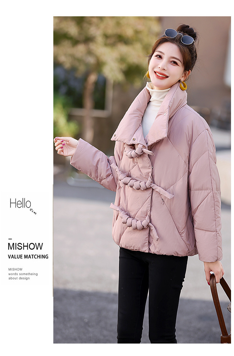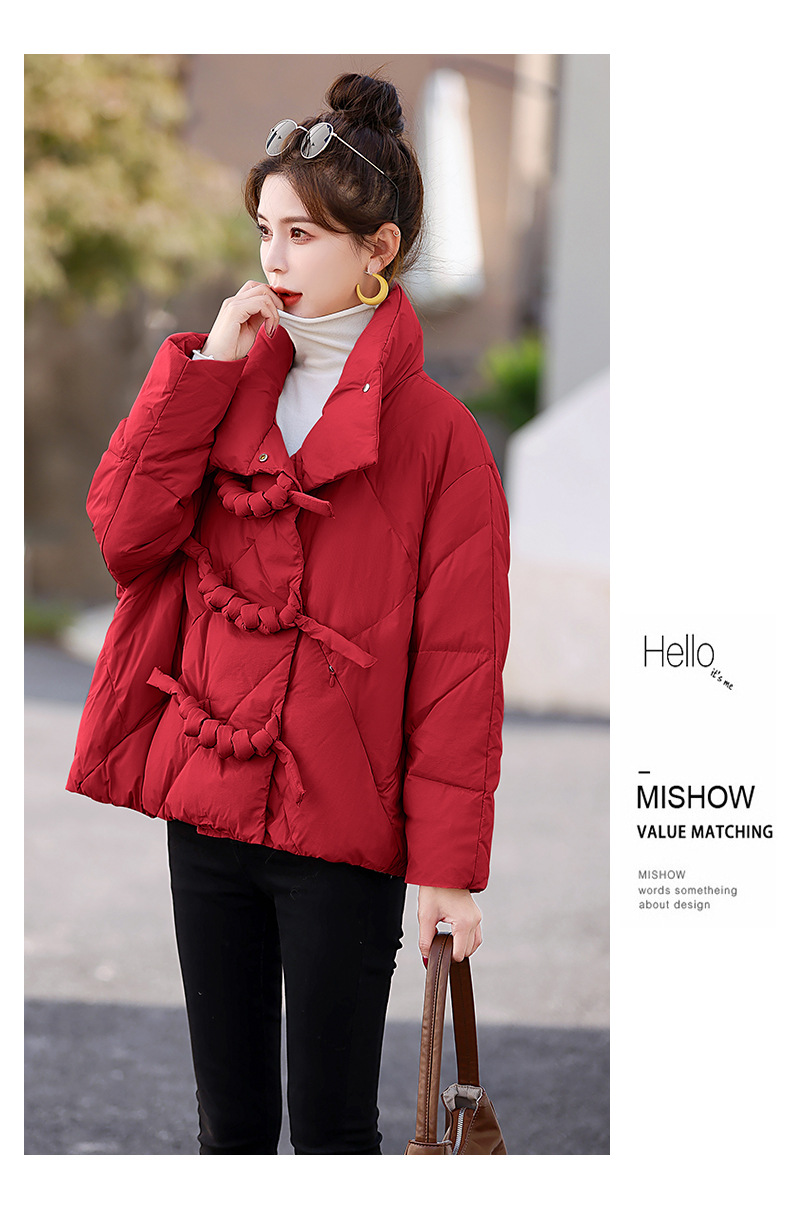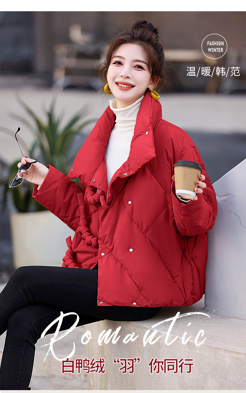 新款白鸭绒复古潮扭结盘扣短款羽绒服MJA358-1