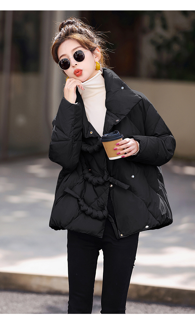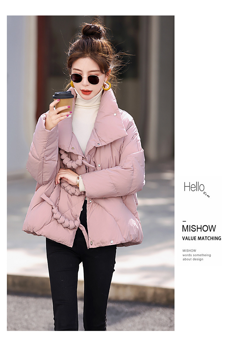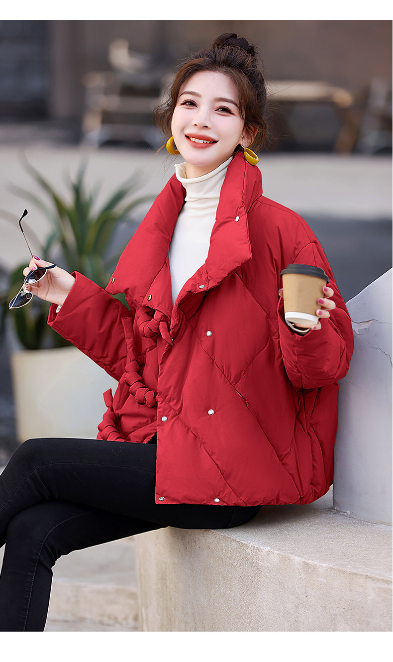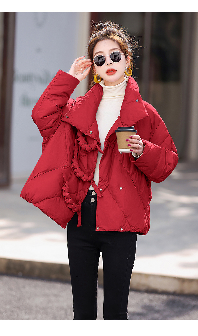 新款白鸭绒复古潮扭结盘扣短款羽绒服MJA358-1