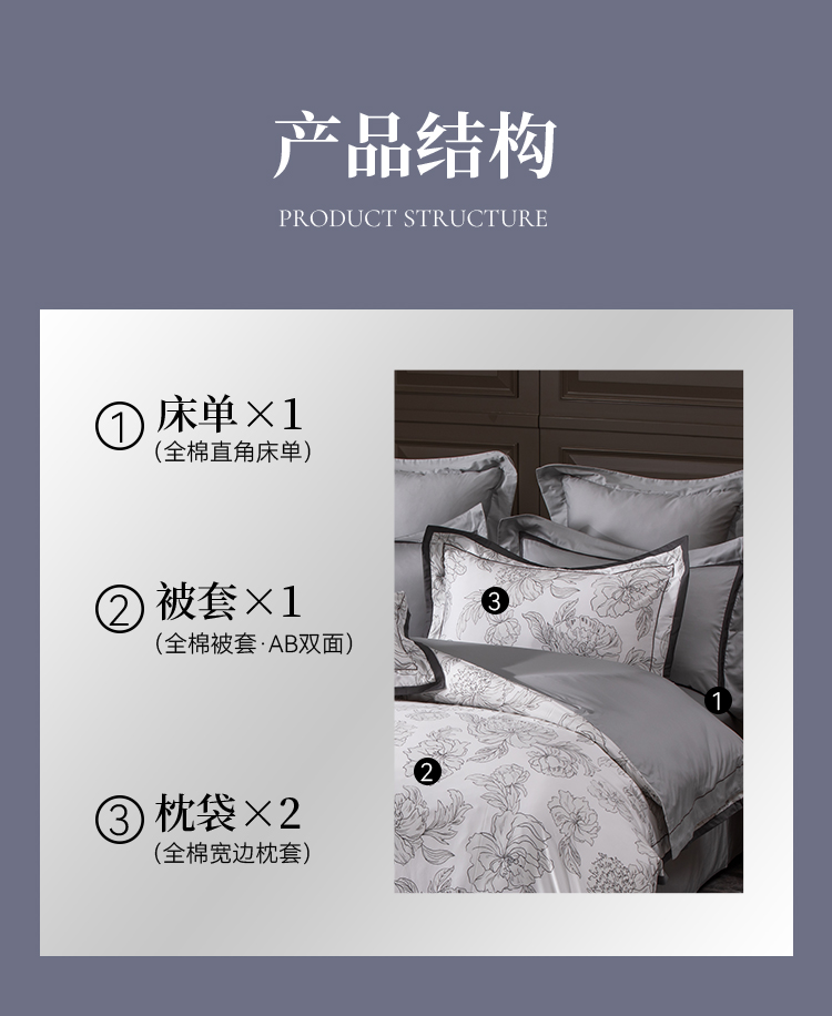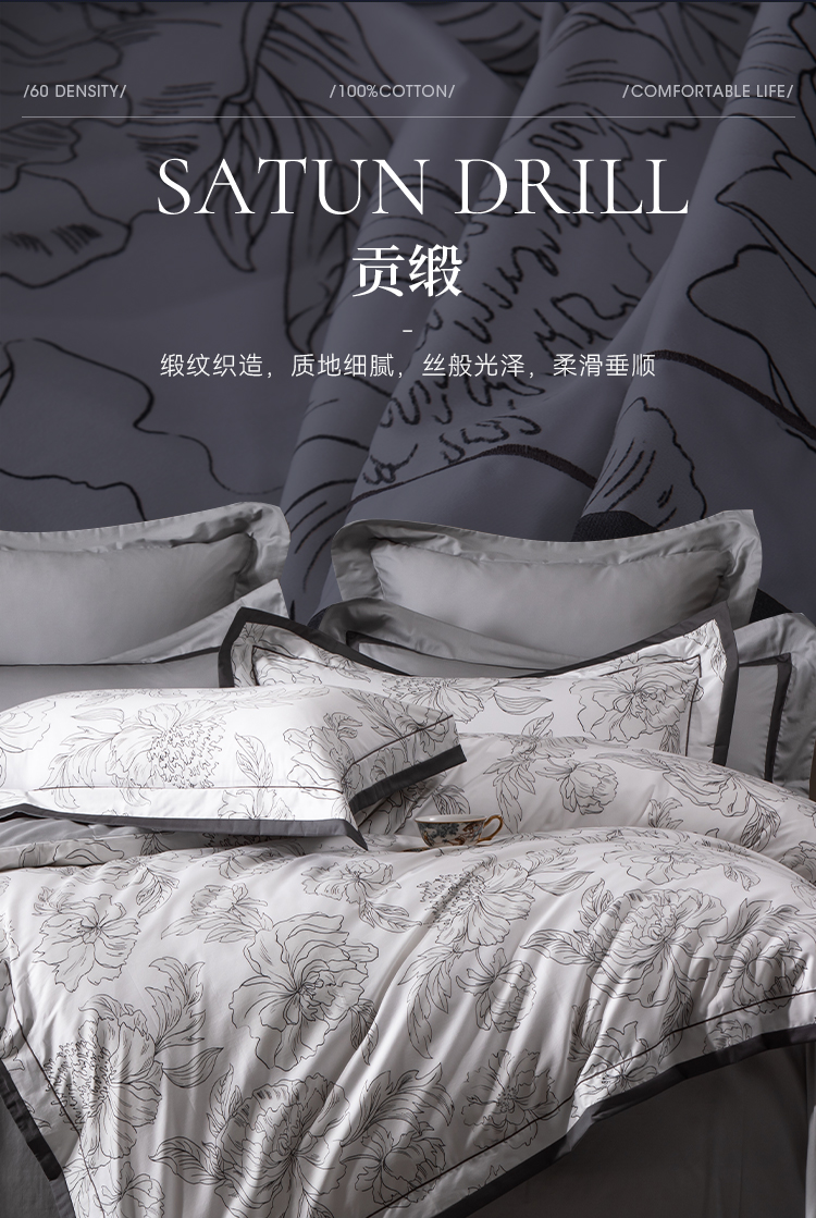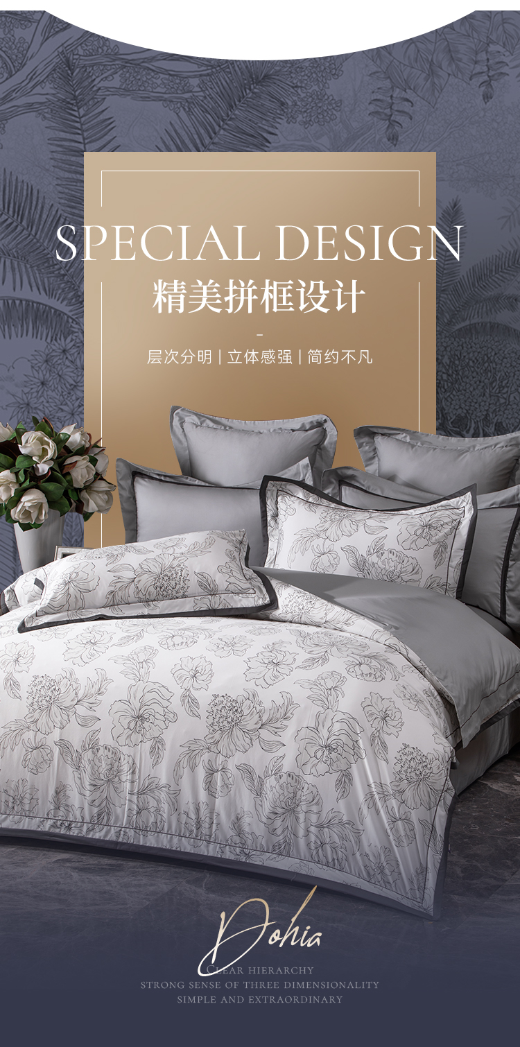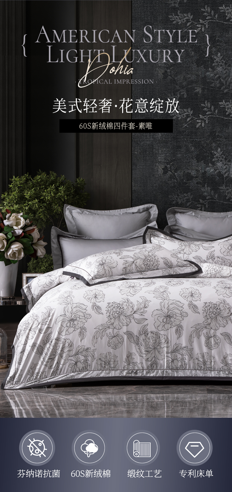 多喜爱 60S新绒棉四件套 素唯 轻奢 芬纳诺抗菌 缎纹工艺 专利床单 贡缎织造 精美拼框设计 光泽柔美顺滑 礼盒包装