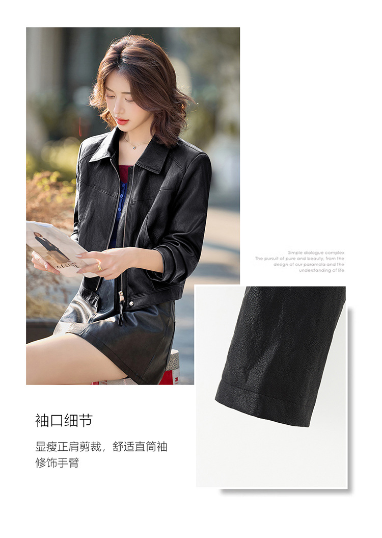 HR MEIQIN5711时尚美拉德翻领皮衣外套复古皮夹克显瘦上衣 商品图2