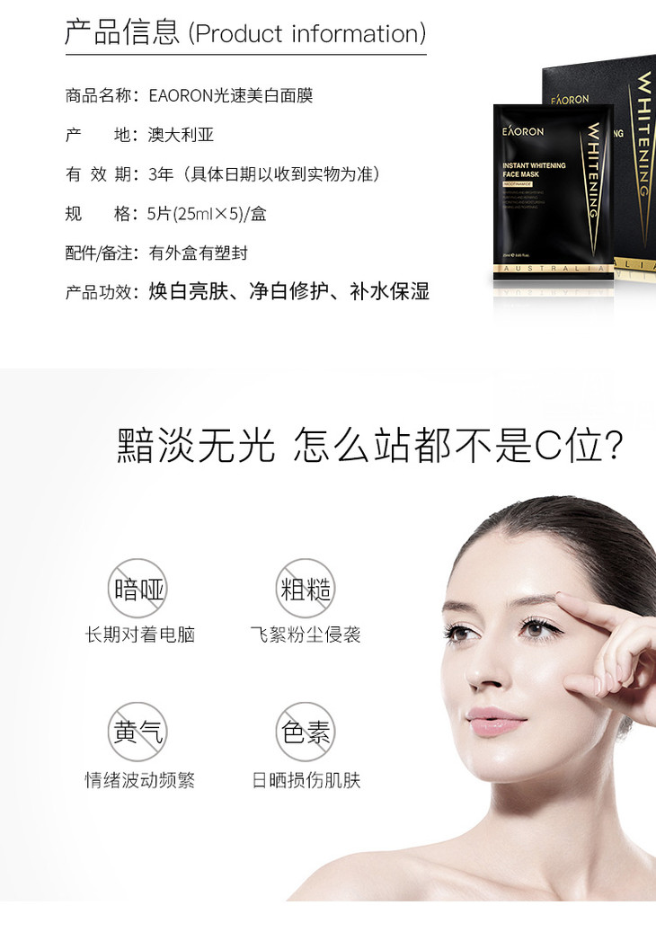 【海外直邮】EAORON 水光针面膜/线雕面膜 5片