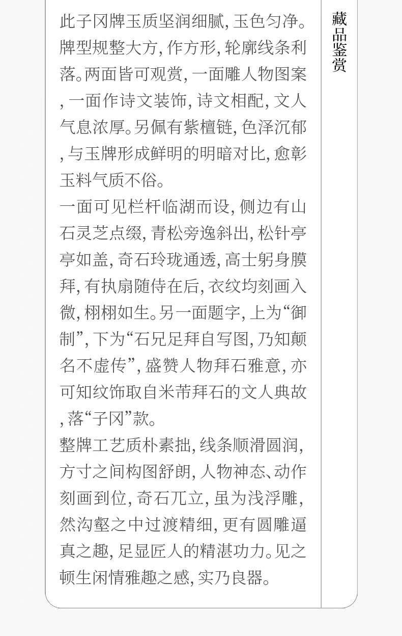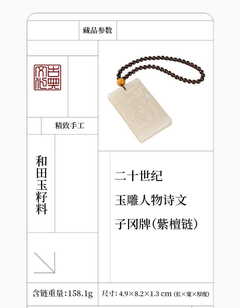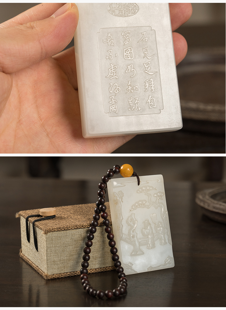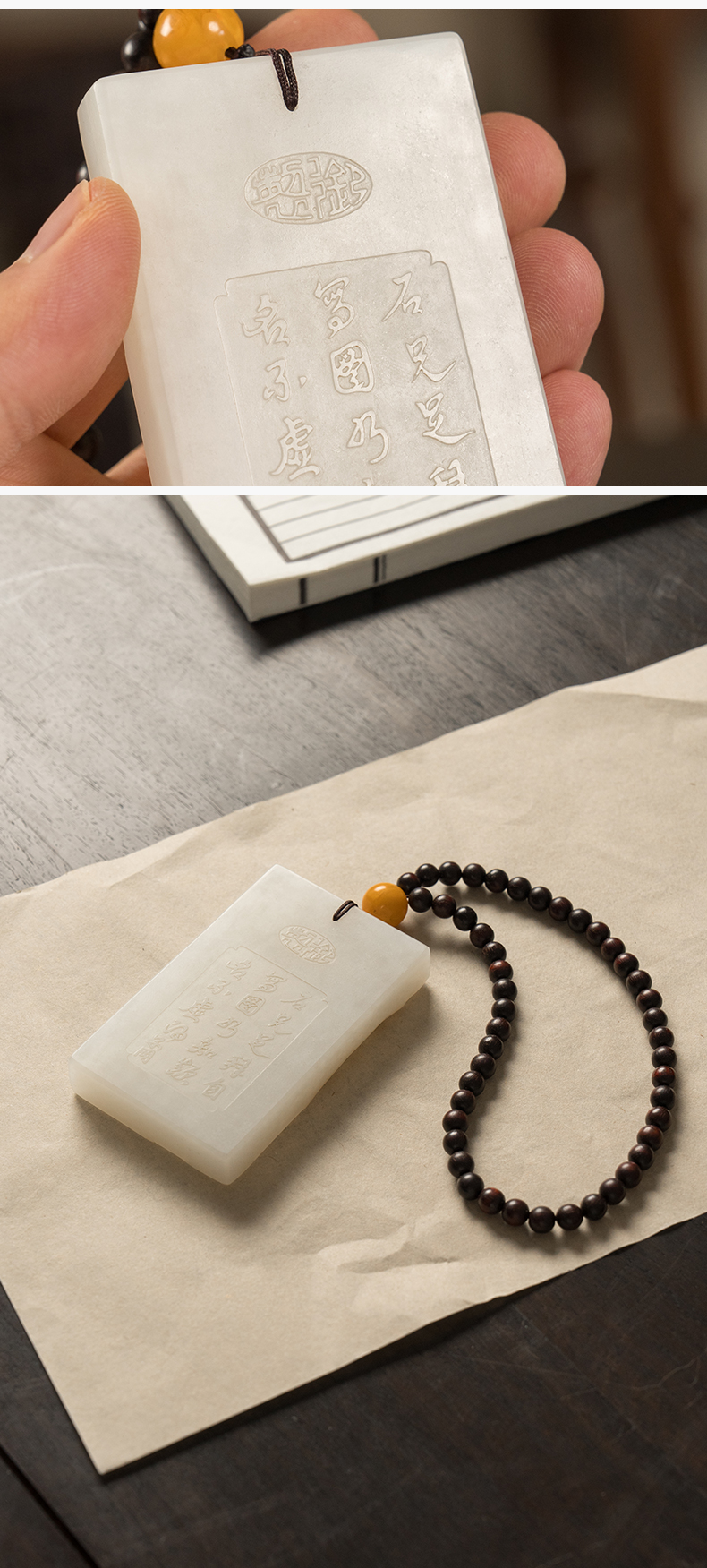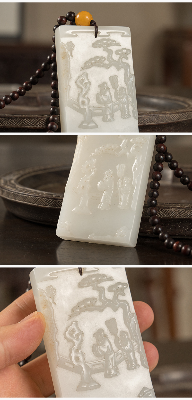 二十世纪玉雕人物诗文子冈牌(紫檀链)