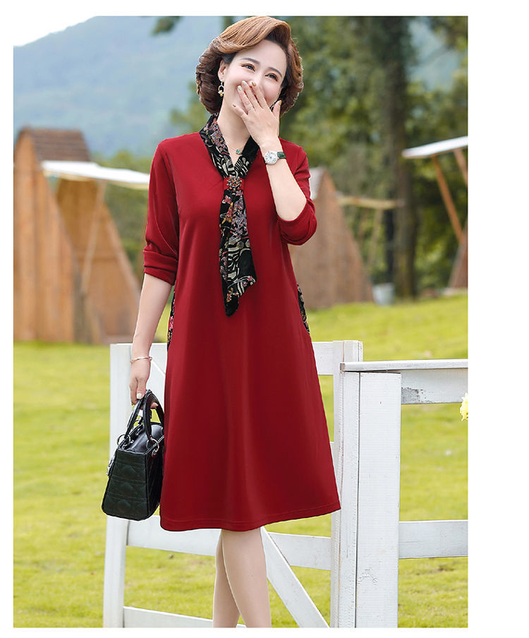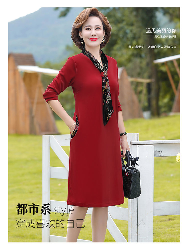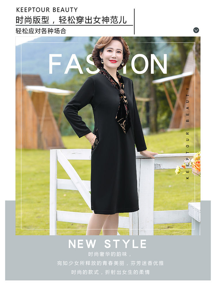 JXG-新款大码女装中年妈妈高贵优雅气质时尚减龄洋气连衣裙