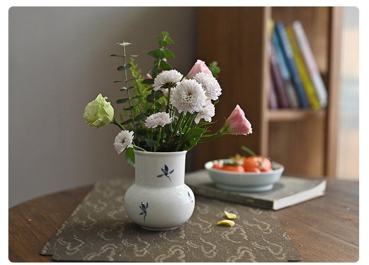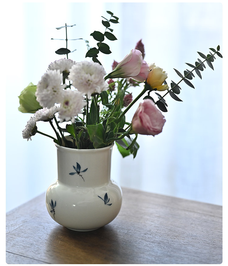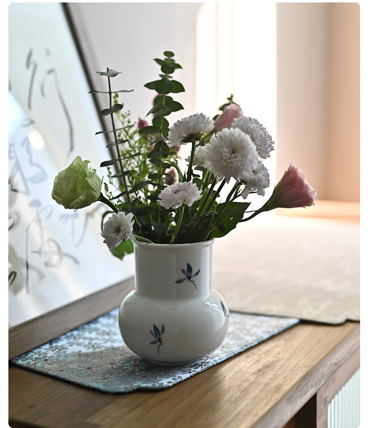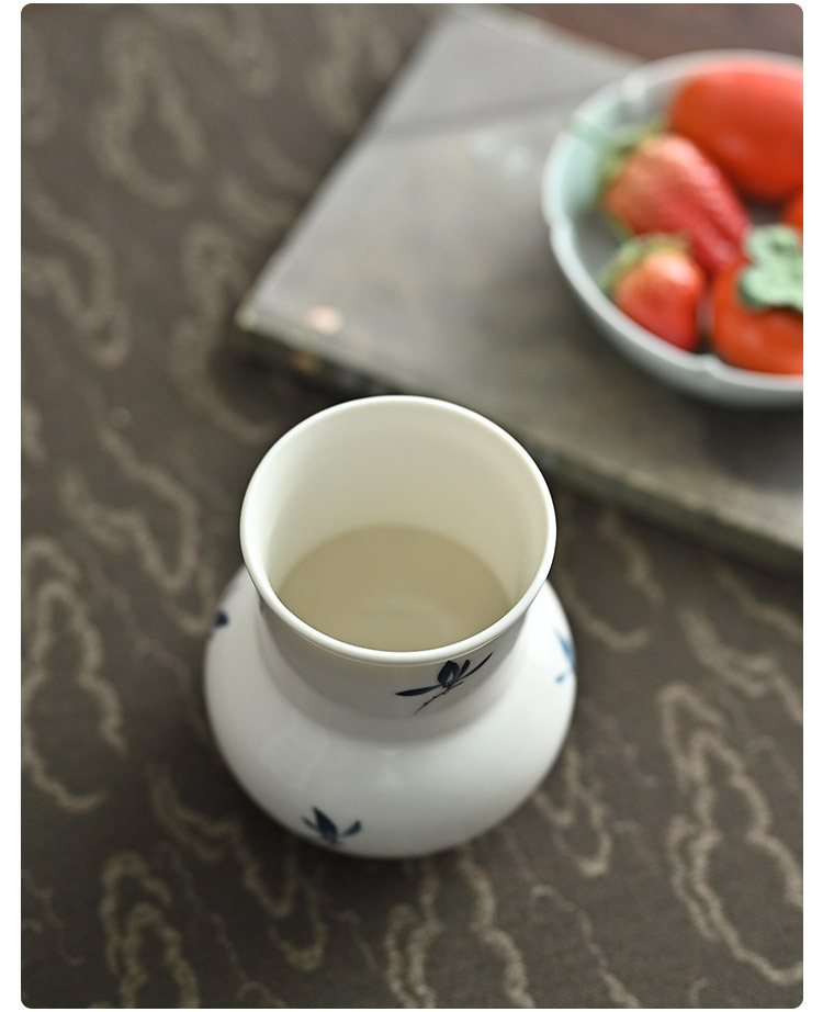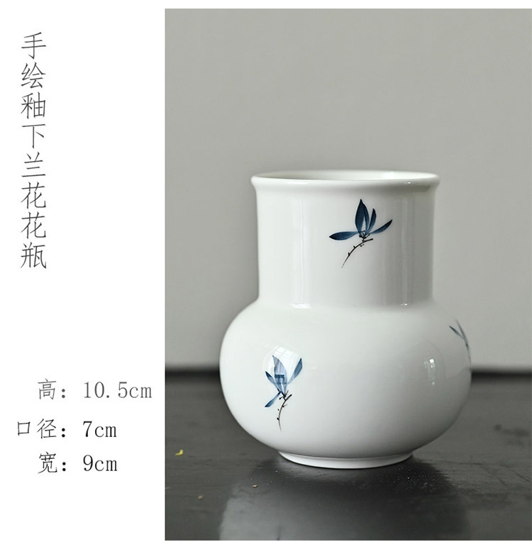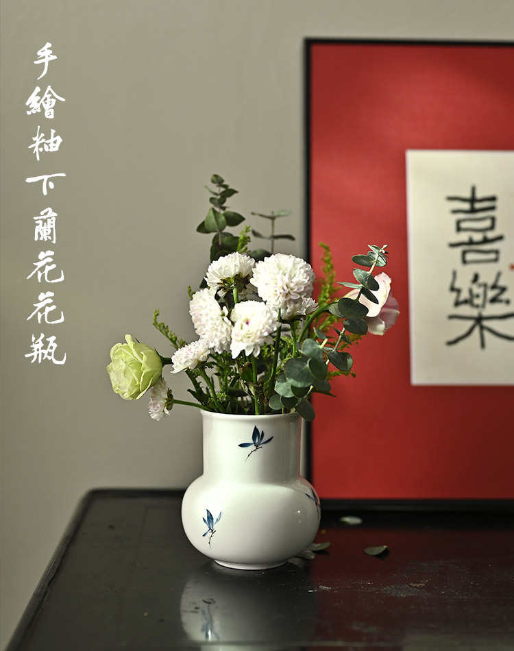 「景德镇釉下手绘蝴蝶兰花圆满小花瓶」桌面摆件 可插花可放毛笔 茶道六君子