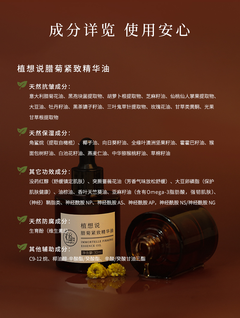 腊菊紧致精华油 | 30ml 抗皱保湿 淡纹滋润 植物纯素 植想说