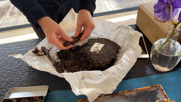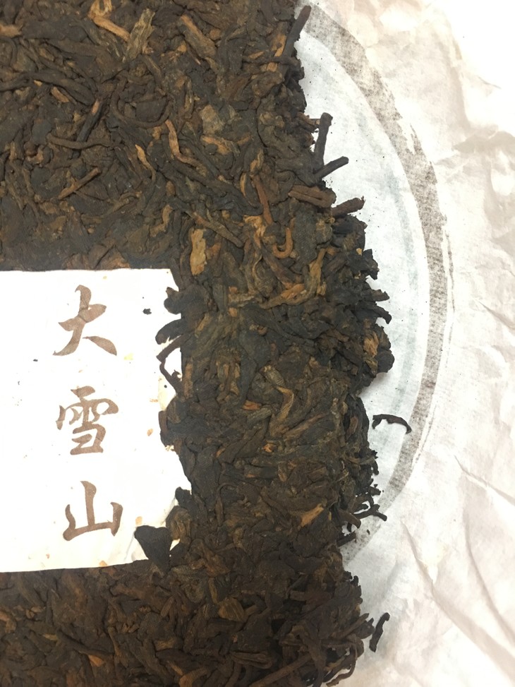 《大雪山》:普洱熟茶饼,规格:357克,2017年12月压制。已在西双版纳专业仓储2年。