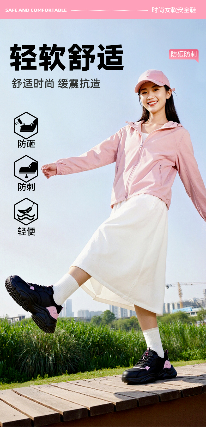 运动系列劳保鞋防砸防刺穿欧标钢包头凯夫拉橡塑底舒适轻便