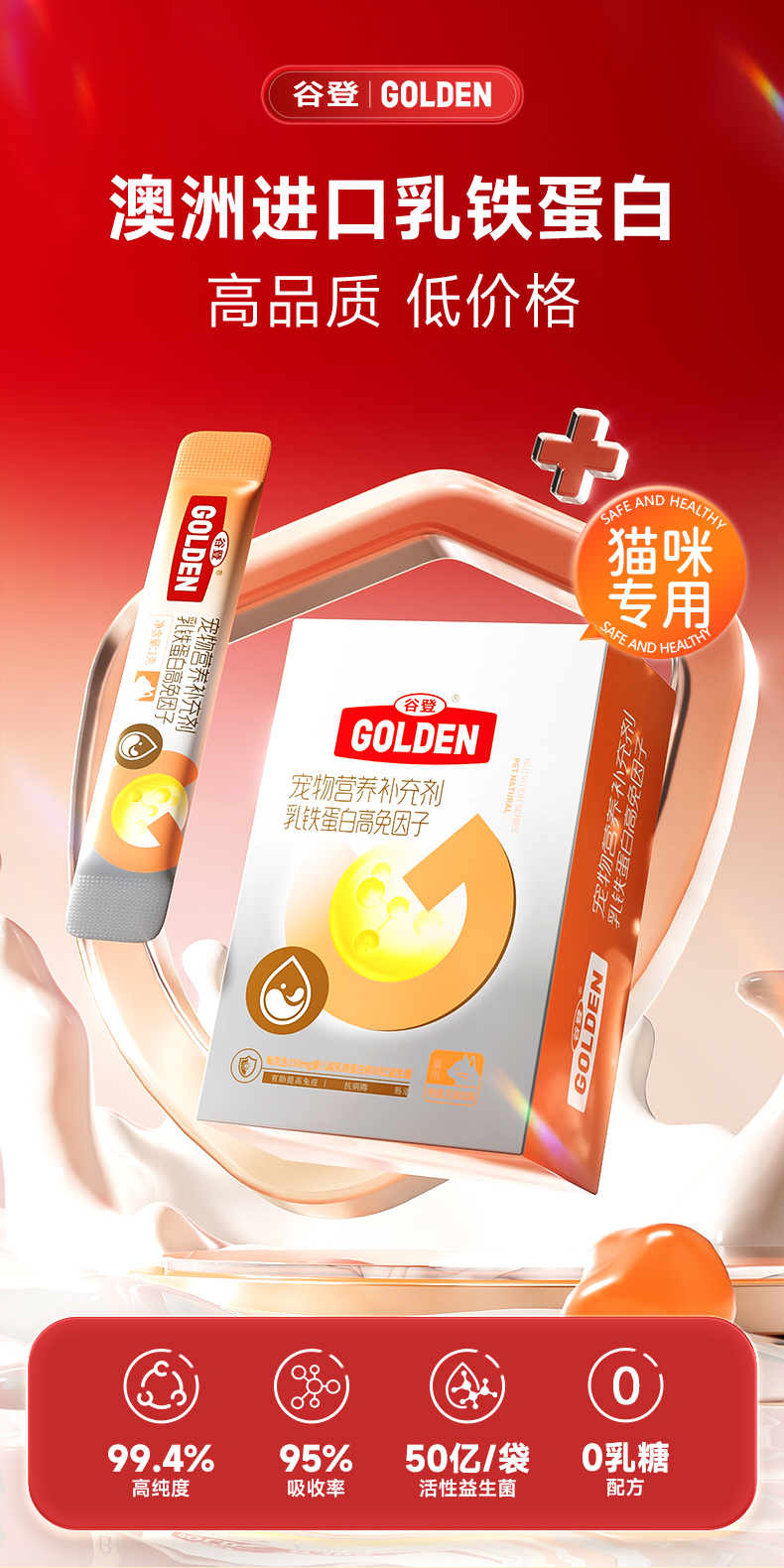 【套组优惠 额外送定制可爱宠物包 】谷登乳铁蛋白高免因子(猫用)1g*30袋*3盒