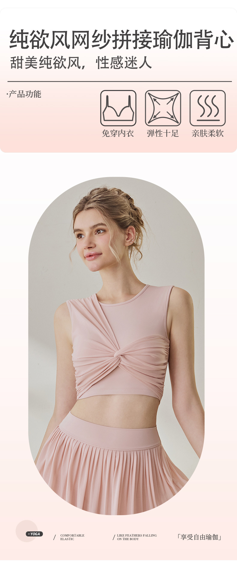 跃牌【健舞健美】系列网纱交叉健身服运动户外无袖背心上衣8777
